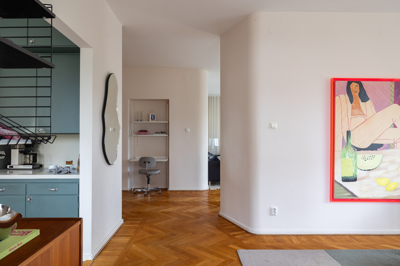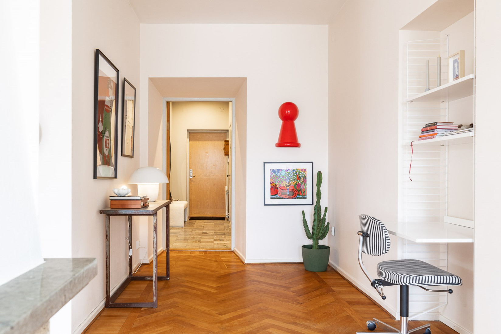 Lägg särskilt märke till det vackra fiskbensgolvet och det eftertraktade gavelläget som ger ett generöst ljusinsläpp från två håll.