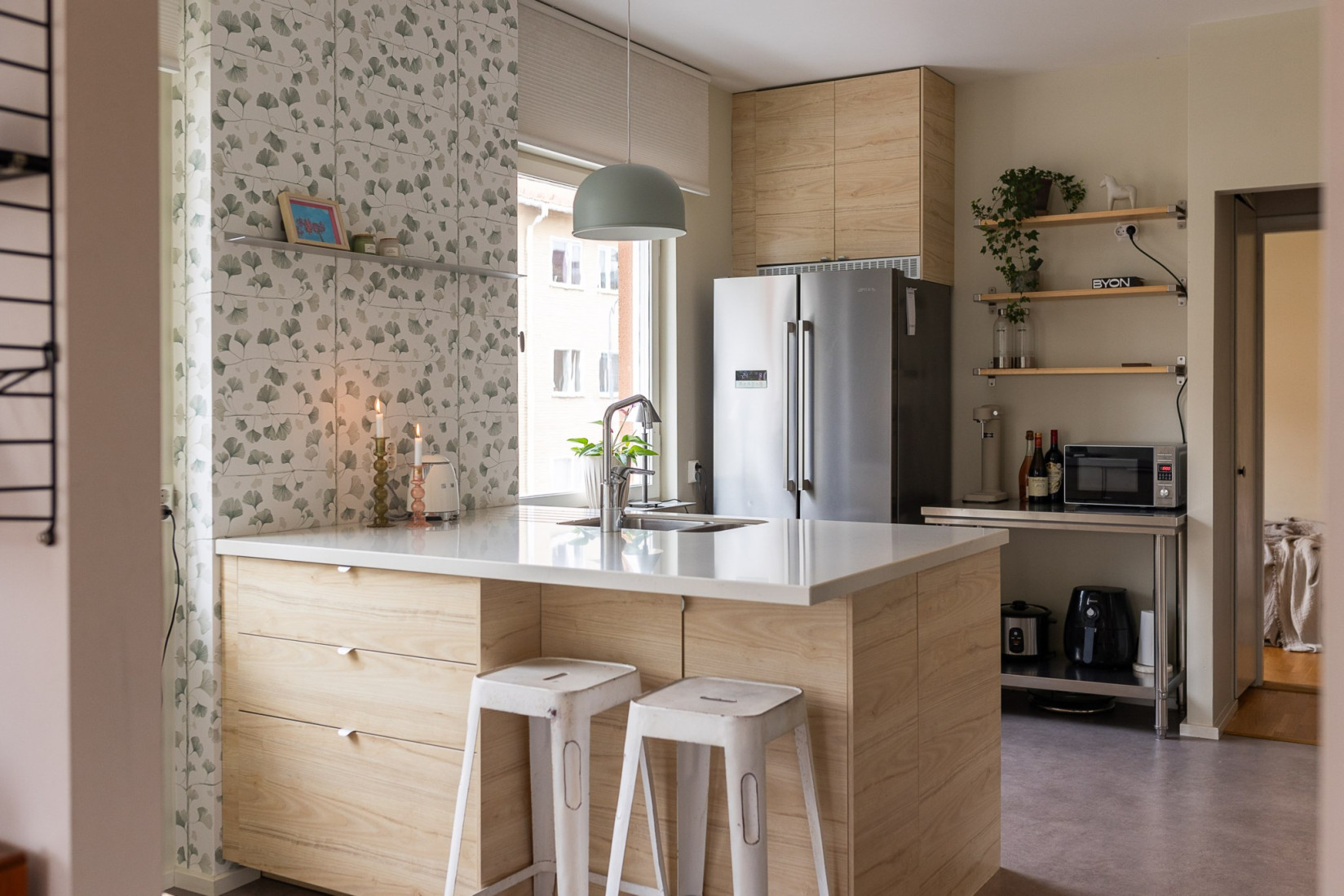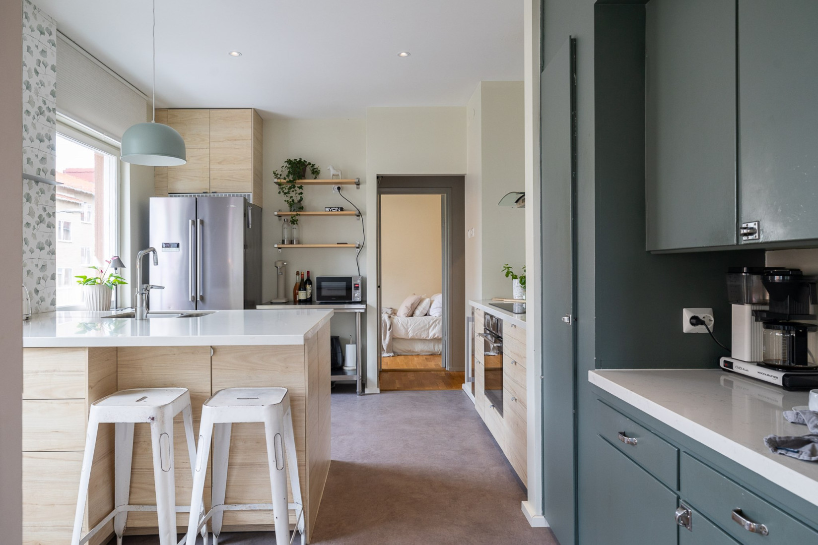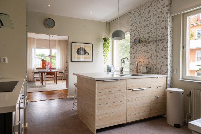 Köket är hjärtat i hemmet och här finns allt du kan önska. Gott om arbetsytor och generös förvaring gör matlagningen enkel och smidig, samtidigt som den charmiga mixen av gammalt och nytt skapar en varm och personlig känsla. Den stora köksön blir en naturlig samlingspunkt där familj och vänner gärna samlas. Stora fönster släpper in ett härligt ljus och ger en fin rymd.