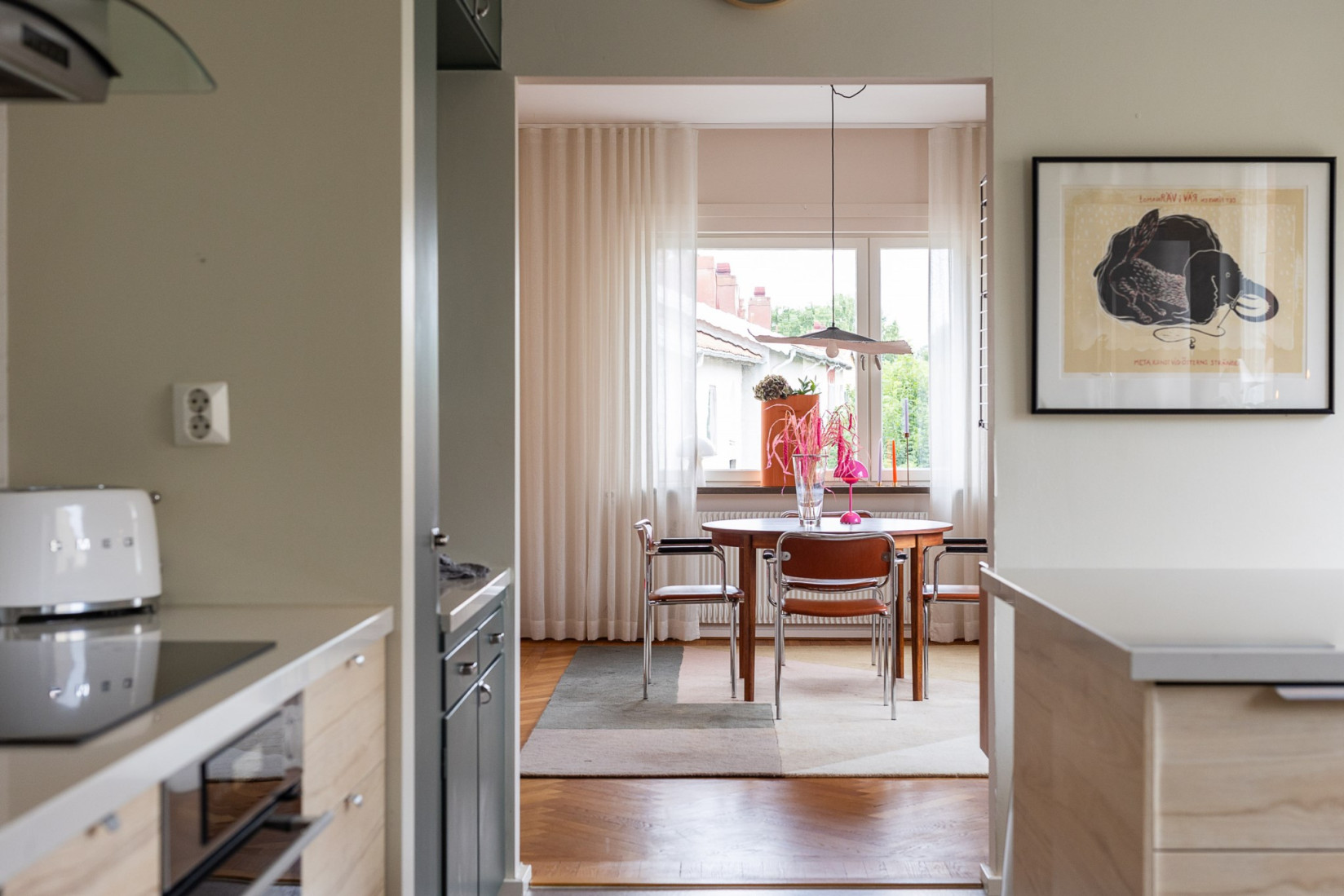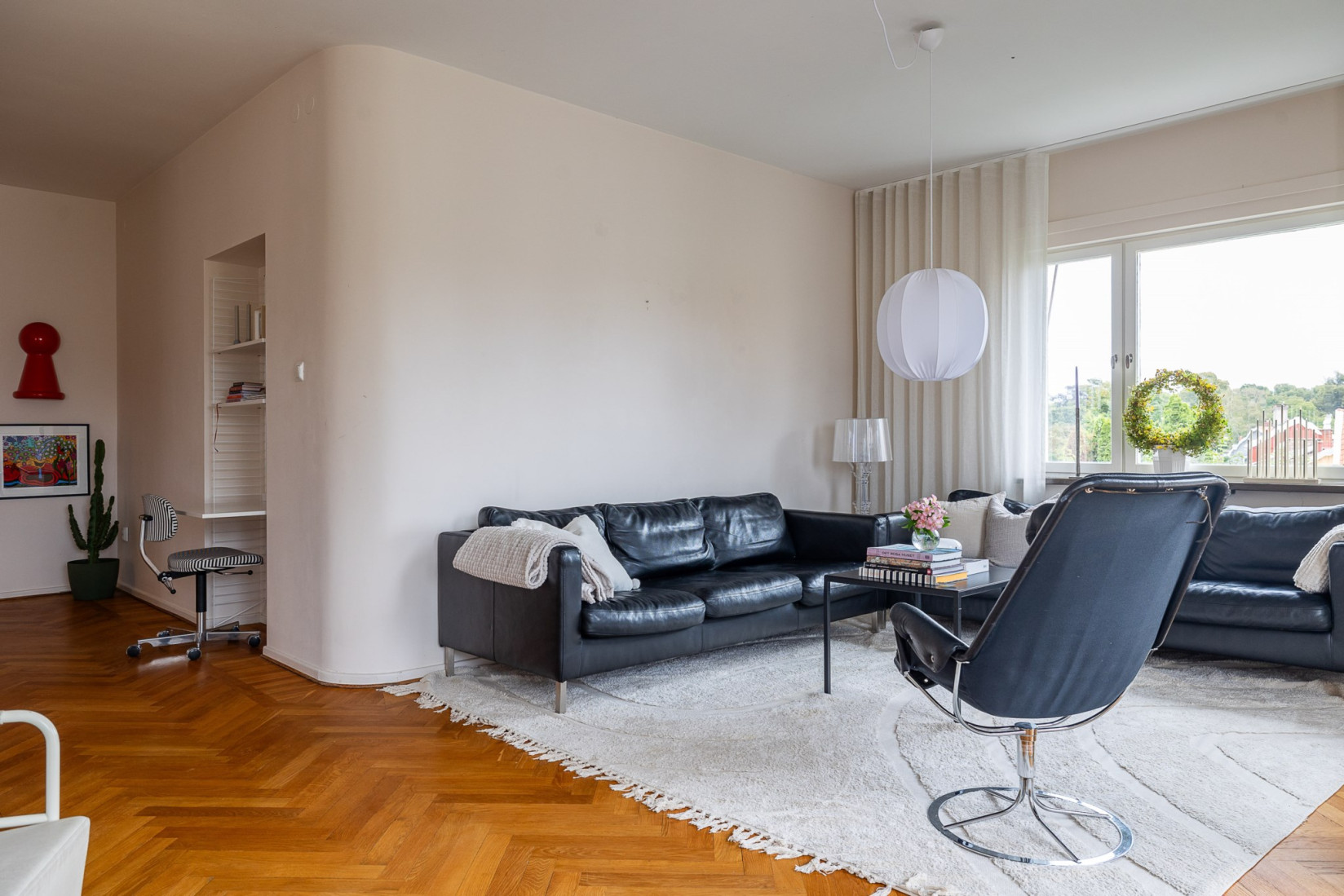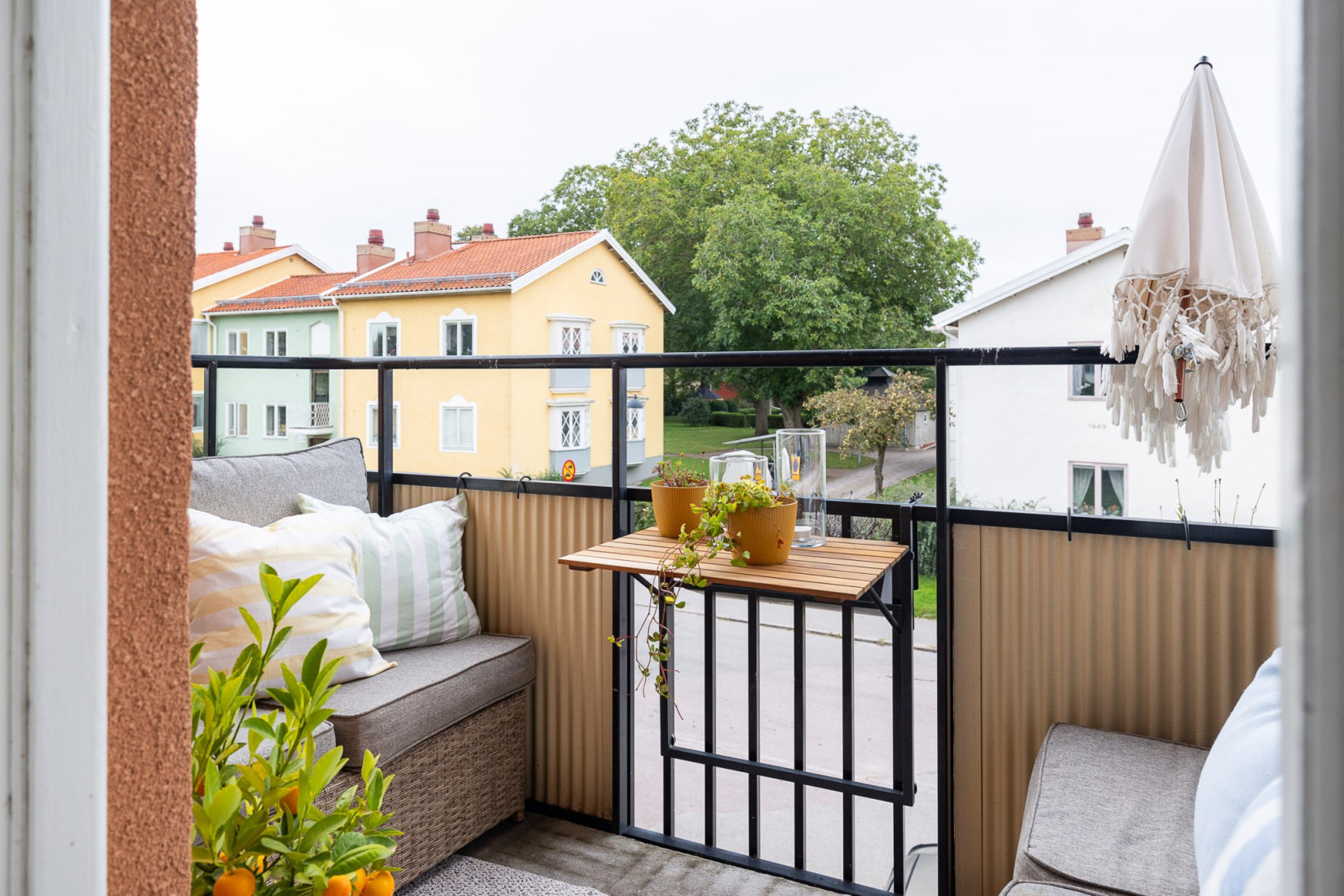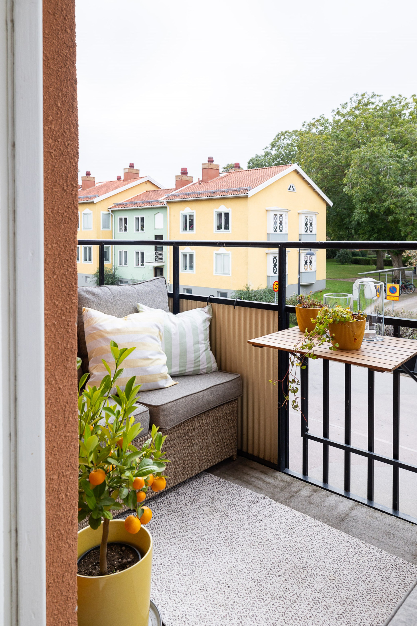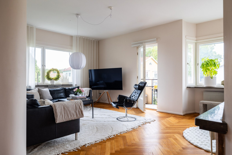 Från vardagsrummet nås balkongen som nuvarande ägare använt flitigt. Här kan du sitta och blicka ut över kvarteret och de som passerar nedanför, ett rofyllt och charmigt läge.