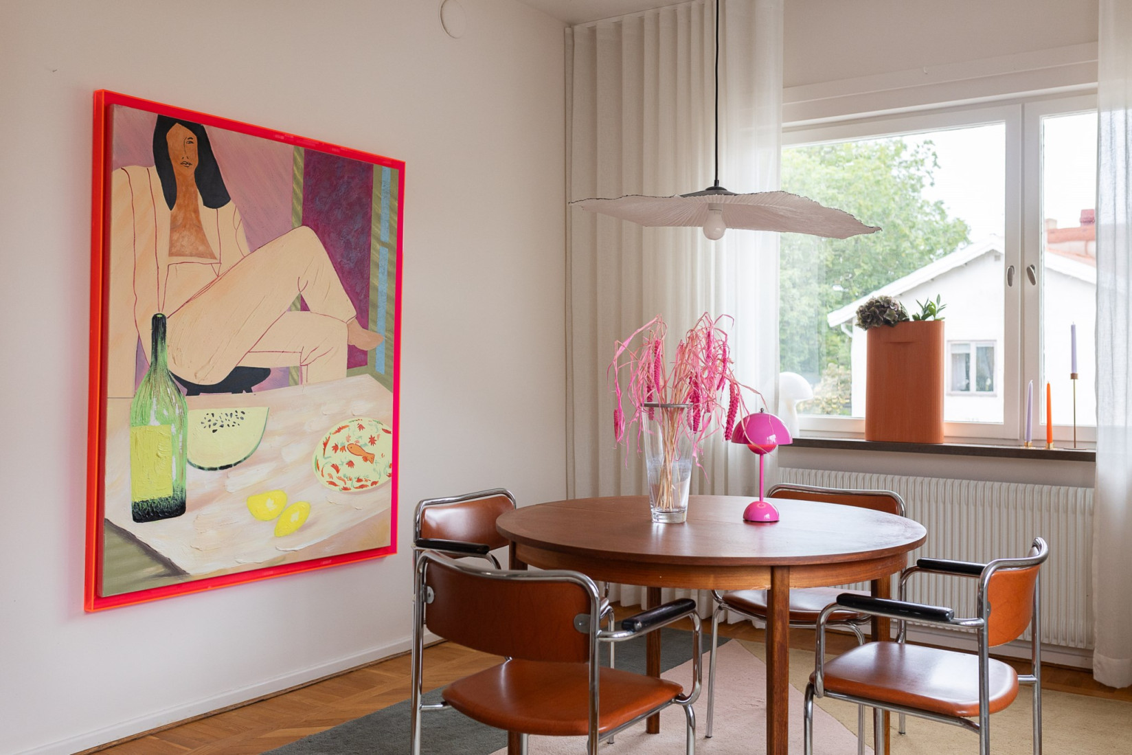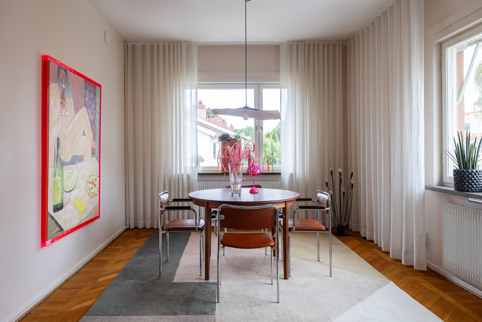 I direkt anslutning till köket finns ett magiskt matrum som passar perfekt för middagar och umgänge. Rummet kan givetvis användas precis som ni vill, här finns plats för det stora matbordet, men också för fler möbler utan att det känns trångt.