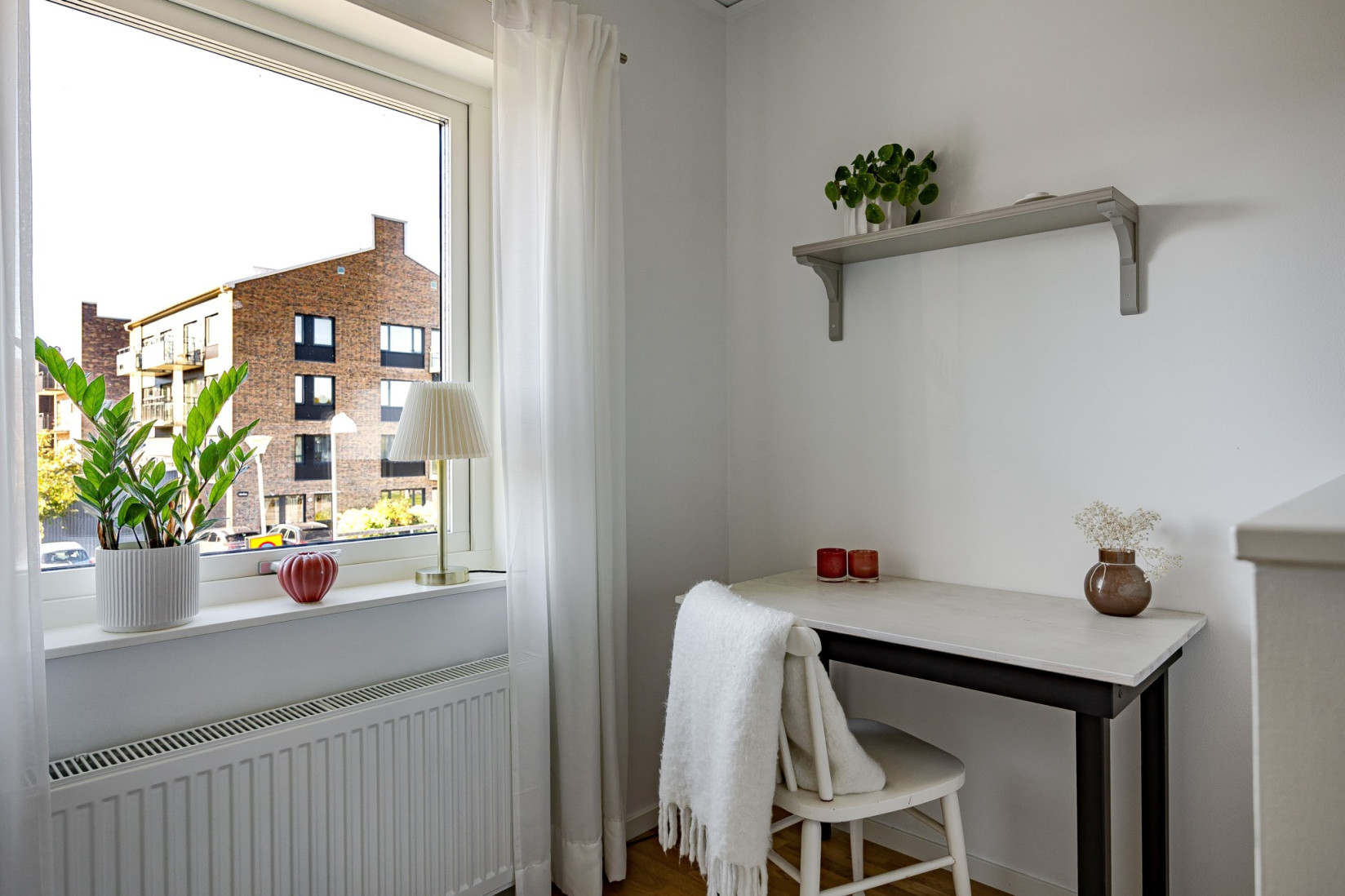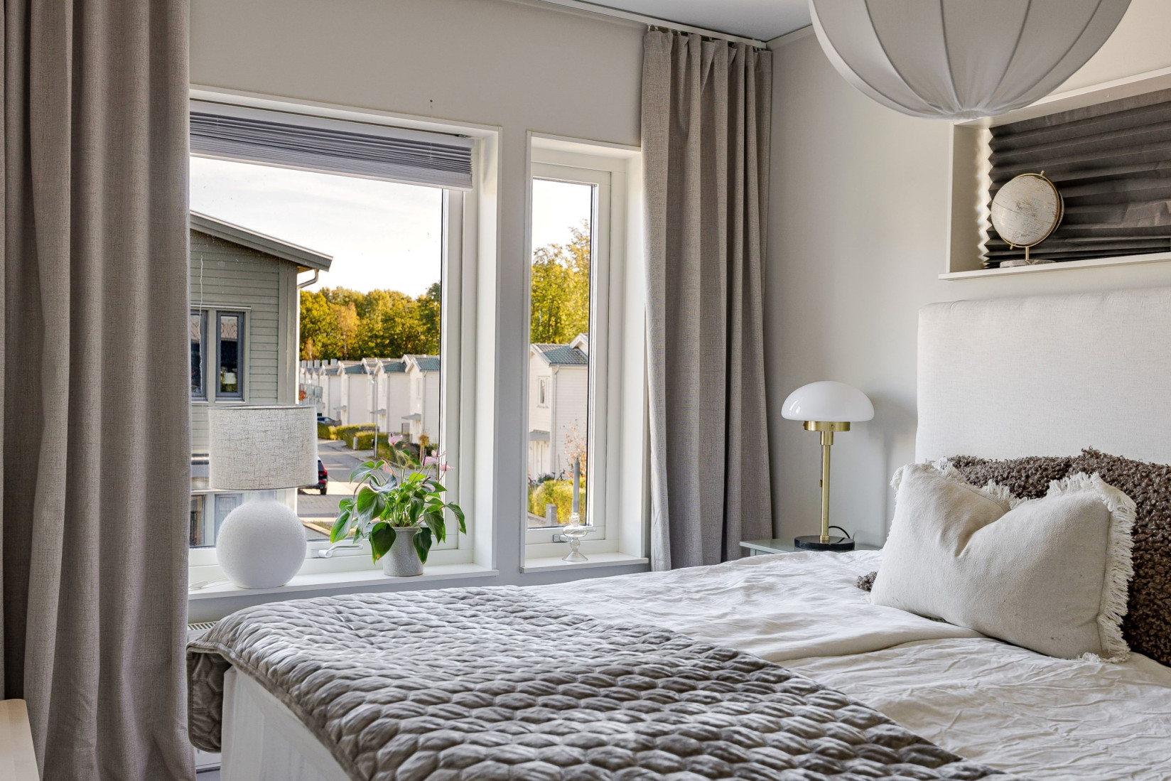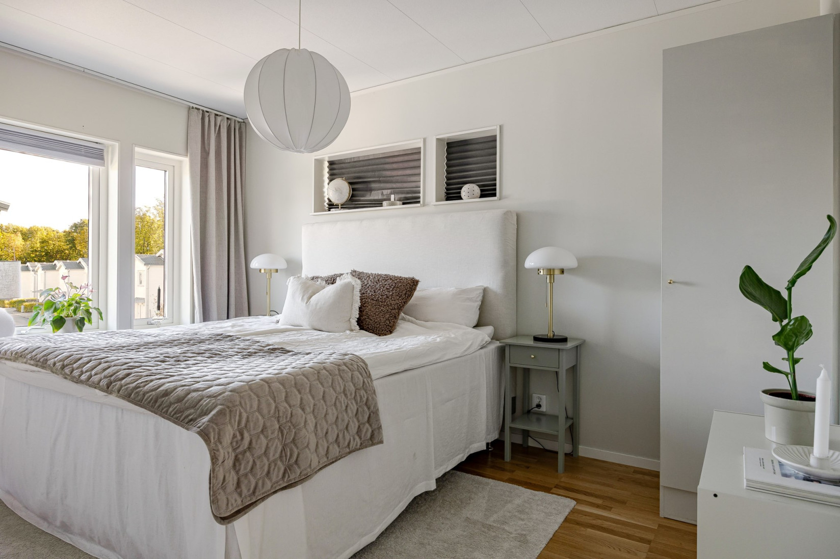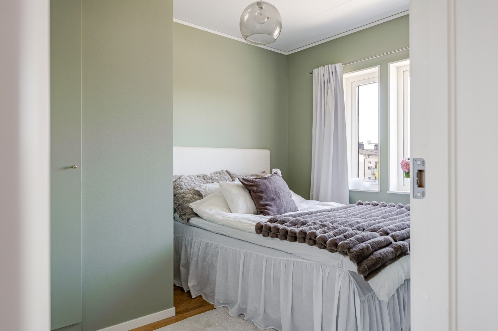 Det större sovrummet vetter mot baksidan och har plats för en dubbelsäng med tillhörande nattduksbord samt gott om förvaring i en garderob. Ett av de andra sovrummen har en fransk balkong och passar fint som barn-, tonårs- eller gästrum. Det tredje sovrummet erbjuder också bra yta och praktisk förvaring.