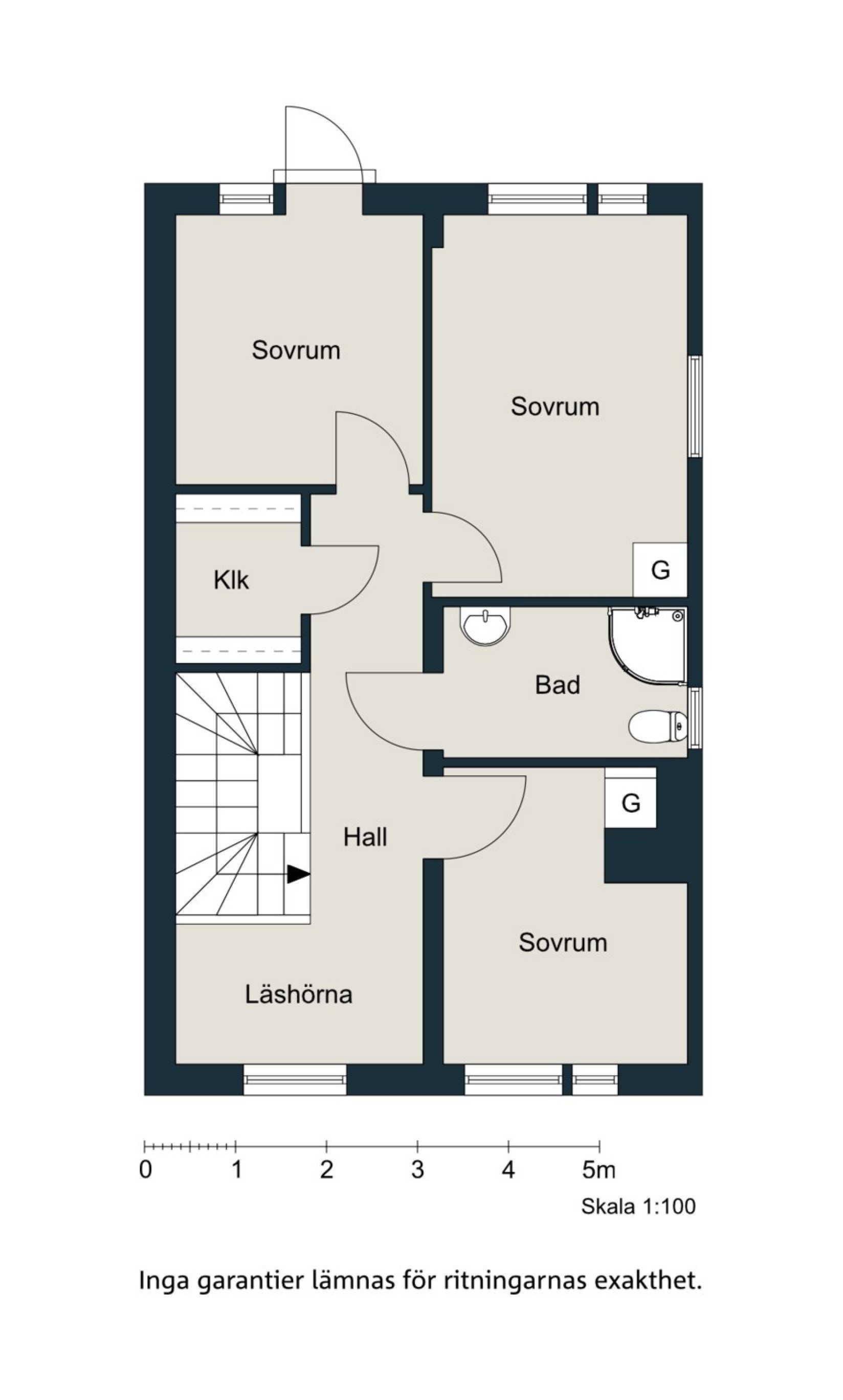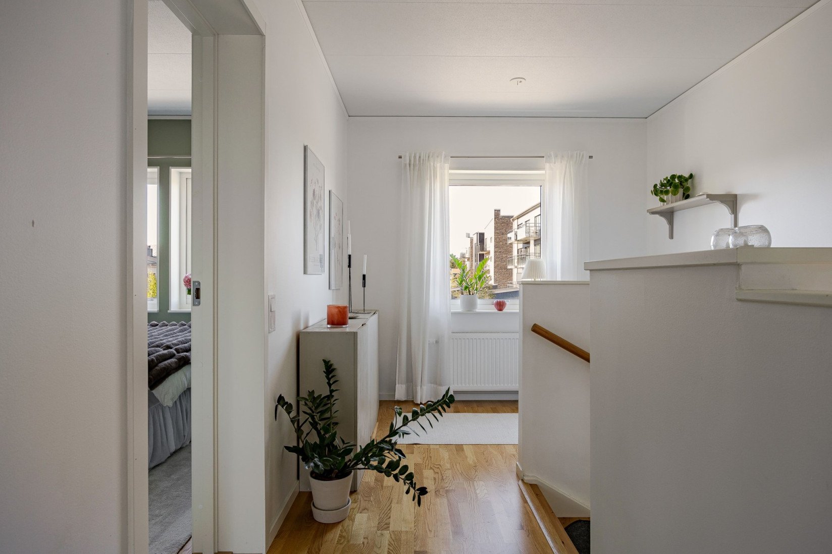 På övervåningen möts du av en ljus läs- eller kontorshörna. Här finns även tre rymliga sovrum, en klädkammare och ett modernt badrum.