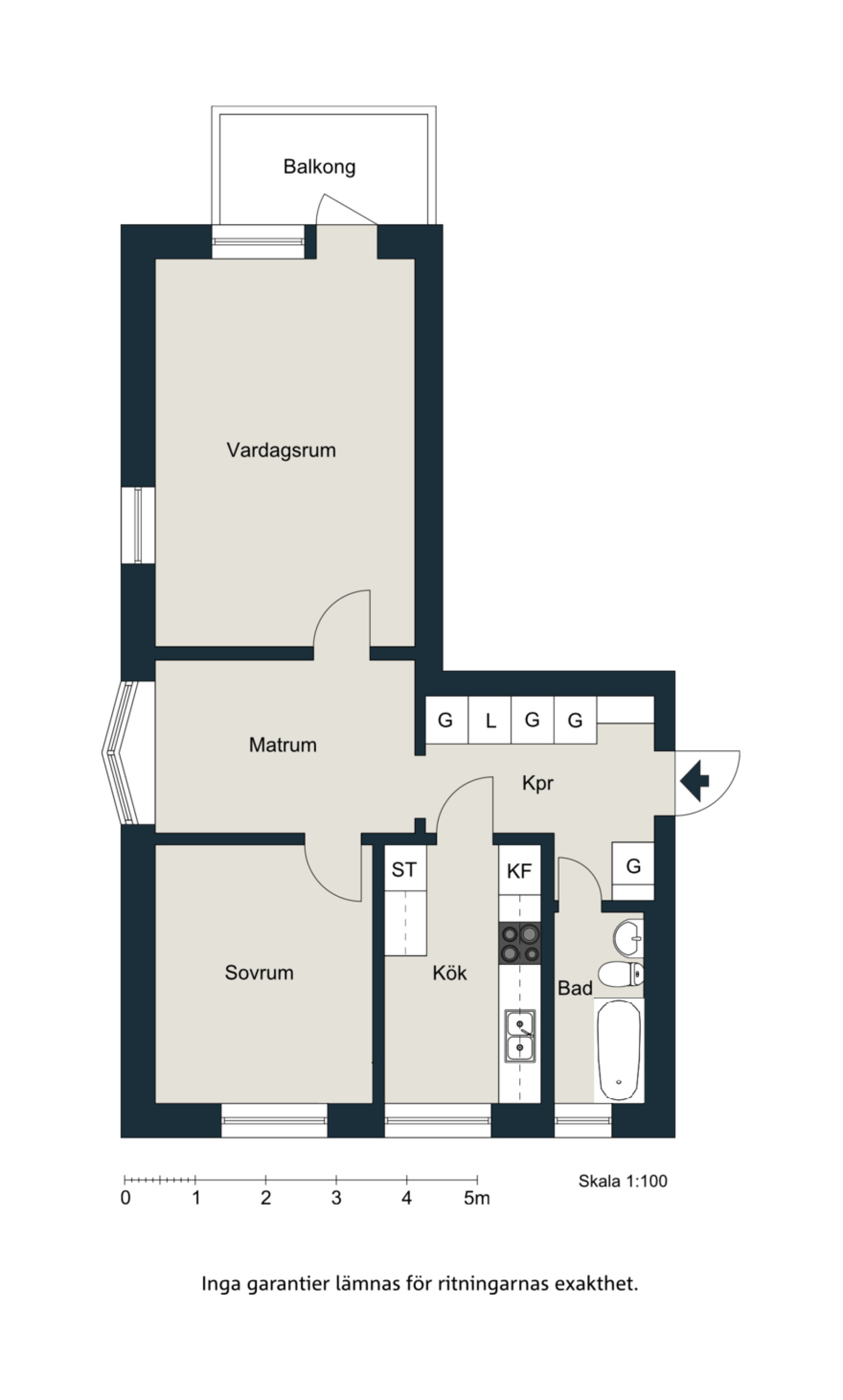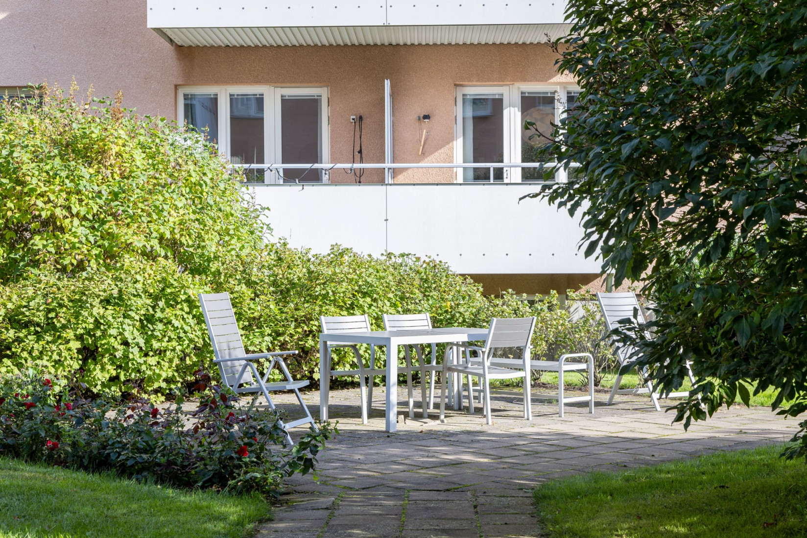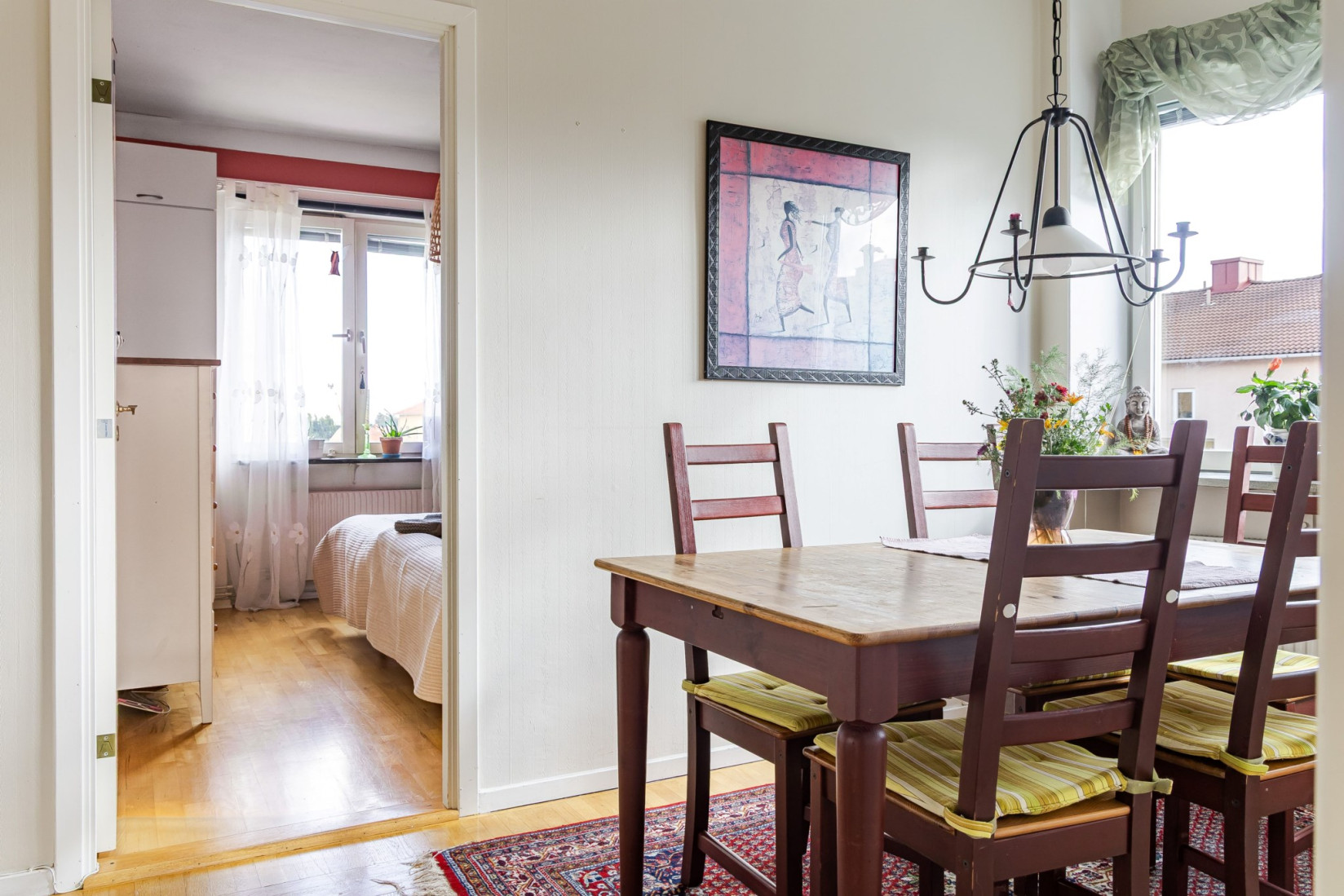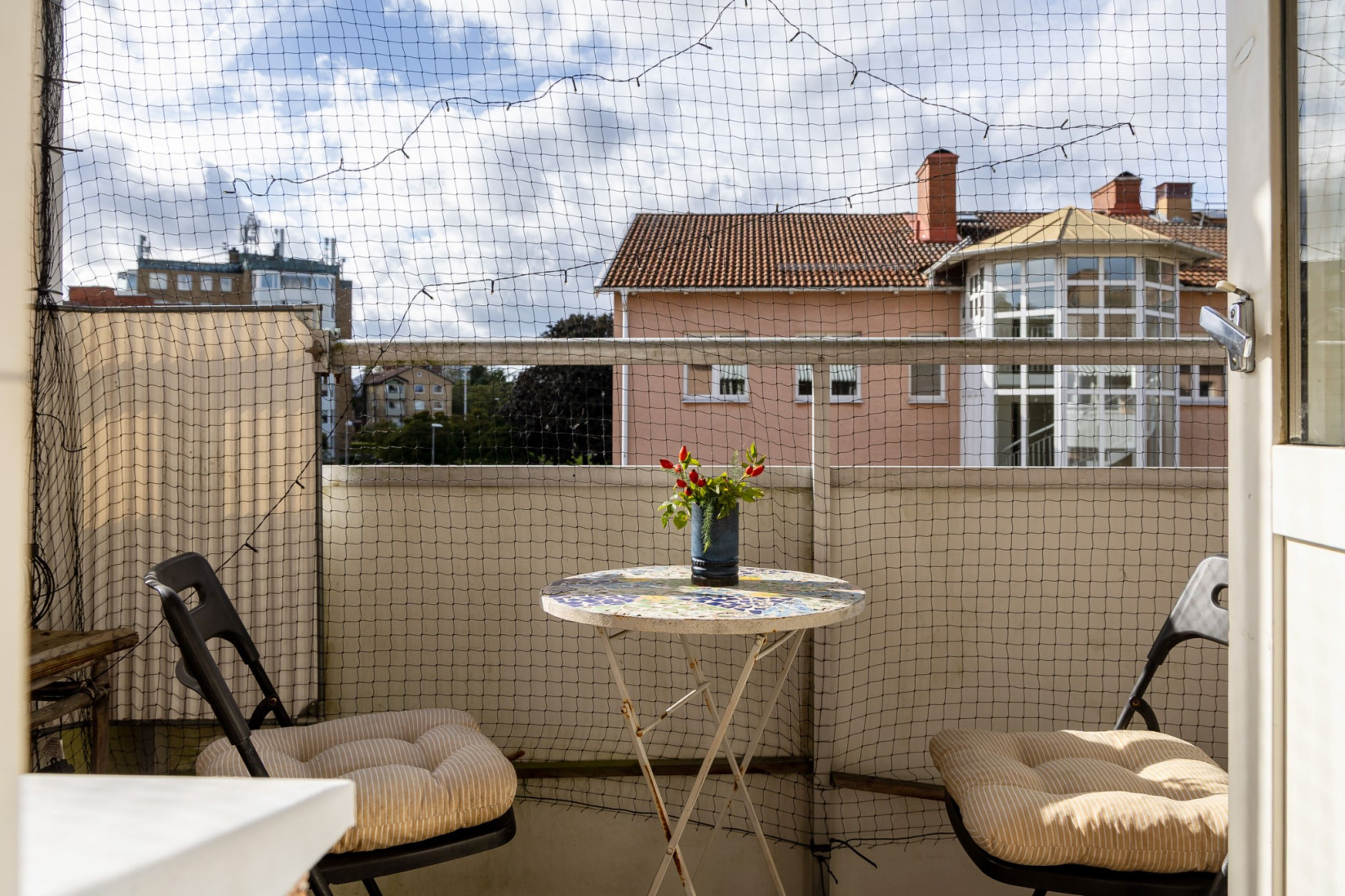 Till höger från mellanrummet ligger ett vardagsrummet med fönster åt två hål vilket ger ett härligt ljus. Vidare från vardagsrummet kommer man ut till en balkong i väster med eftermiddags- och kvällssol.