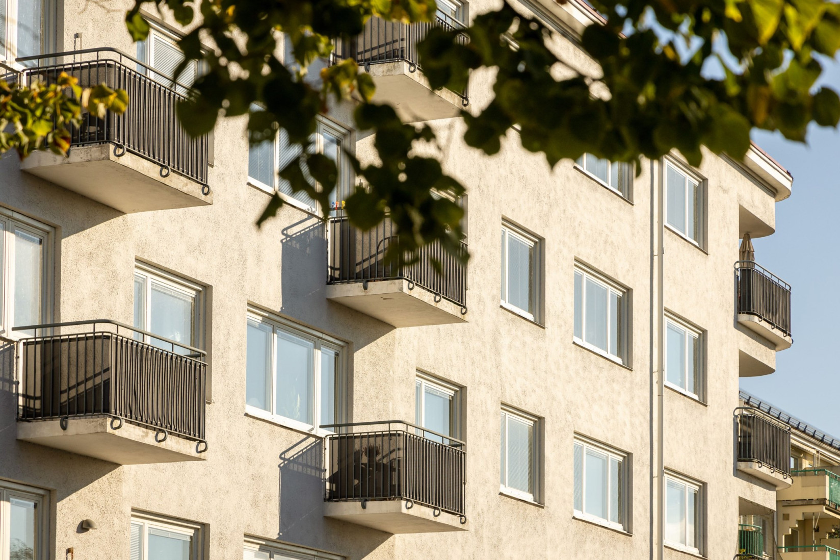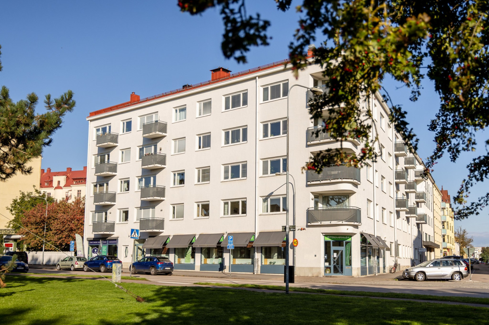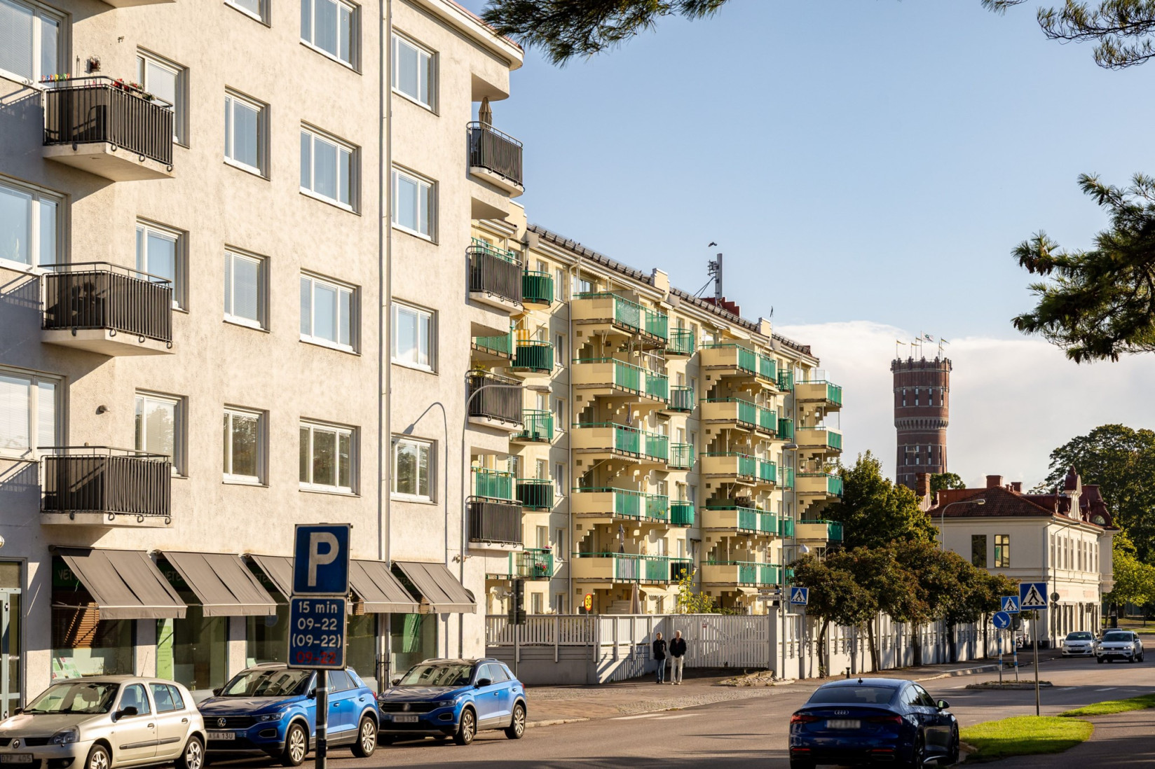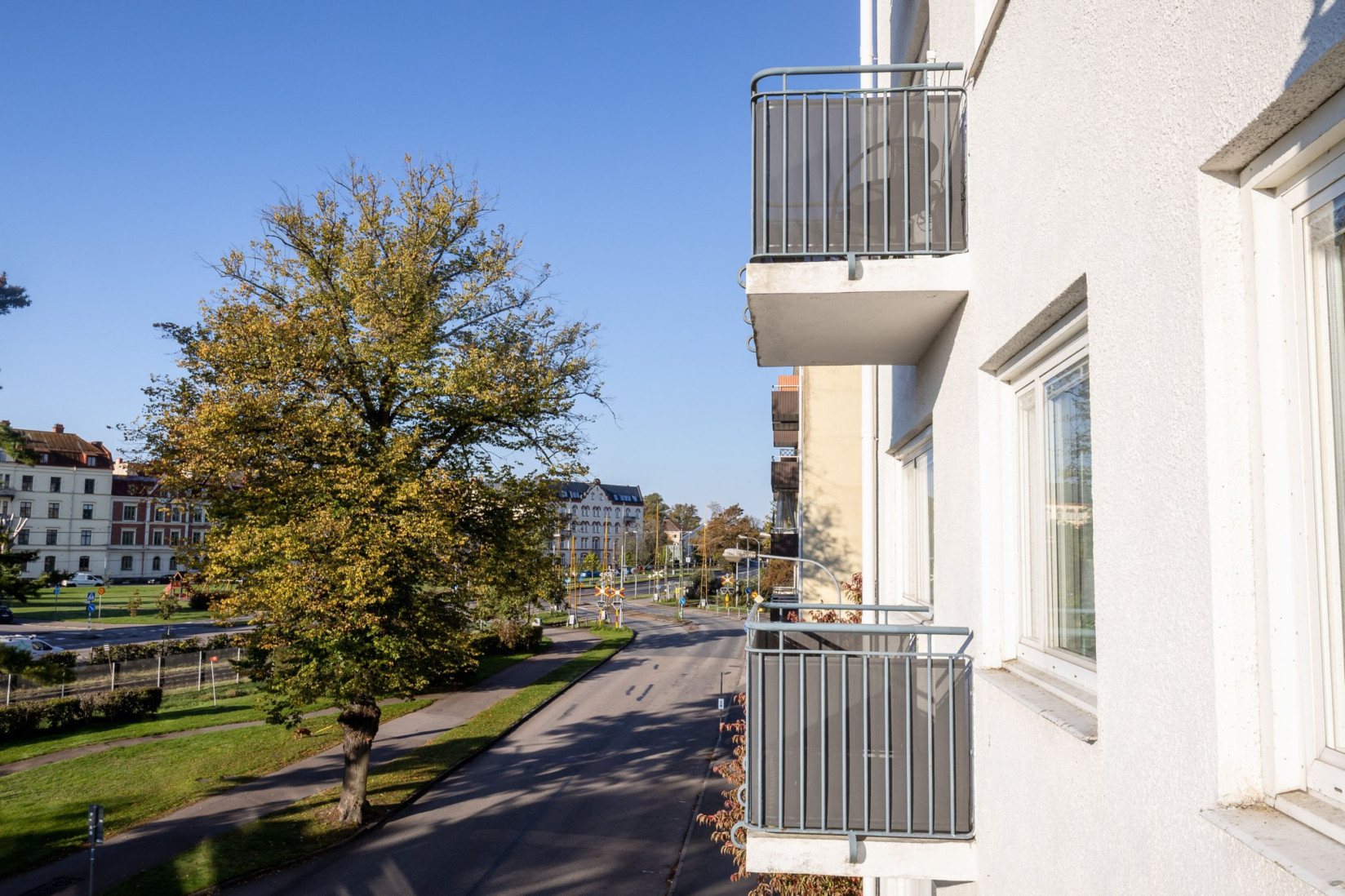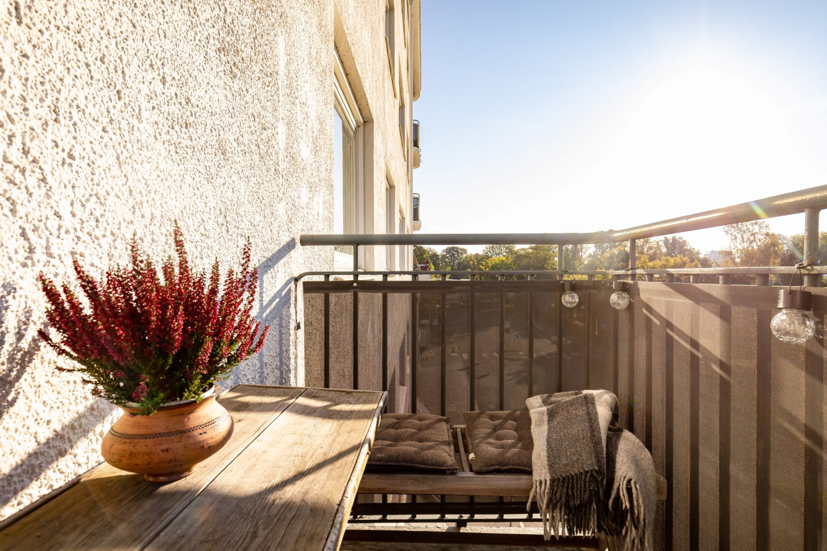 I vardagsrummet ligger vacker fiskbensparkett och väggarna är även här vita. Det stora fönsterpartiet ger rikligt med ljusinsläpp och en fantastisk utsikt. Från vardagsrummet nås balkongen i söderläge som bjuder på många soltimmar.