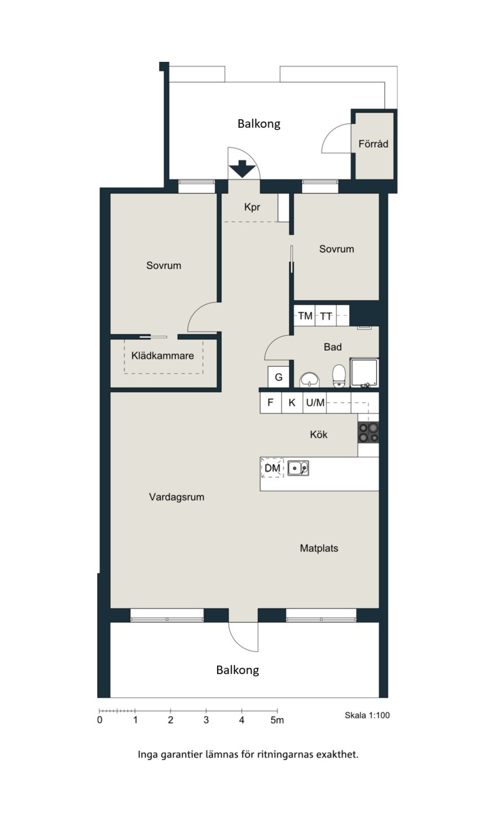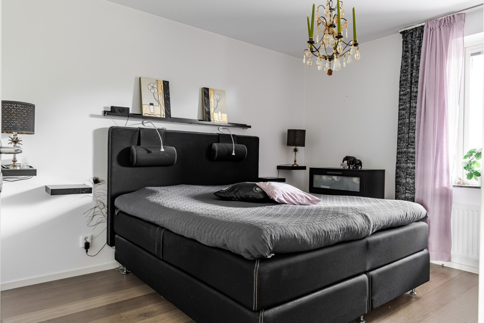 Bostaden bjuder två sovrum. Det större sovrummet har gott om plats för dubbelsäng med tillhörande möblemang. Klädförförvaring i garderober.