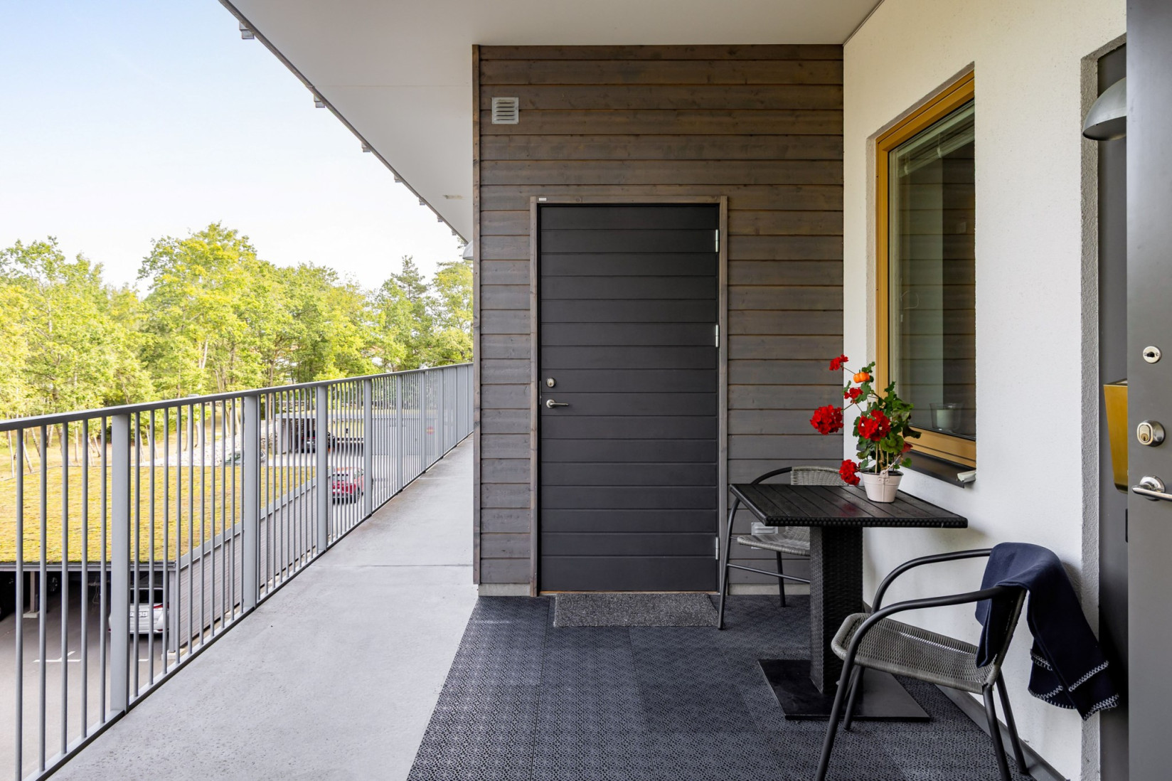 I välskött bostadsområde hittar vi denna rymliga trea. Från markplan tar vi hissen upp till våning två. Via loftgången når vi bostaden. Att uppskatta är hur entré balkongen vetter ut mot fritt grönområde.