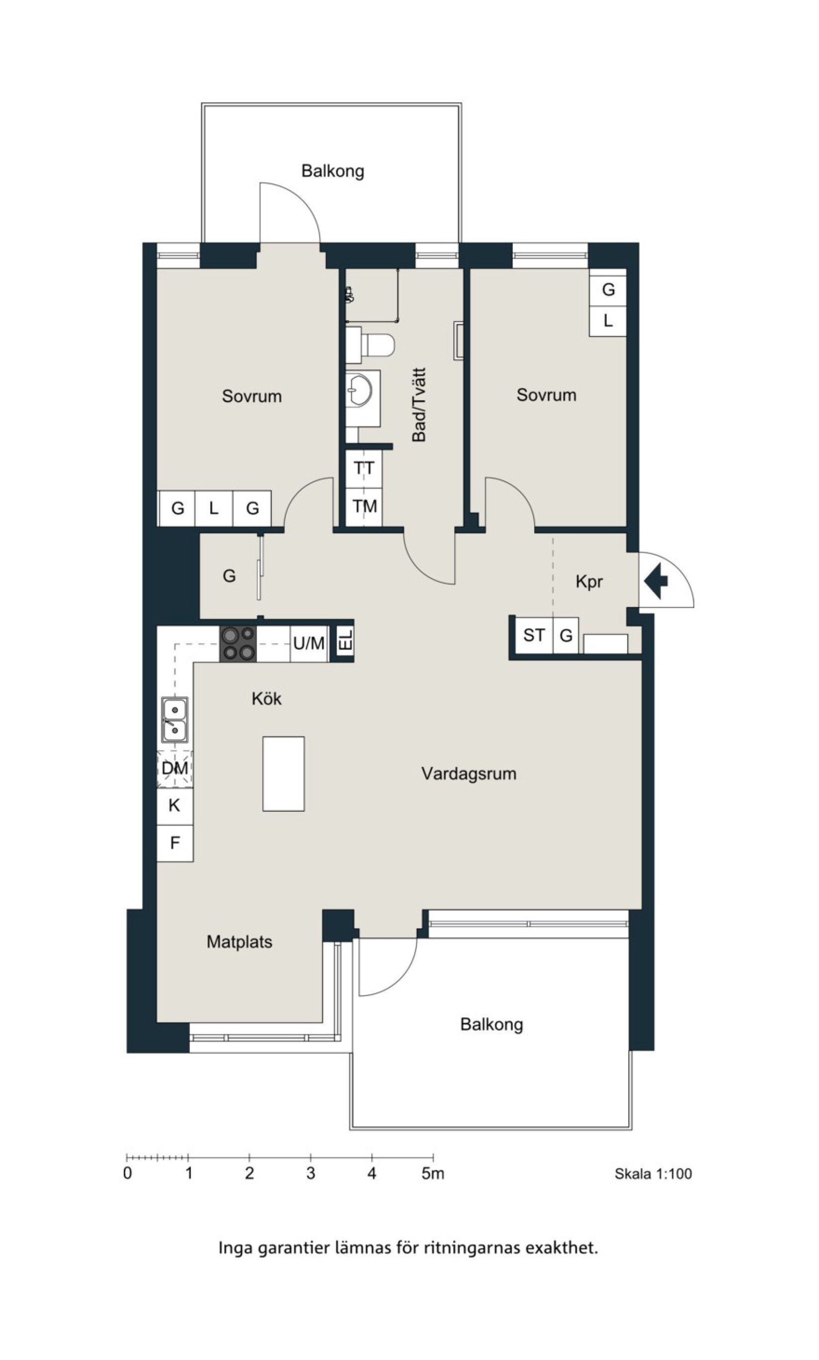 Sällskapsrum, kök, balkong