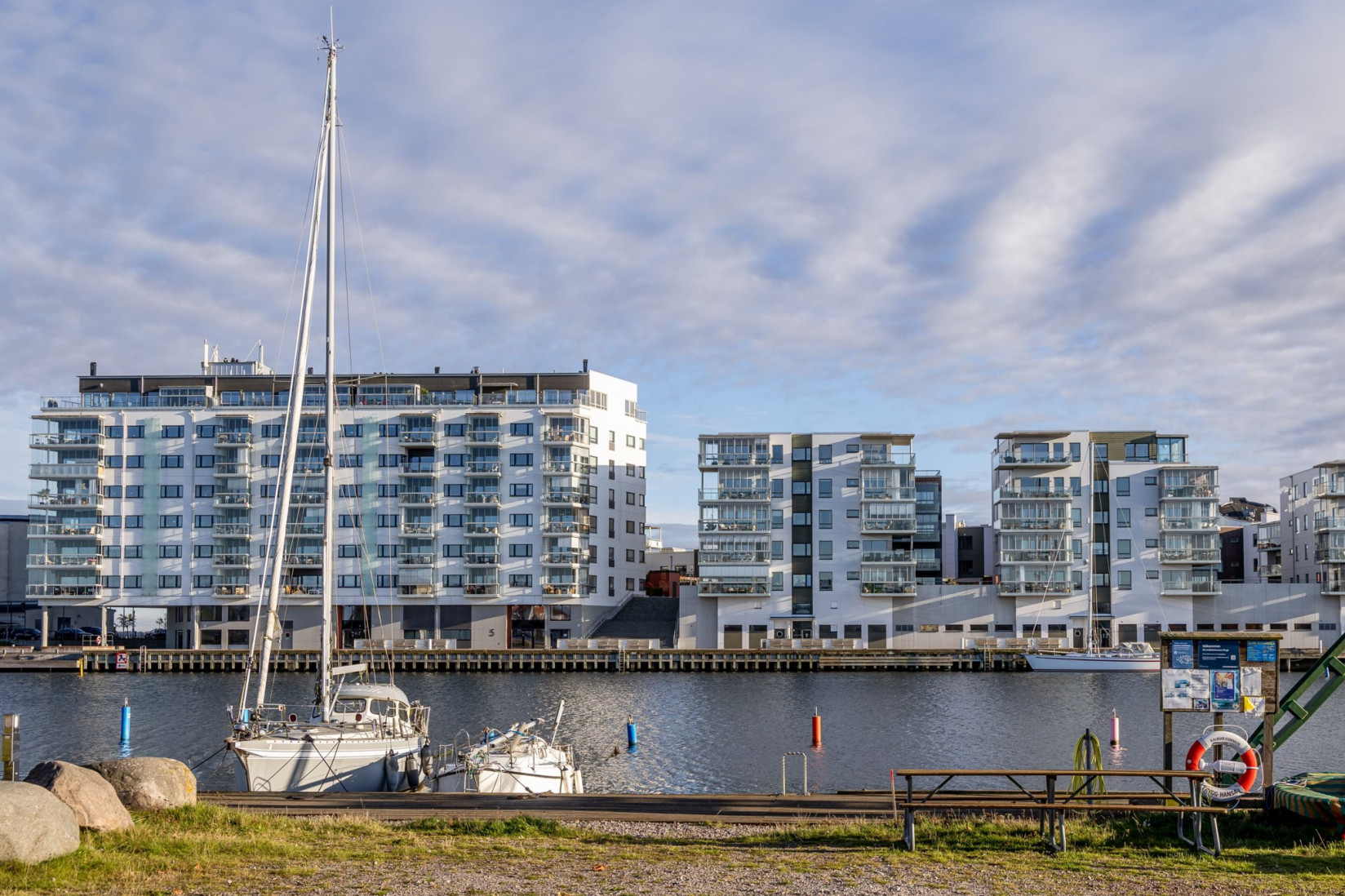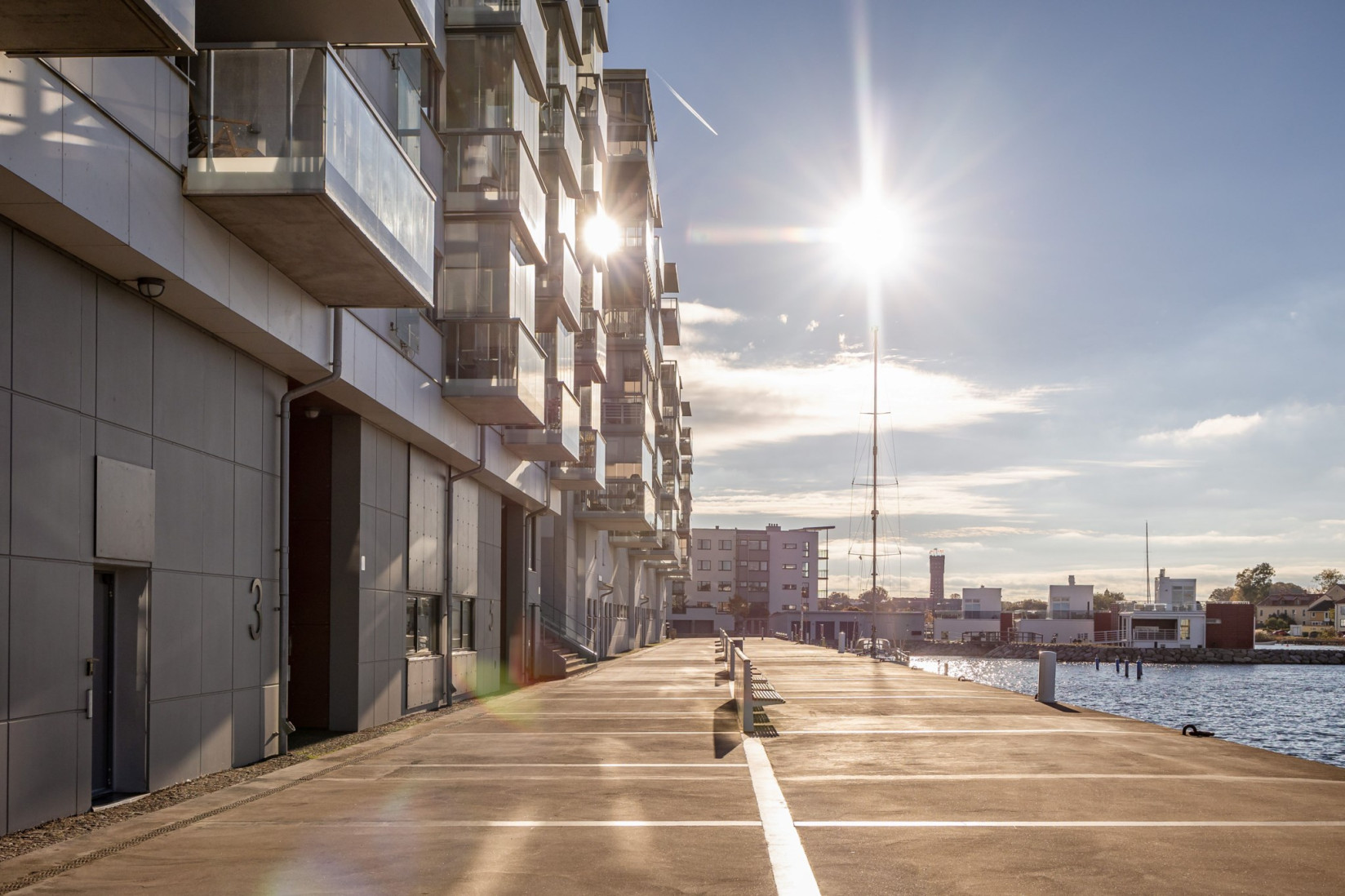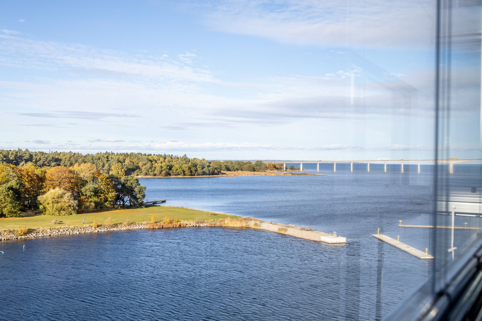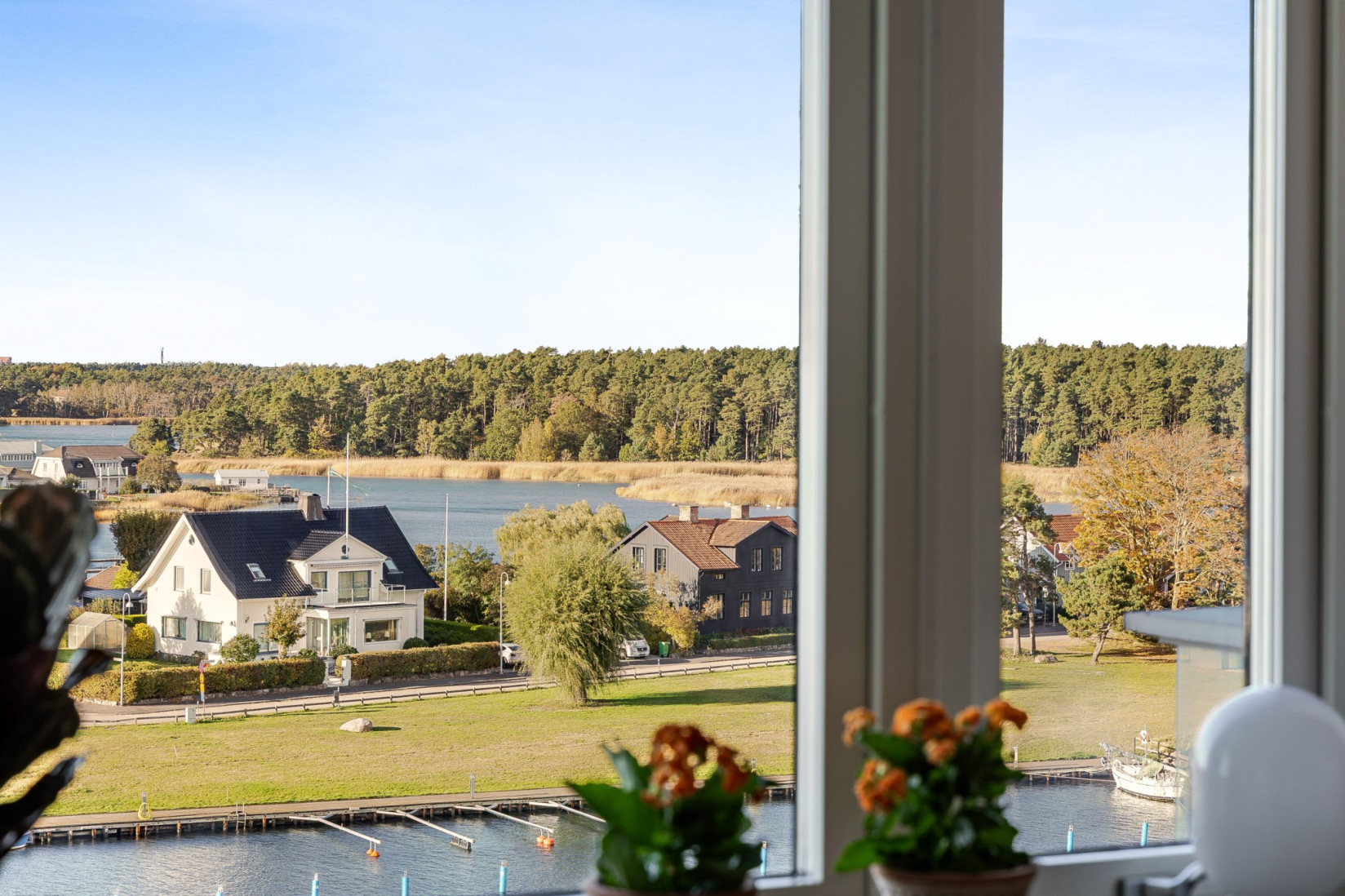 Den inglasade balkongen blir en naturlig förlängning av rummet, en plats att njuta av årets alla dagar med utsikt över Ängö, Ölandsbron, himlen och stadens takåsar.