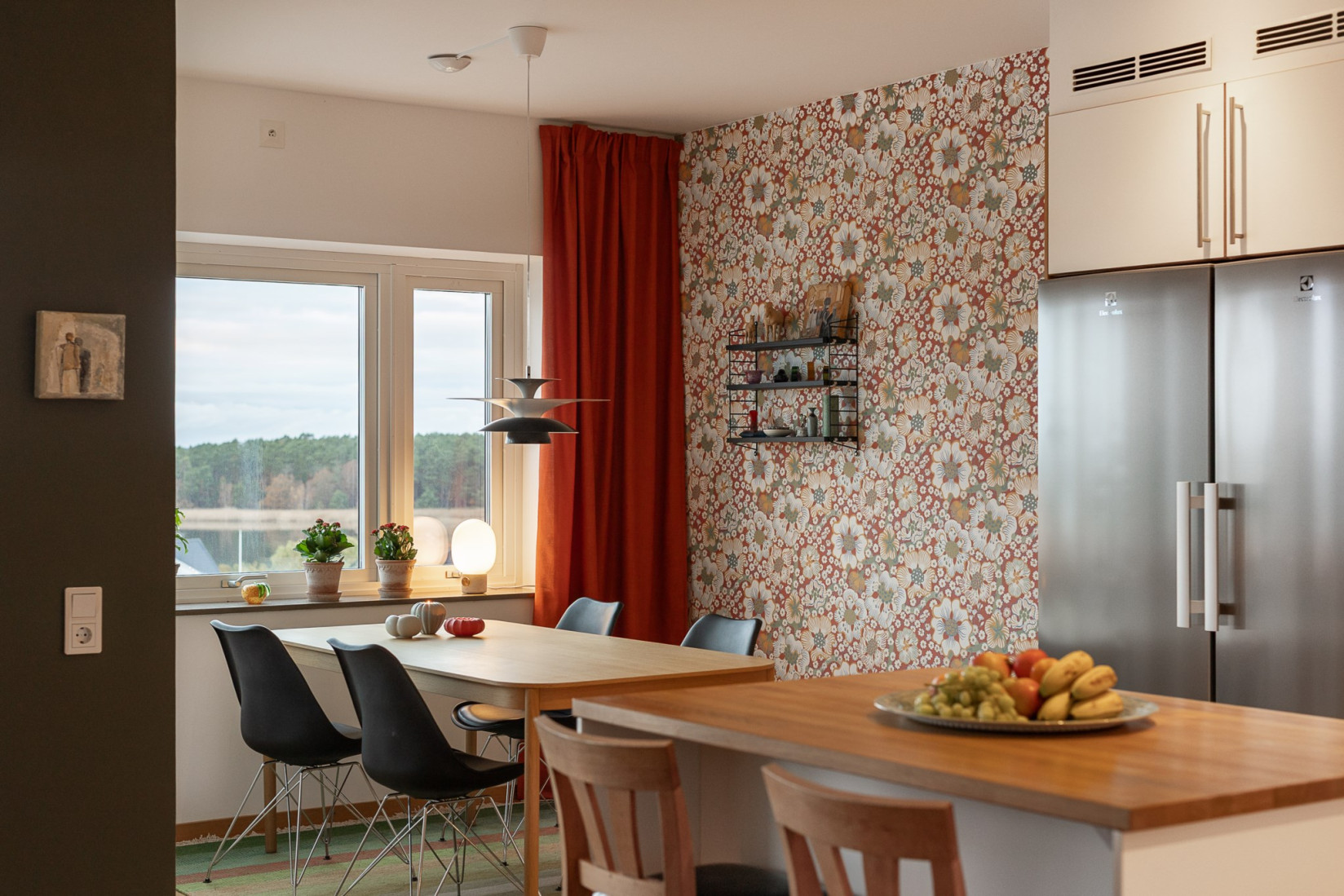 Här finns inga begränsningar när det gäller att bjuda in och umgås. Med stora fönster som ramar in den enastående utsikten blir varje måltid en upplevelse. Oavsett om du njuter av en stilla morgon med en kaffekopp i handen eller en middag i skymningens varma sken, omges du av en kuliss som aldrig upphör att fascinera.