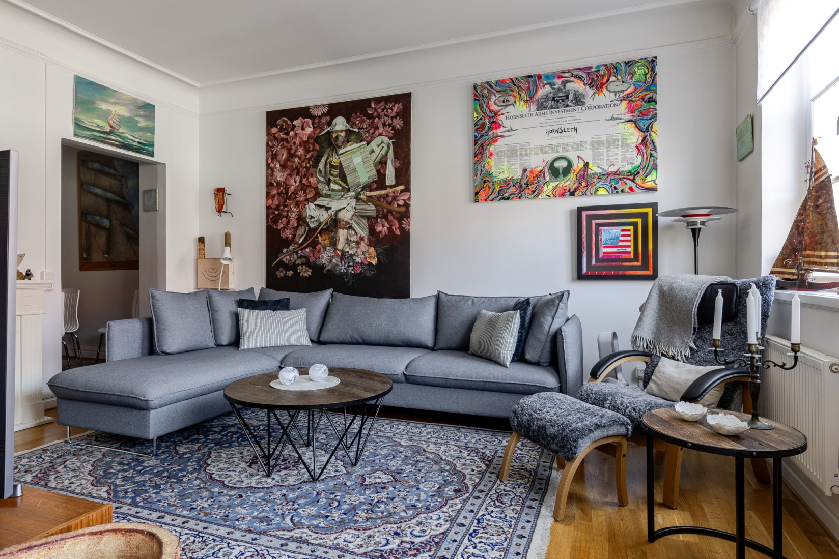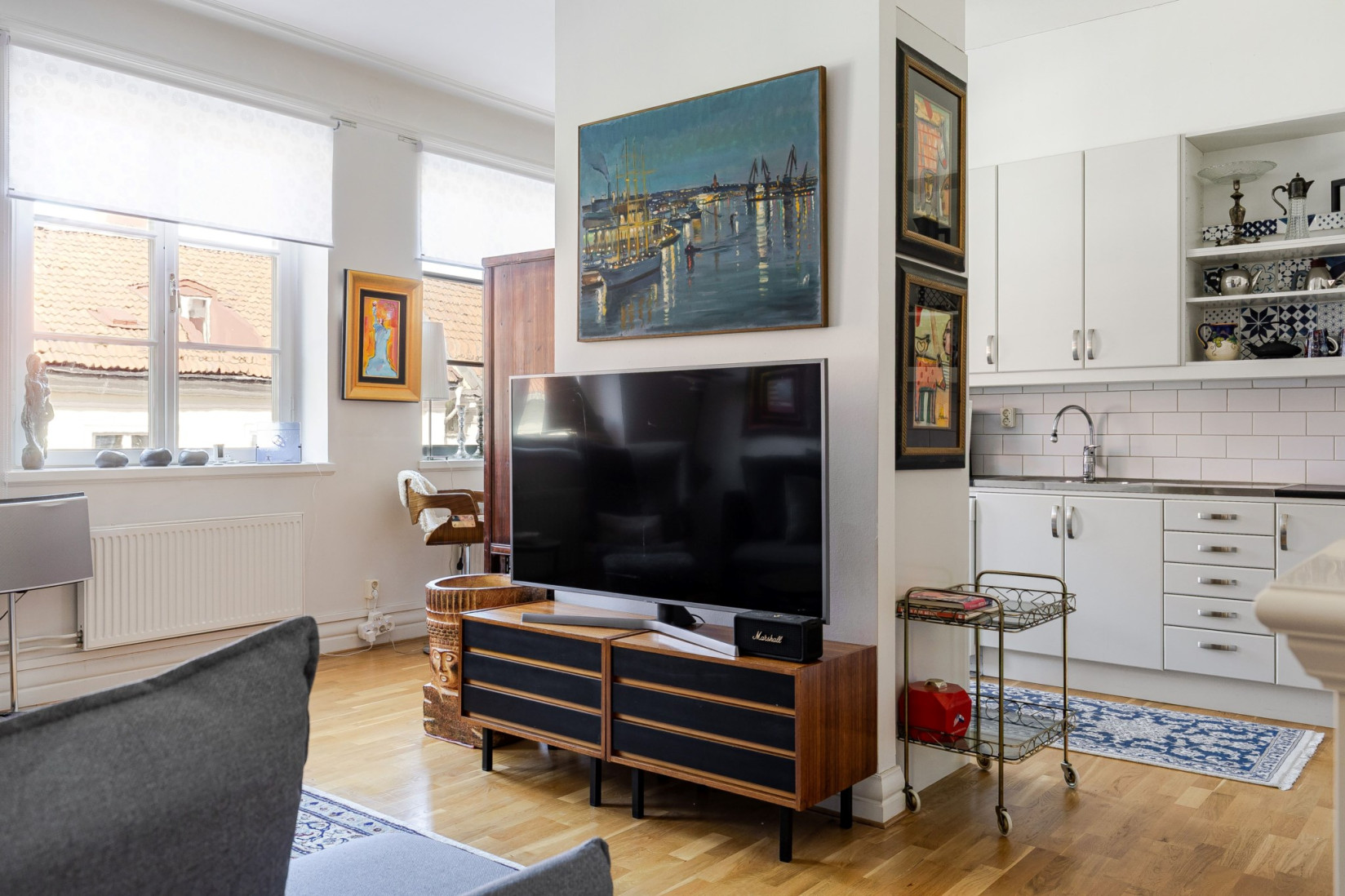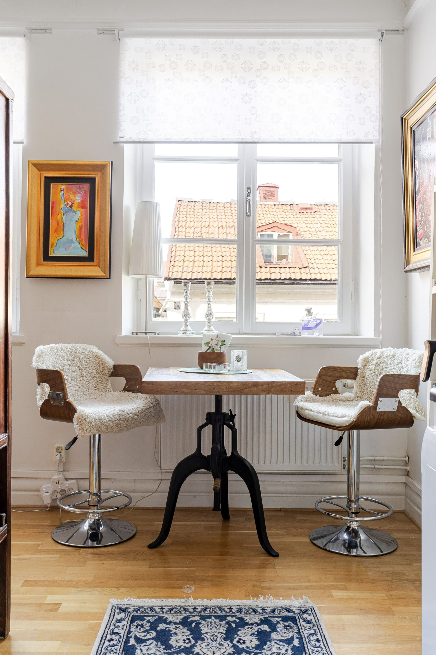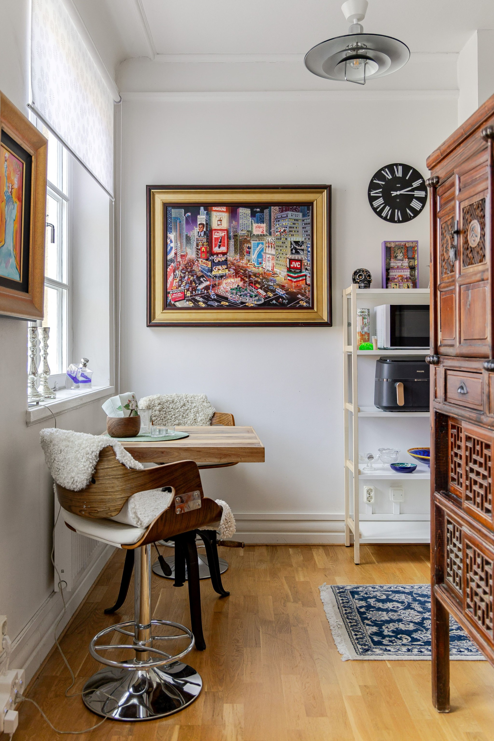 Vid ankomsten möts du av en rymlig hall med gott om förvaringsmöjligheter. Det vackra parkettgolvet löper genom hela bostaden och skapar en enhetlig helhet. Redan här märks den bevarade originalkänslan från 1920-talet, som tillför hemmet sin unika karaktär.