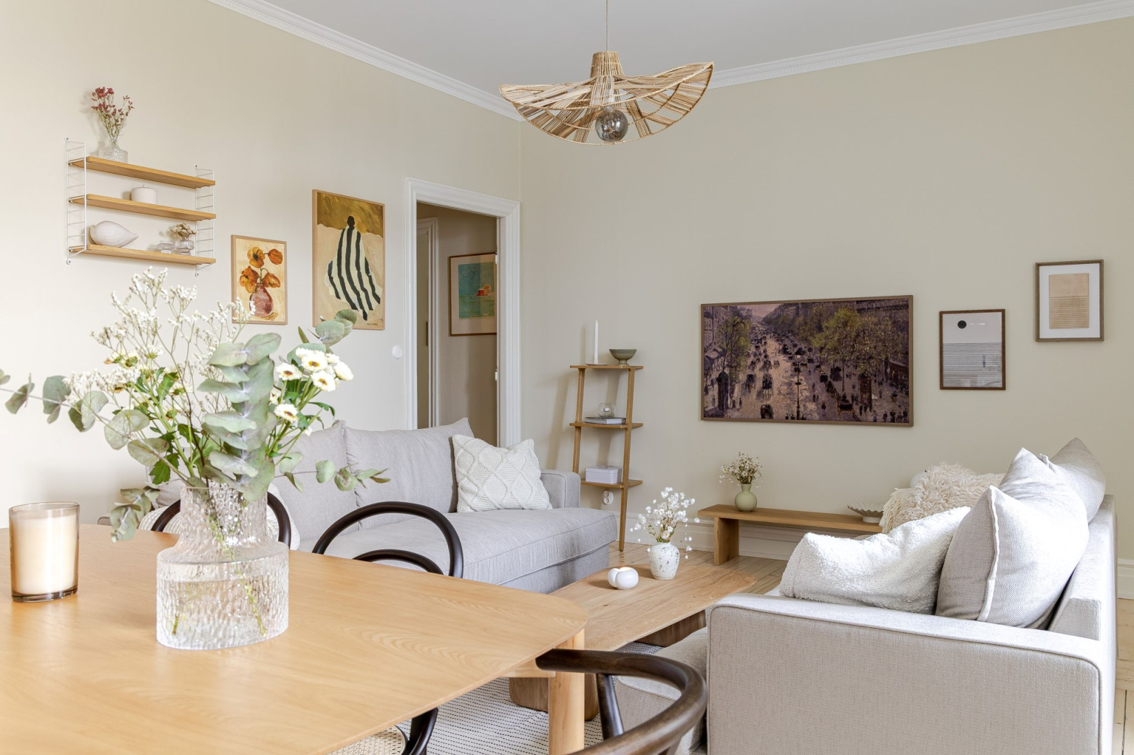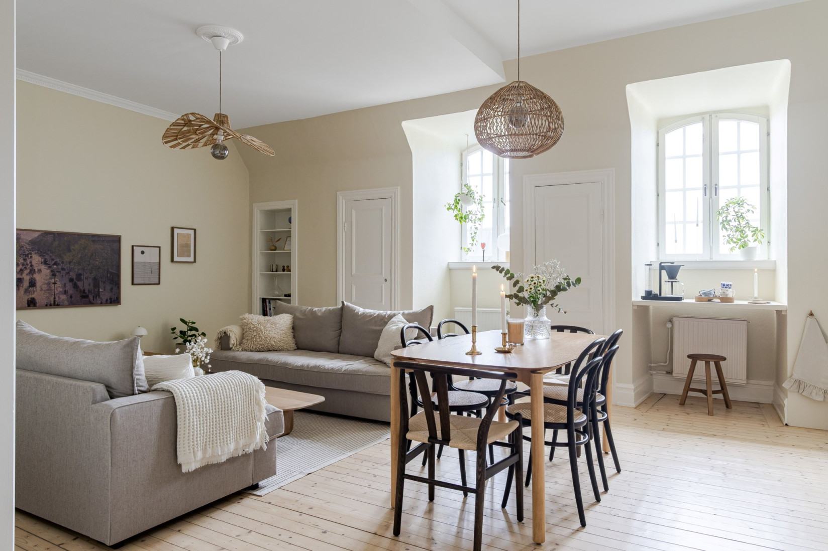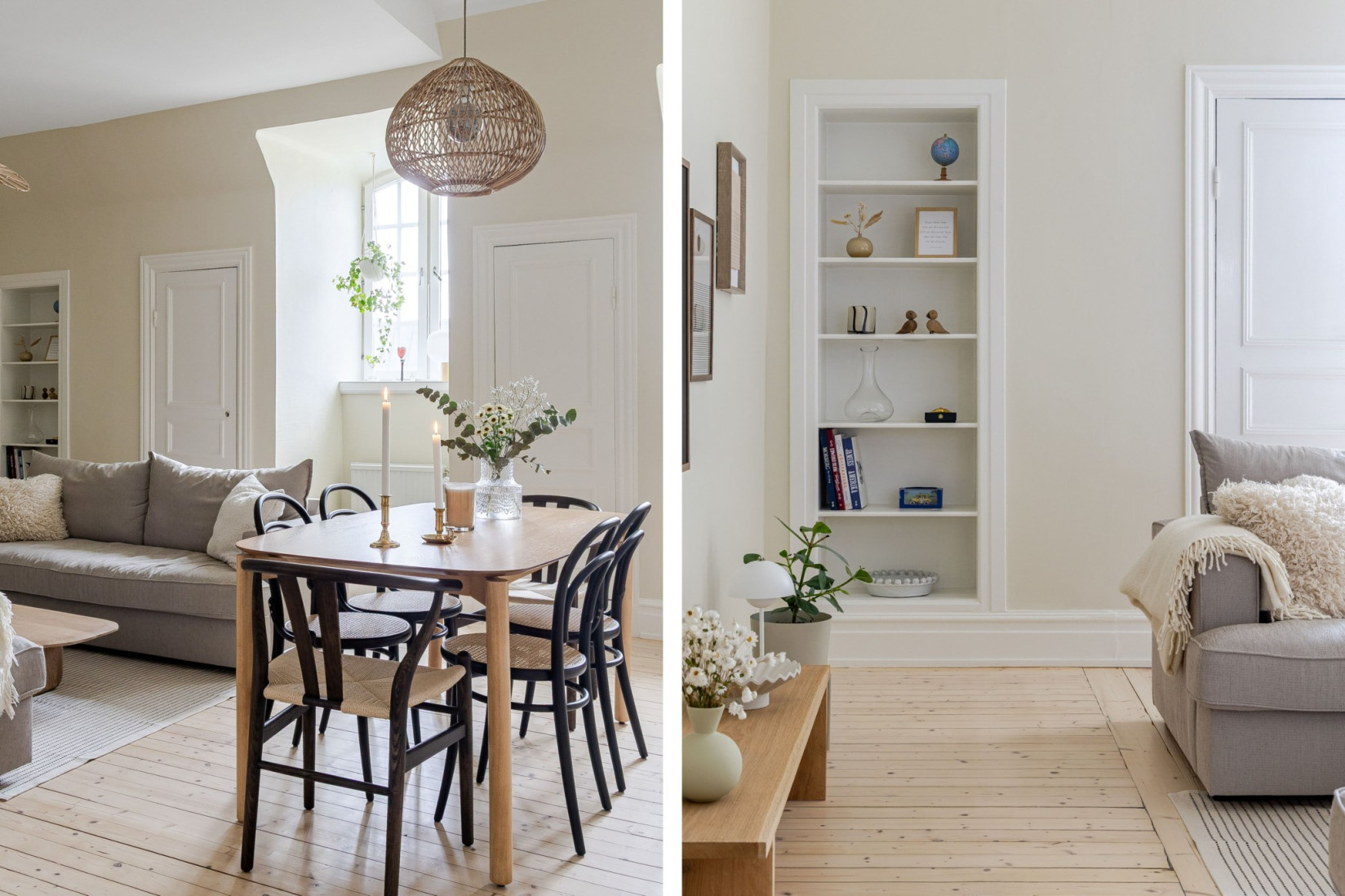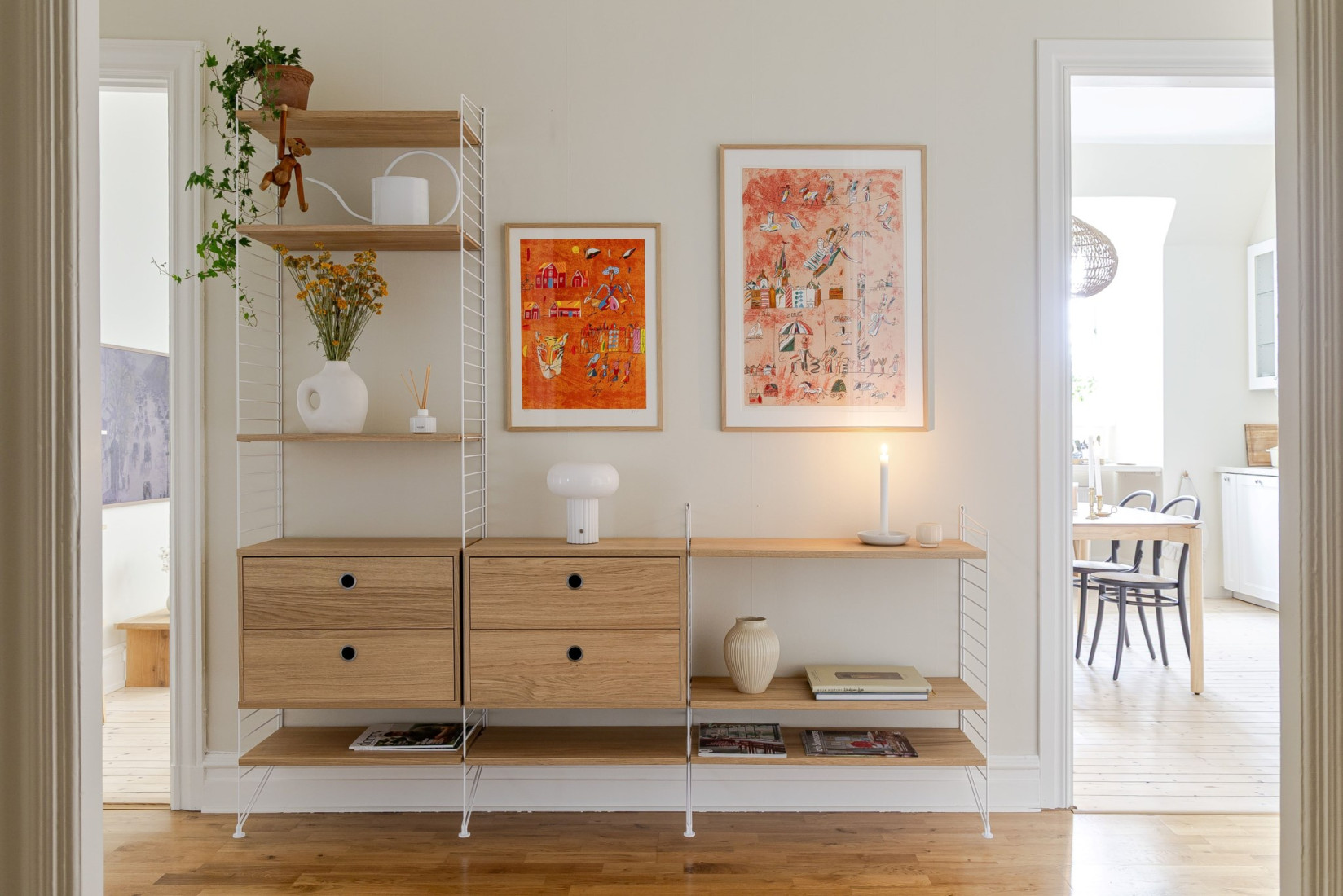 Det stilrena och välutrustade köket fräschats så sent som 2022/2023. Nya luckor, nya bänkskivor och nya vitvaror. Det vackra plankgolvet gör sig fint med köksinredningen. Vita, profilerade skåpsluckor, bänkskivor i sten och vackra detaljer. Med sina kvalitéer och egenskaper är detta ett kök för den kräsne, skicklige och nyfikne kocken. Den maskinella utrustningen består av diskmaskin, induktionshäll, ugn, fläkt samt inbyggd kyl och frys. Rummet bjuder på charm i överflöd. På tal om charm. Bakom de två dörrarna hittar du oanade förvaringsutrymmen. Det ena gör sig utmärkt som skafferi.