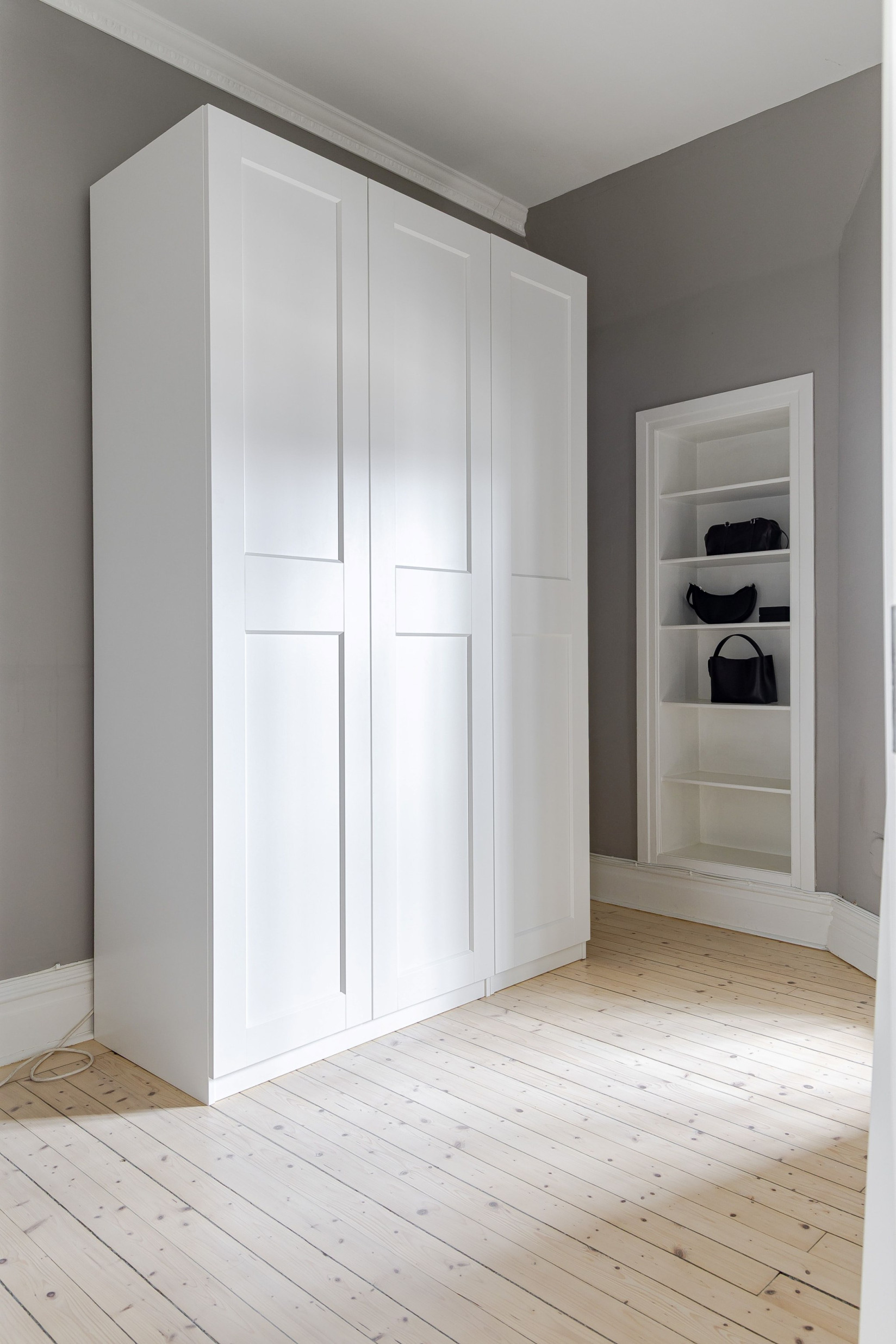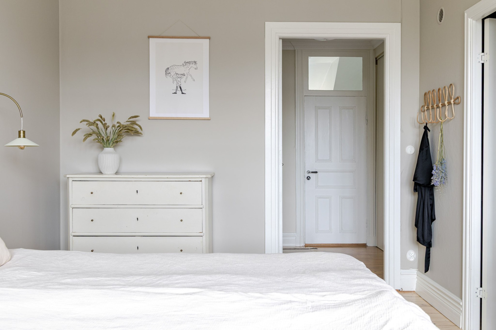 Bostaden erbjuder två, tre eller fyra sovrum. Beror helt och hållet på hur du räknar och tolkar. Från start var det två regelrätta sovrum. Det något mindre rummet bjuder på ljusa ytskikt, parkettgolv och en klädkammare. Minns du att jag nämnde grannen som byggt balkong? Eventuellt kan möjligheten för en balkong finnas just här. Det andra sovrummet är spatiöst - precis som man förvänta sig ett master bedroom. Nyss nämnda rum berikas med fint plankgolv, fräscha ytskikt och goda förvaringsmöjligheter. The master bedroom har numera gjort plats för ett tredje rum. Ett rum vars möjligheter är många. Barnrum, kontor eller en walk-in-closet? Du avgör! Det fjärde "rummet" beskrevs i början av rundturen.