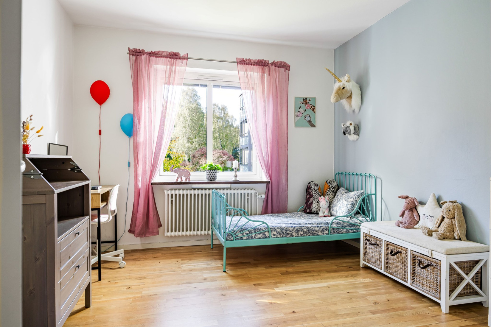 Längst in till vänster i bostadens hörn ligger det andra sovrummet, ett ljust och inbjudande rum med lugnt läge.