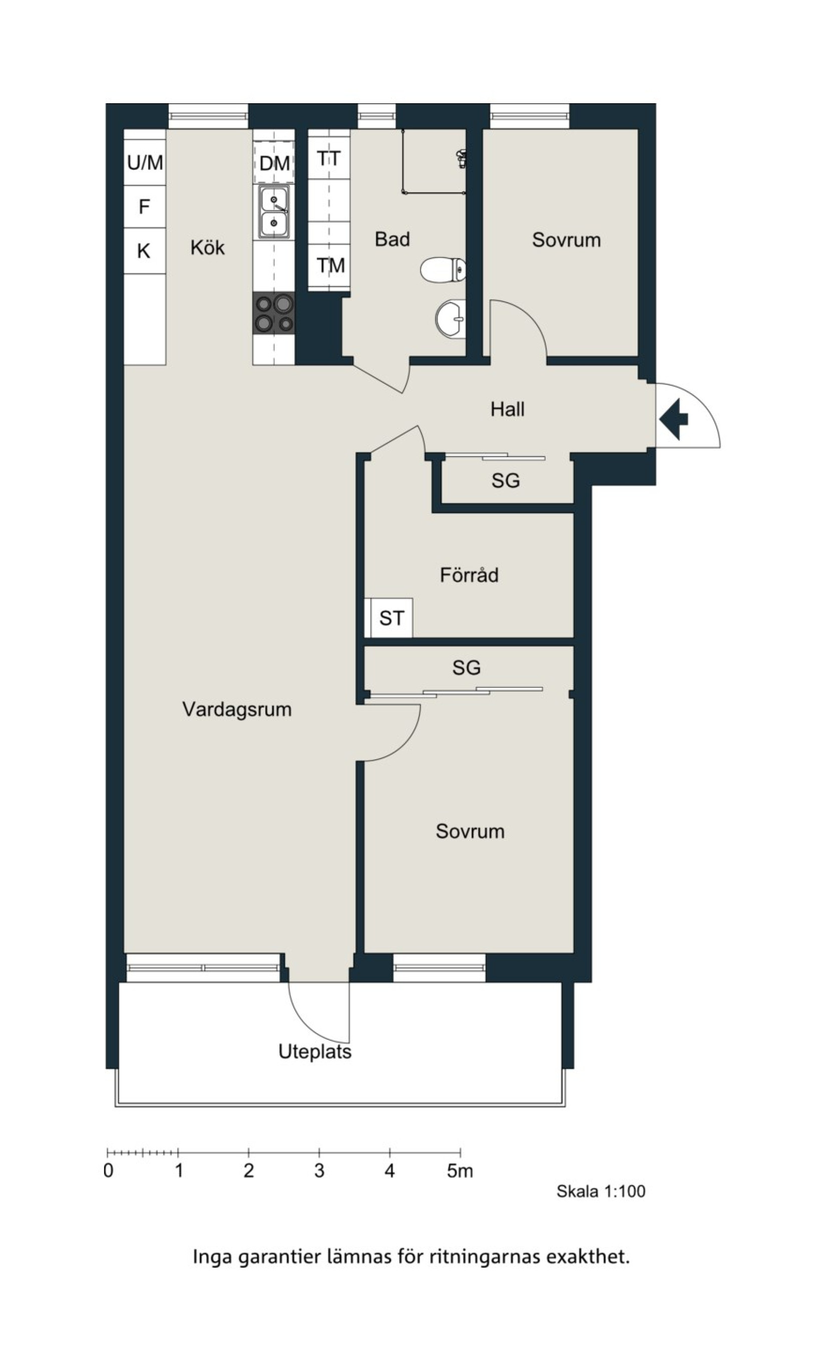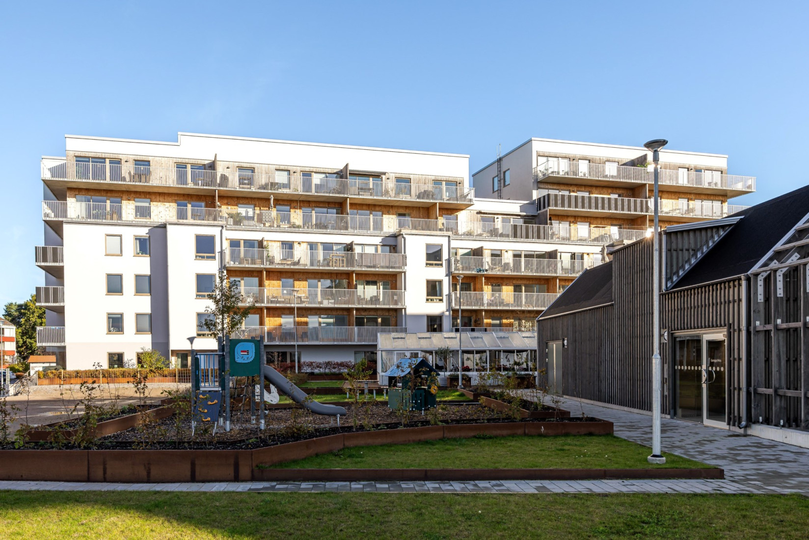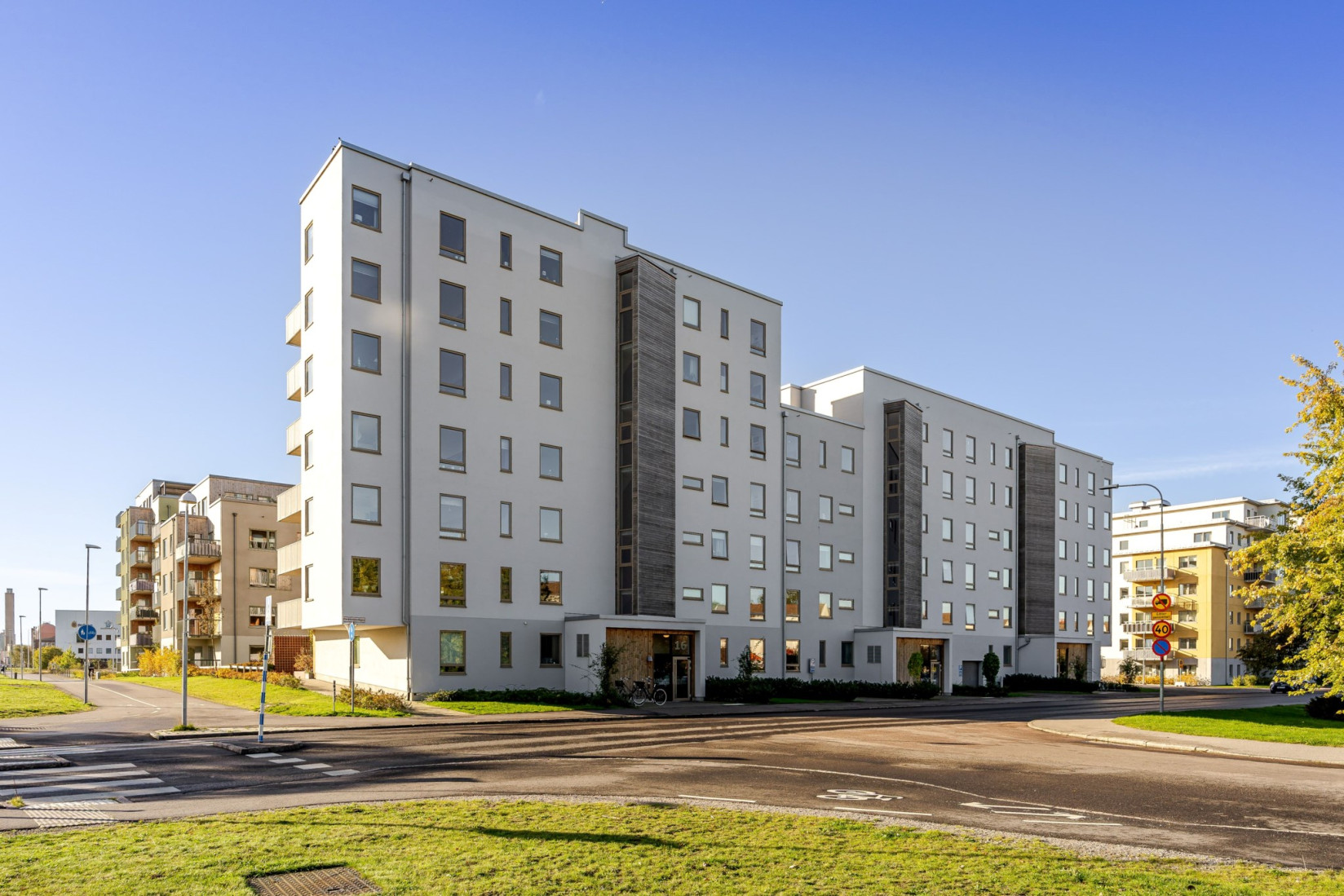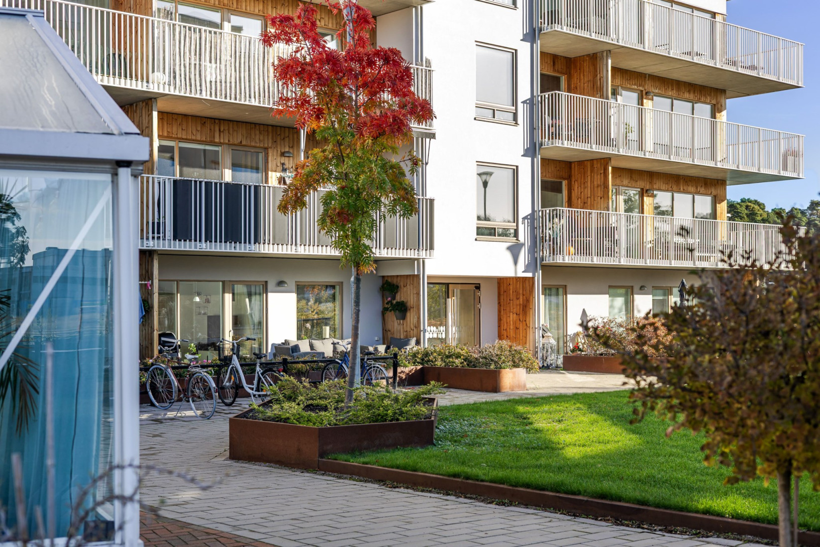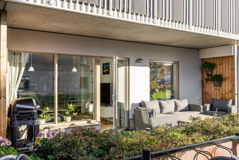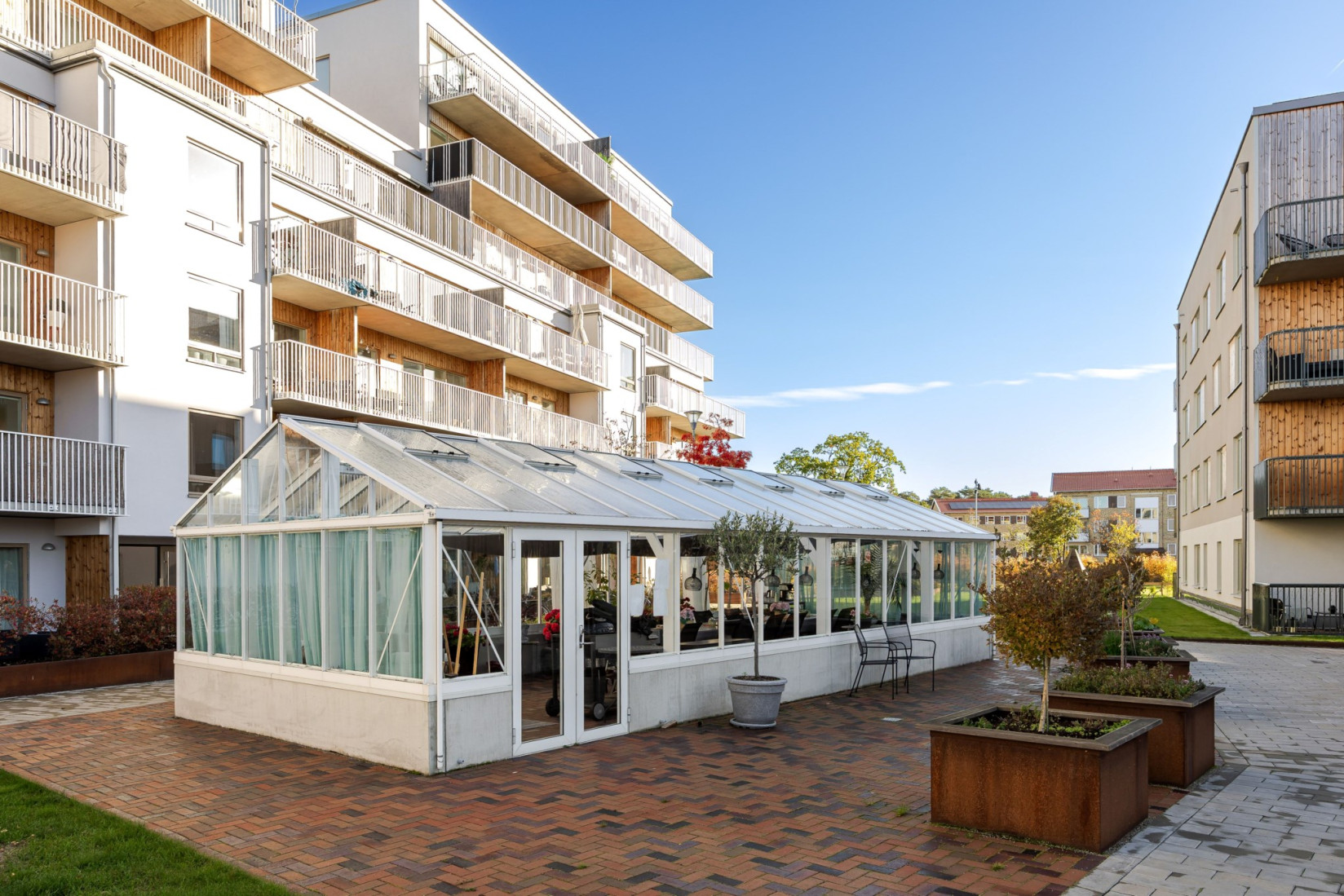 Tänk dig bekvämligheten i att köra bilen rakt ner i garaget, koppla in laddningen och från samma plan ta hissen upp till bostaden. Just denna bostad väntar bekvämt på våning 1 med uteplats. Stig in och låt tre rum och kök visas. Redan i hallen möts du av ett behagligt ljusinsläpp. Här finns plats för avhängning av ytterkläder och skor i skjutdörrsgarderober samt ett stort förråd där i princip allt får plats. Fötterna har då redan mött ett slitstarkt klinkergolv som sedan övergår i vitpigmenterad ekparkett som löper enhetligt genom hela bostaden.