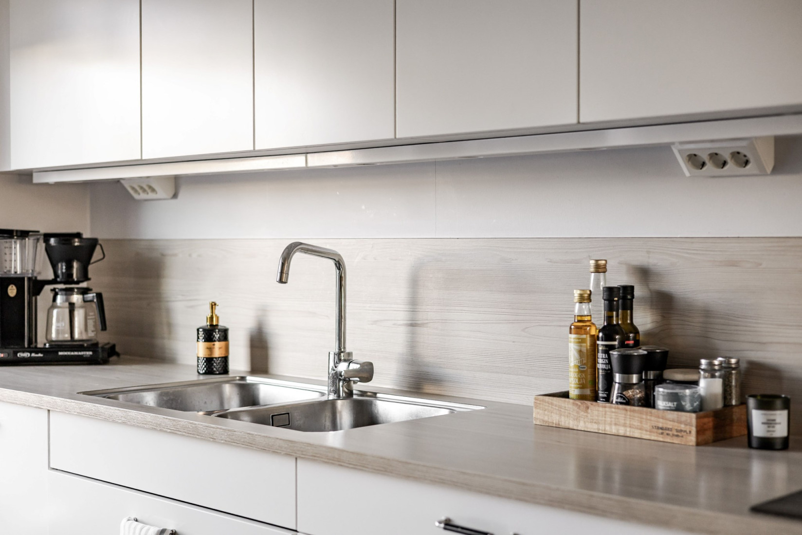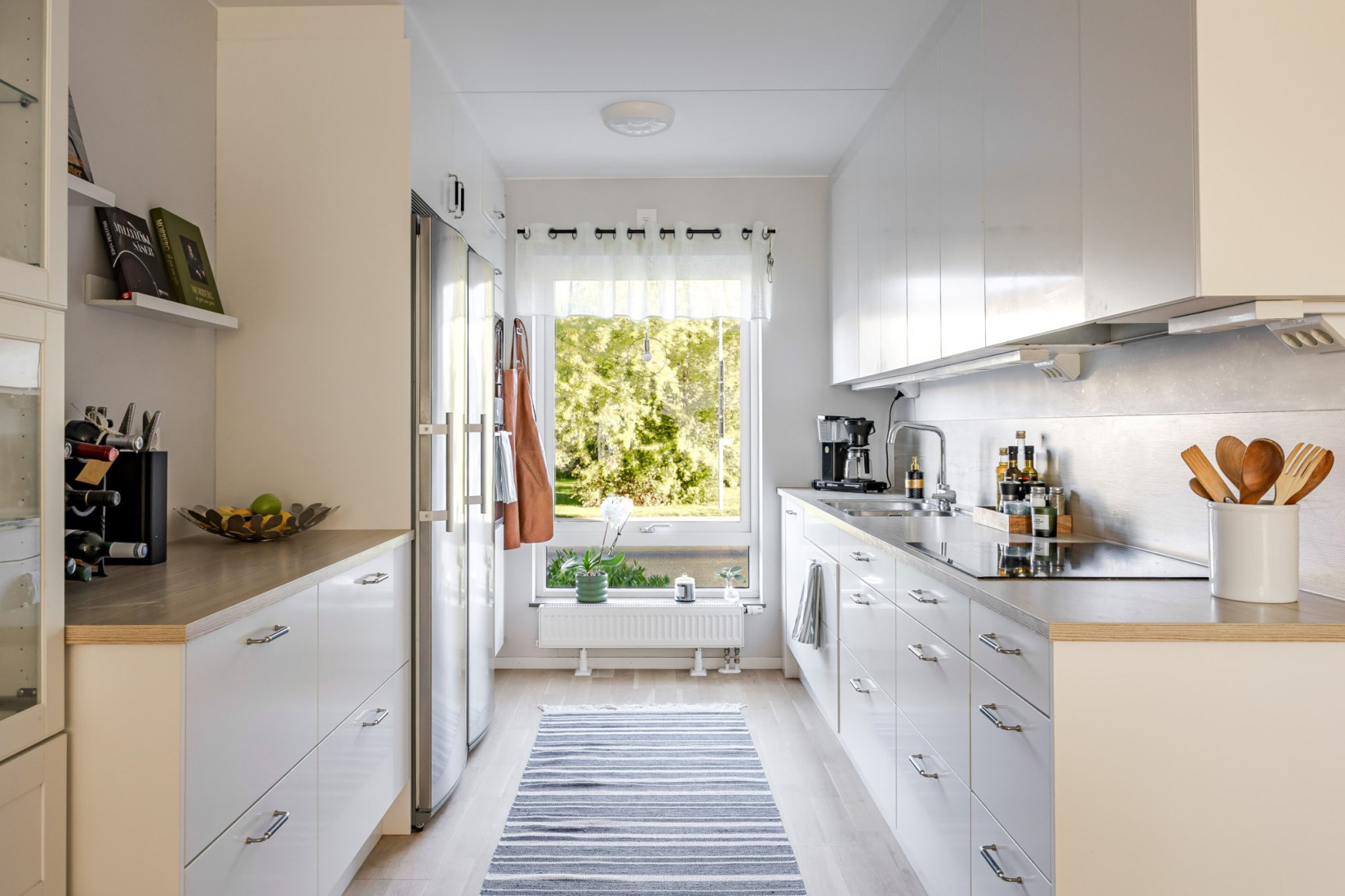 Välutrustat och smakfullt inrett Sentens-kök i rostfritt stål med generösa förvaringsmöjligheter, rejäla arbetsytor och en uppskattad öppen planlösning mot matplats och vardagsrum. Ett stort fönster mot norr ger ett fint ljusinsläpp som tillsammans med planlösningen skapar en luftig och trivsam miljö med plats för umgänge. Köket är utrustat med hel kyl, hel frys, inbyggnadsugn, inbyggd mikro, integrerad diskmaskin, induktionshäll och fläkt.