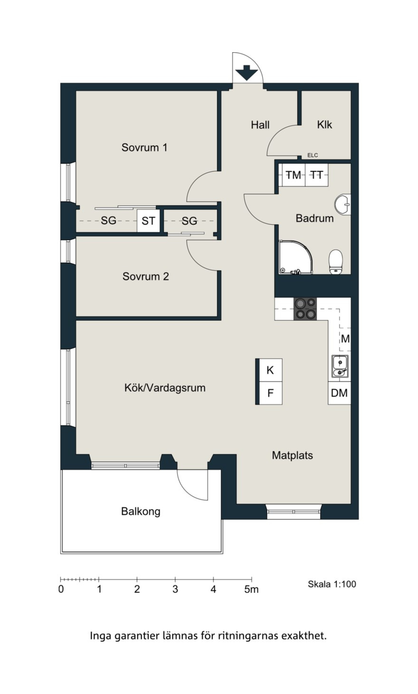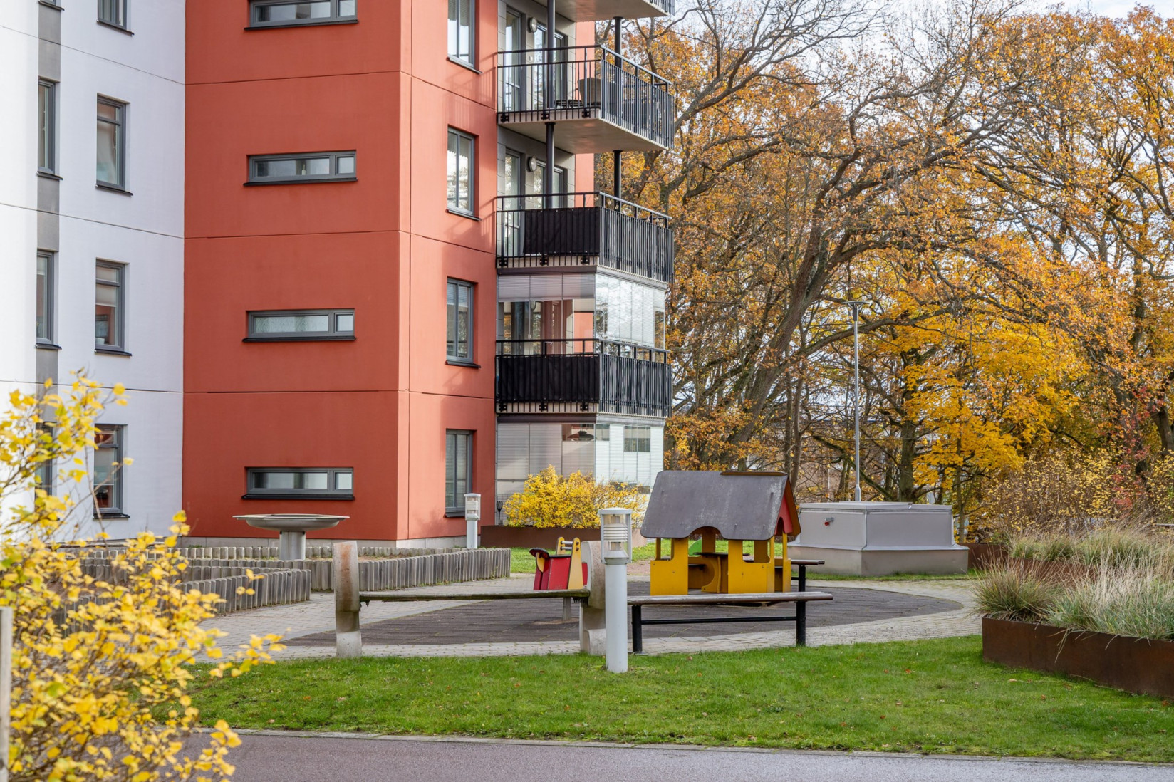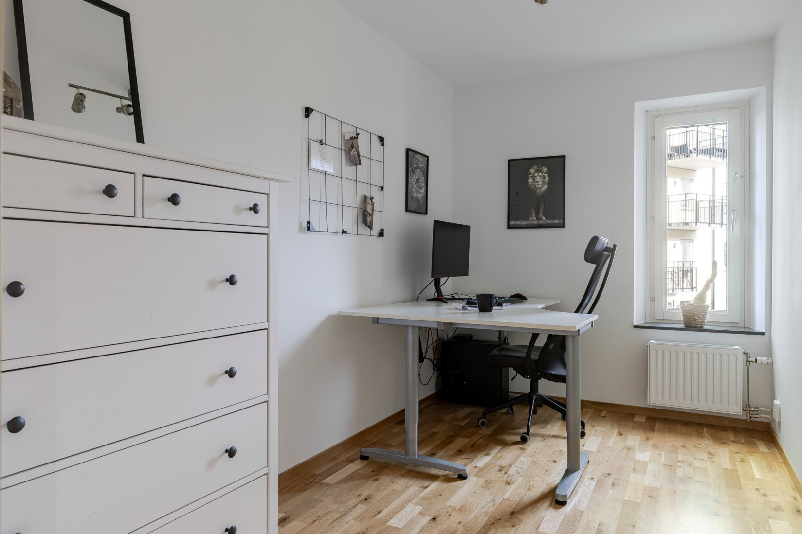 Intill finns det andra sovrummet – perfekt som gästrum, barnrum, tonårsrum eller arbetsrum, även här med skjutdörrsgarderob.
