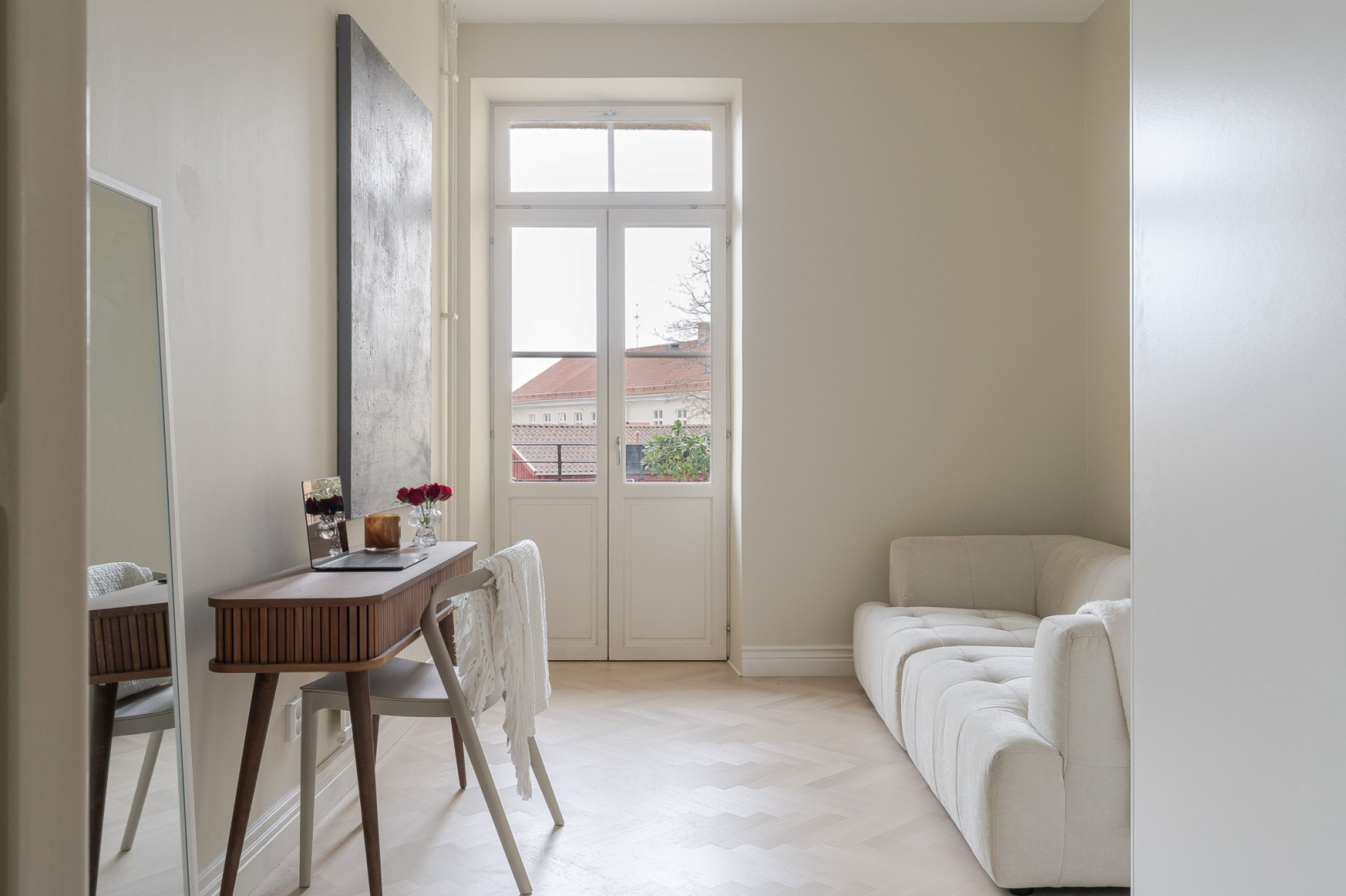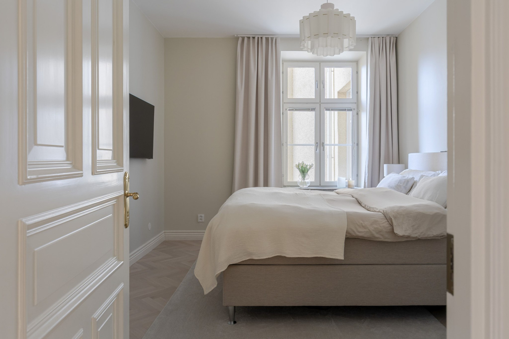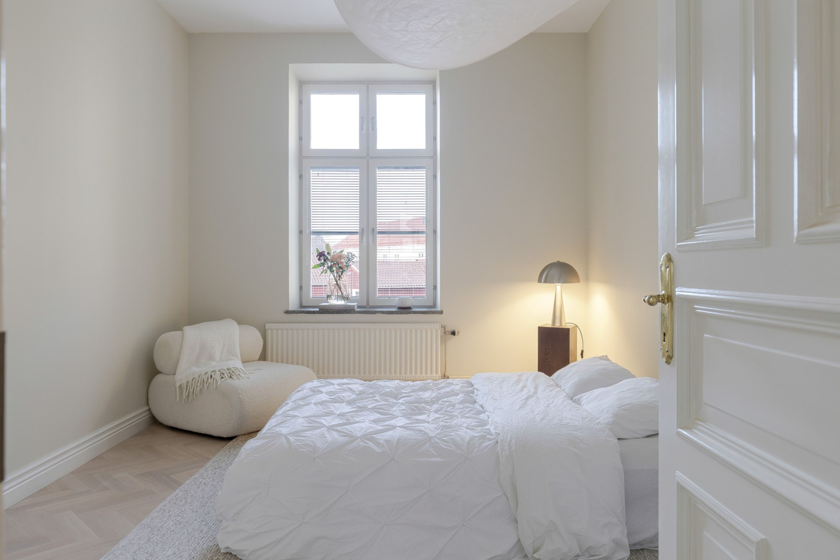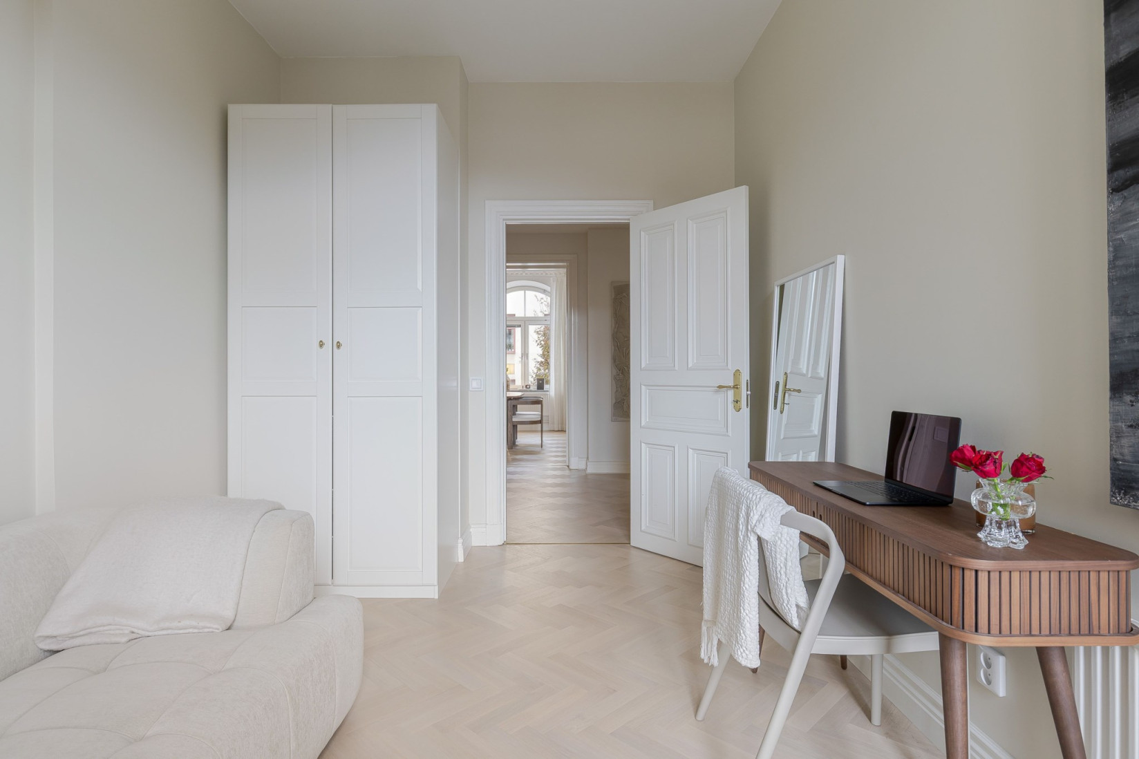 Nu väntar tre rymliga sovrum med ett lugnt och ostört läge mot den lummiga innergården, en idealisk plats för avkoppling och återhämtning. Från ett av sovrummen har du dessutom direkt tillgång till balkongen, där morgonkaffet kan avnjutas i en stilla och grönskande miljö.