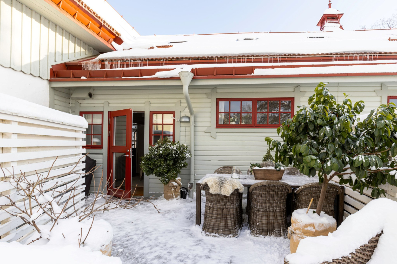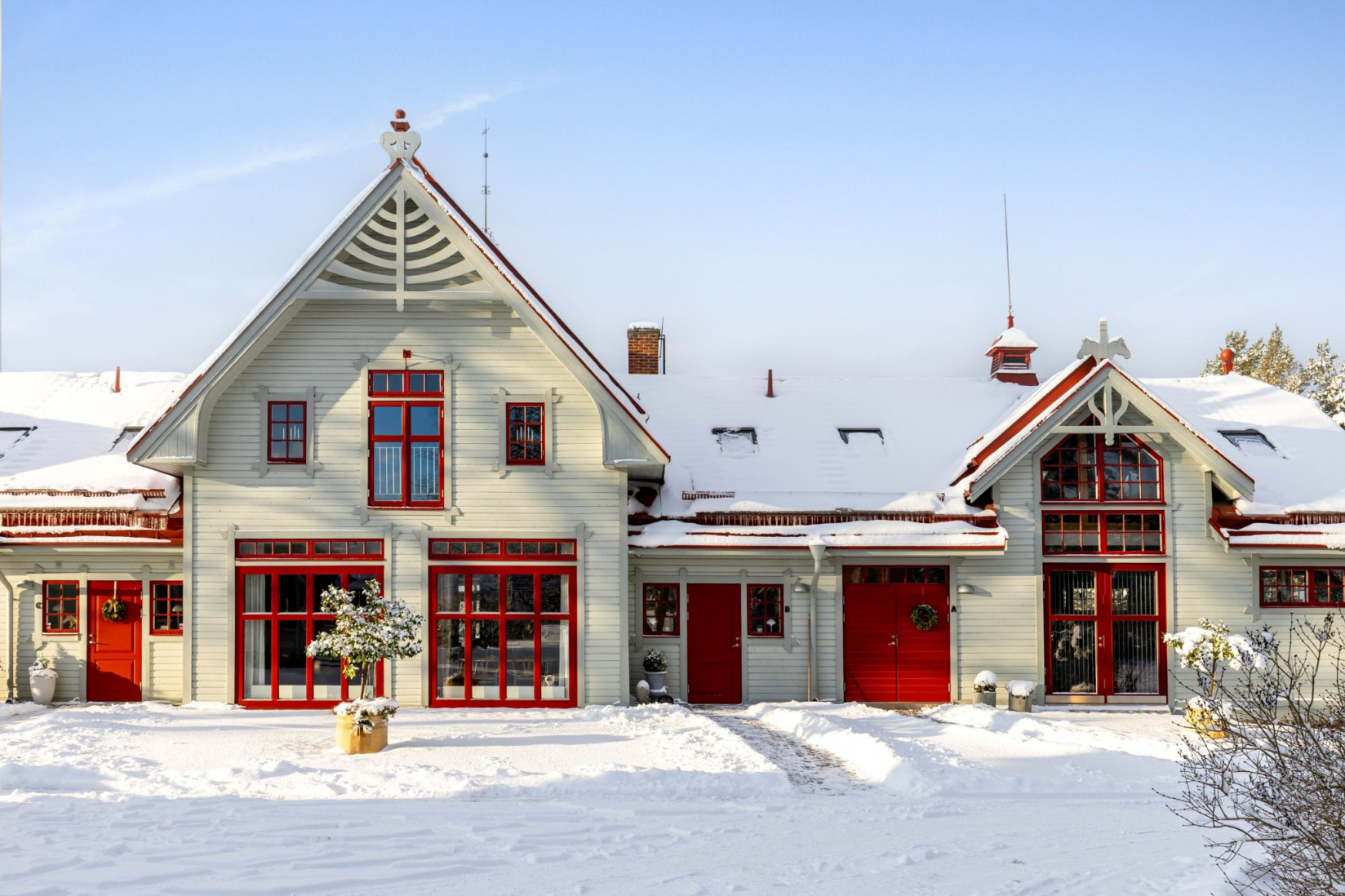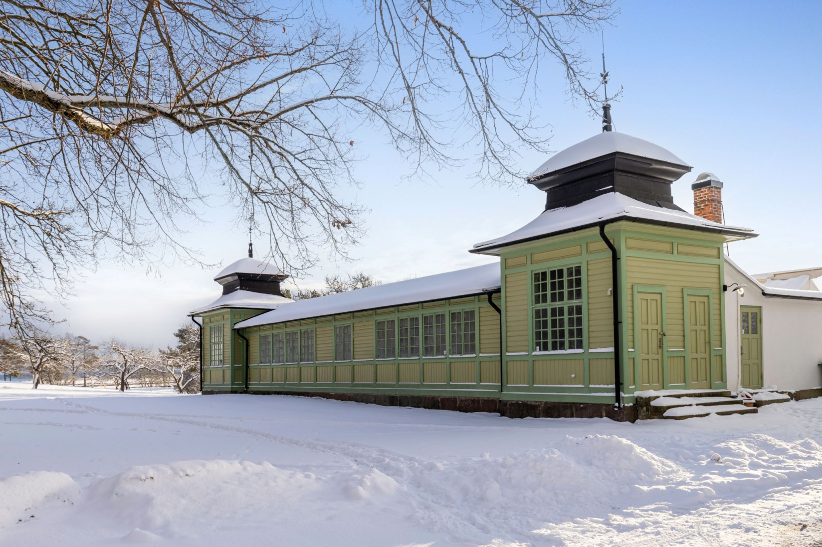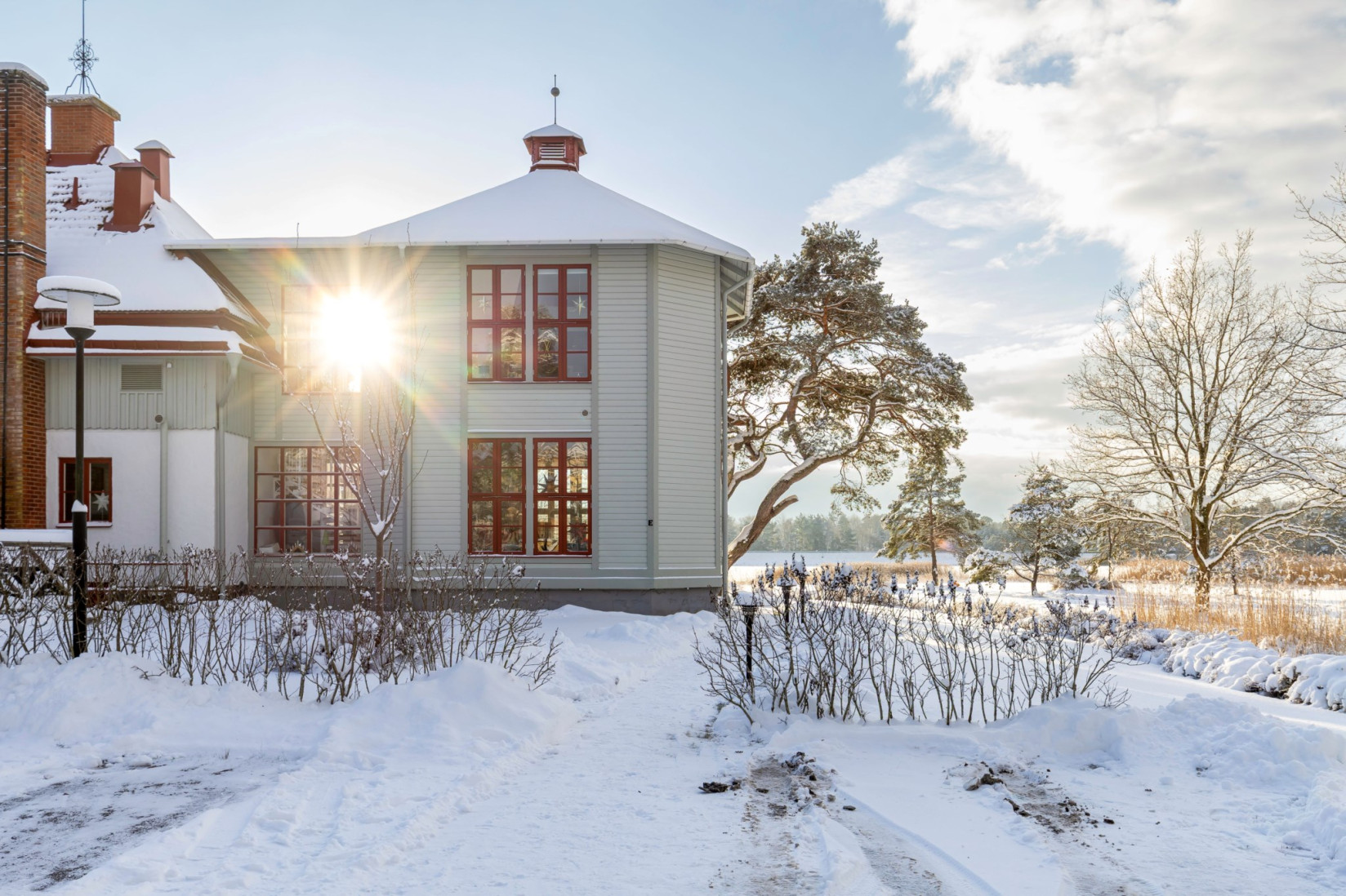 Den ståtliga ekonomibyggnaden, signerad arkitekt Olin och uppförd kring förra sekelskiftet, vittnar om gediget hantverk och långsiktig vision. Det historiska uttrycket lever vidare i samspel med moderna inslag, både utvändigt och invändigt. Byggnadens framsida vetter mot Solbacka och dess välvårdade grönska – en öppen miljö att röra sig i och återvända till, om och om igen.