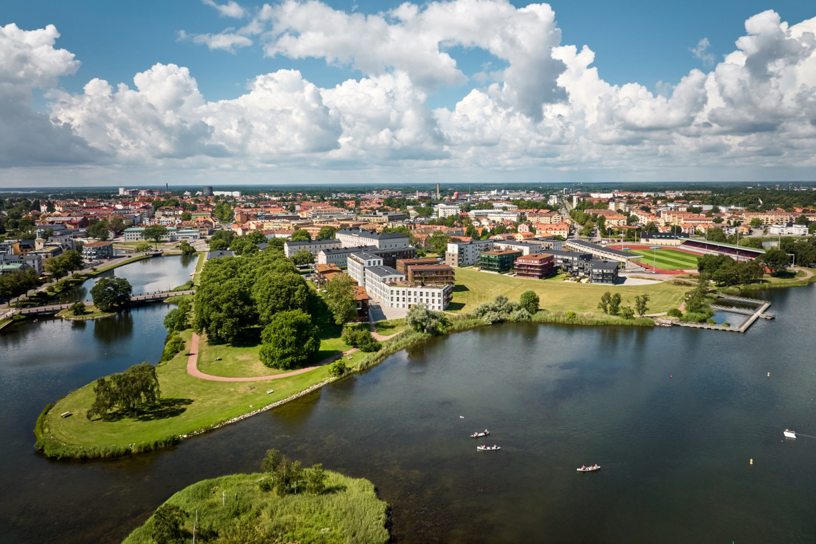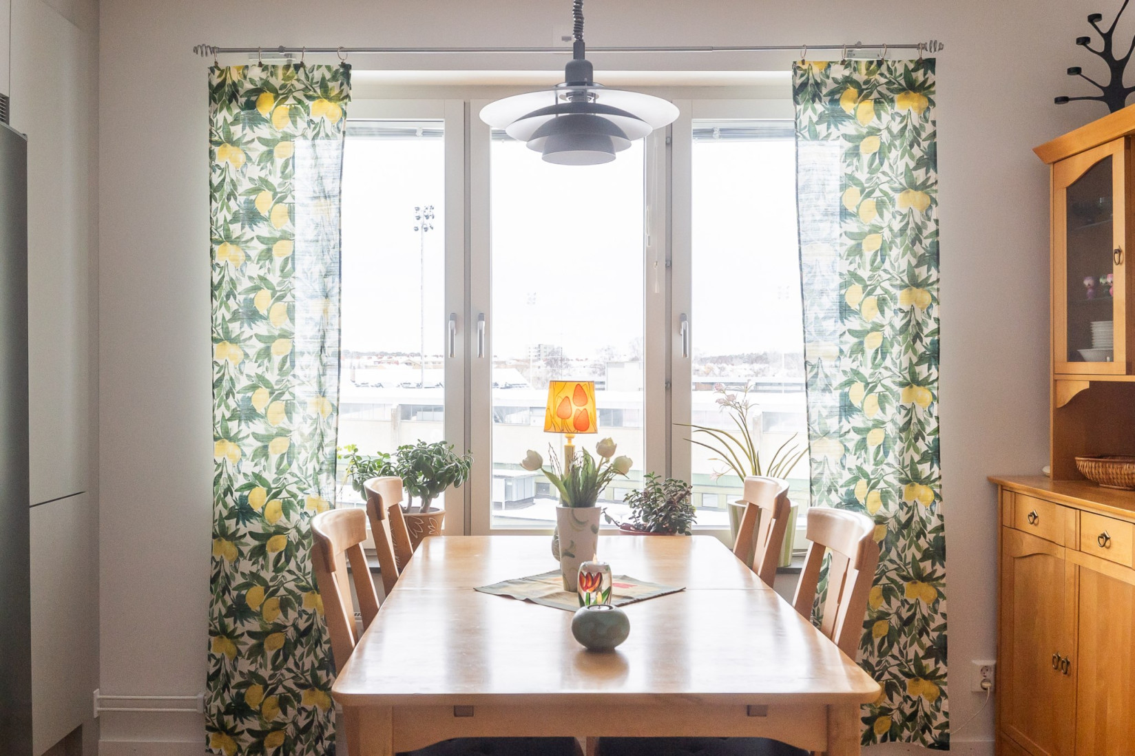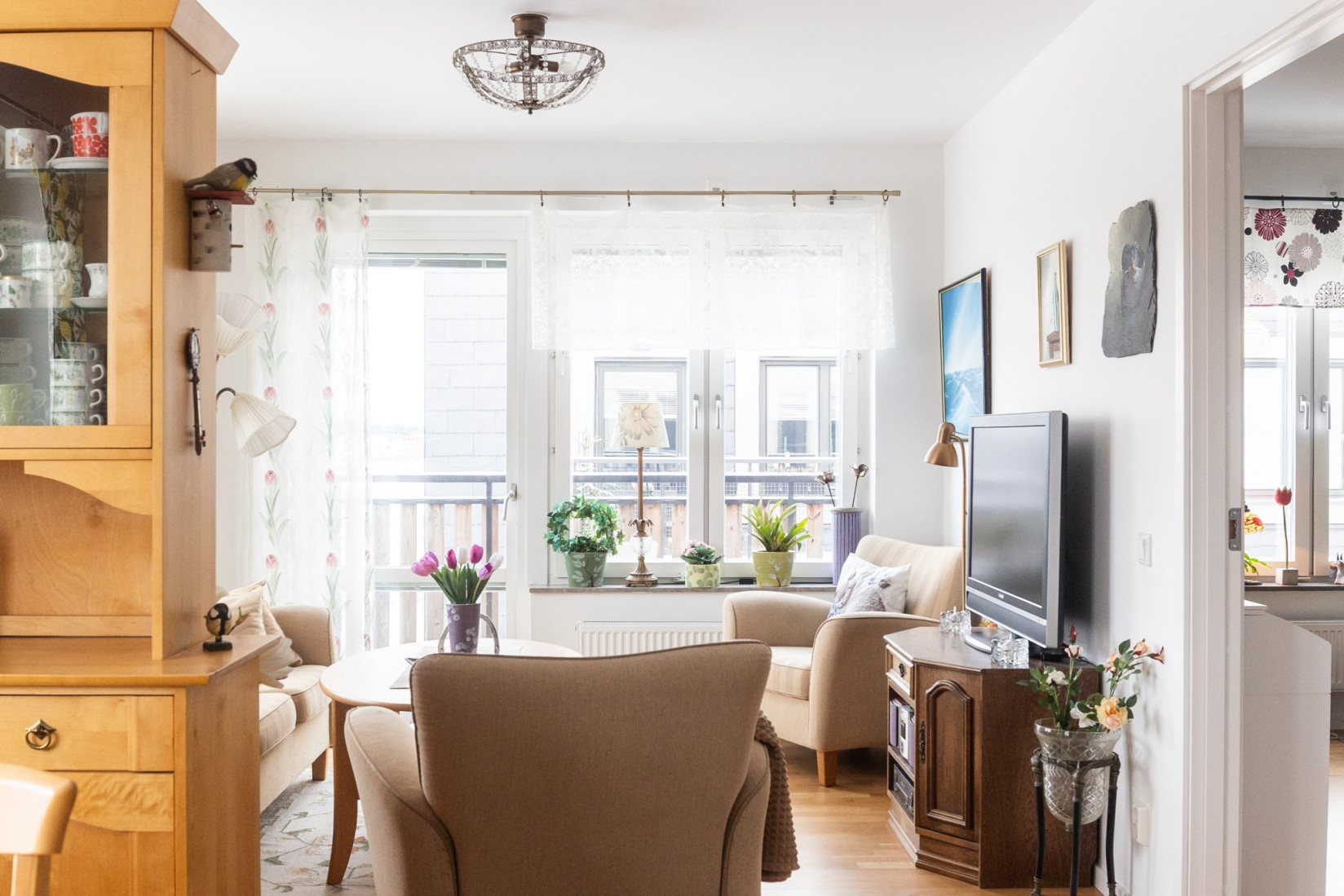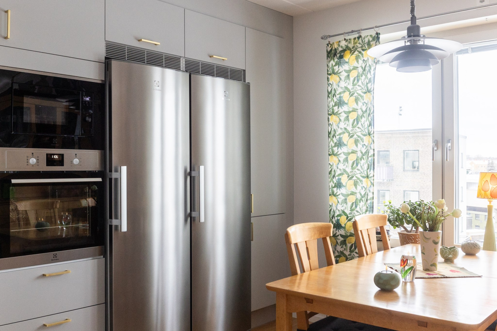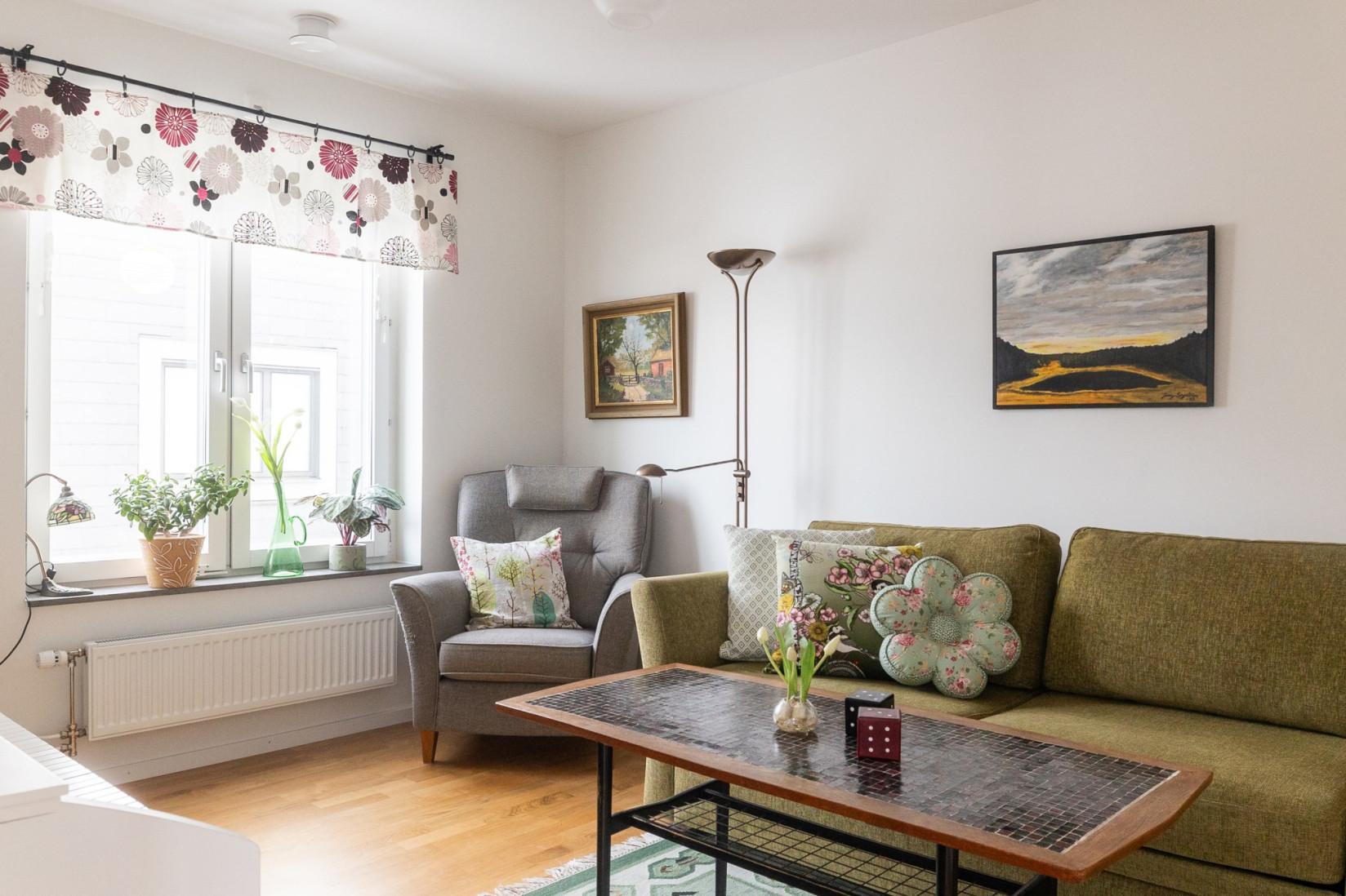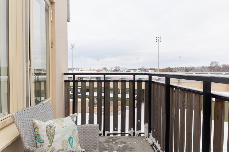 Från hallen öppnar bostaden upp sig mot kök och vardagsrum i en öppen planlösning som bjuder in till umgänge. Här breder ett luftigt och flexibelt sällskapsrum ut sig med utsikt över Fredriksskans och Lindöfjärden. Det är lätt att se både middagar med vänner och lugna kvällar i soffan ta form här. Från vardagsrummet nås den generösa balkongen, en plats som förlänger rummet och förstärker känslan av rymd och frihet.