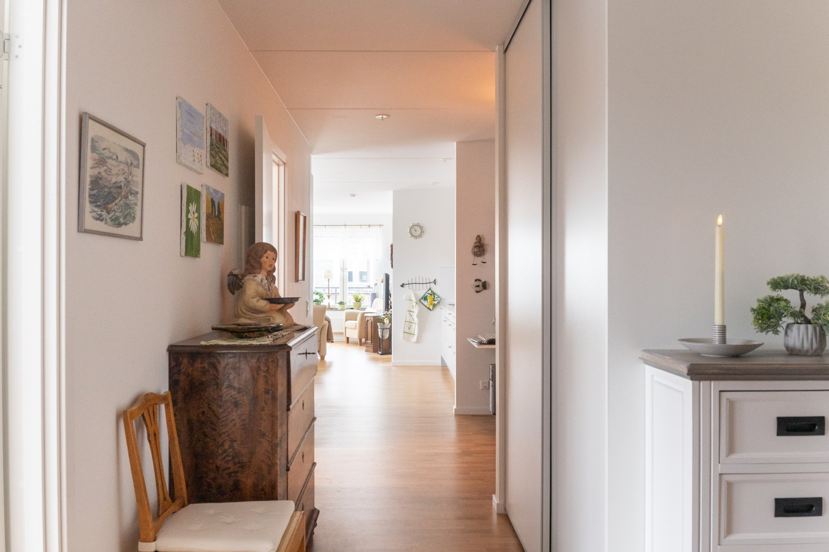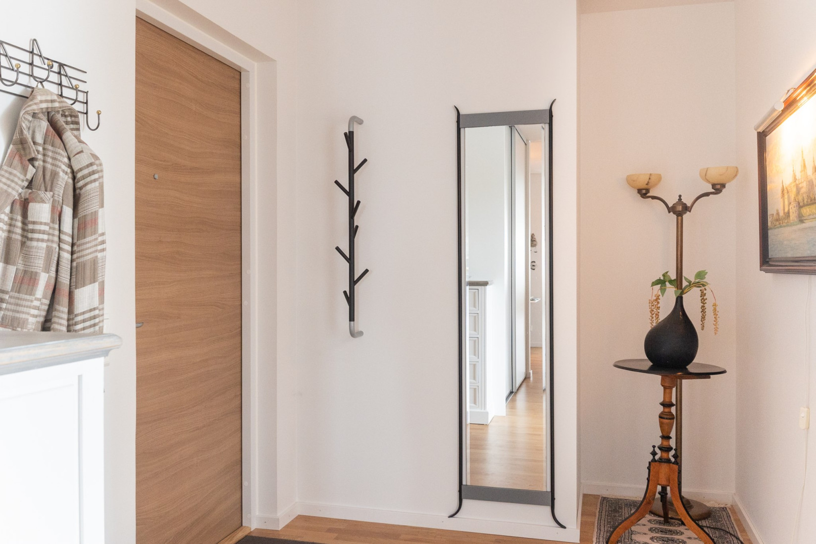 Välkommen hem till Fredriksskanstorget 6. Ta hissen eller trapporna upp till fjärde våningen och kliv in i en bostad som känns genomtänkt från första steget. Hallen möter dig med ljusa ytor, enhetligt golv och en skön rymd som direkt ger ett lugnt intryck. Bakom skjutdörrar döljs generös förvaring, och hallens storlek gör det enkelt att möblera med både byrå och en liten arbetshörna för den som önskar.