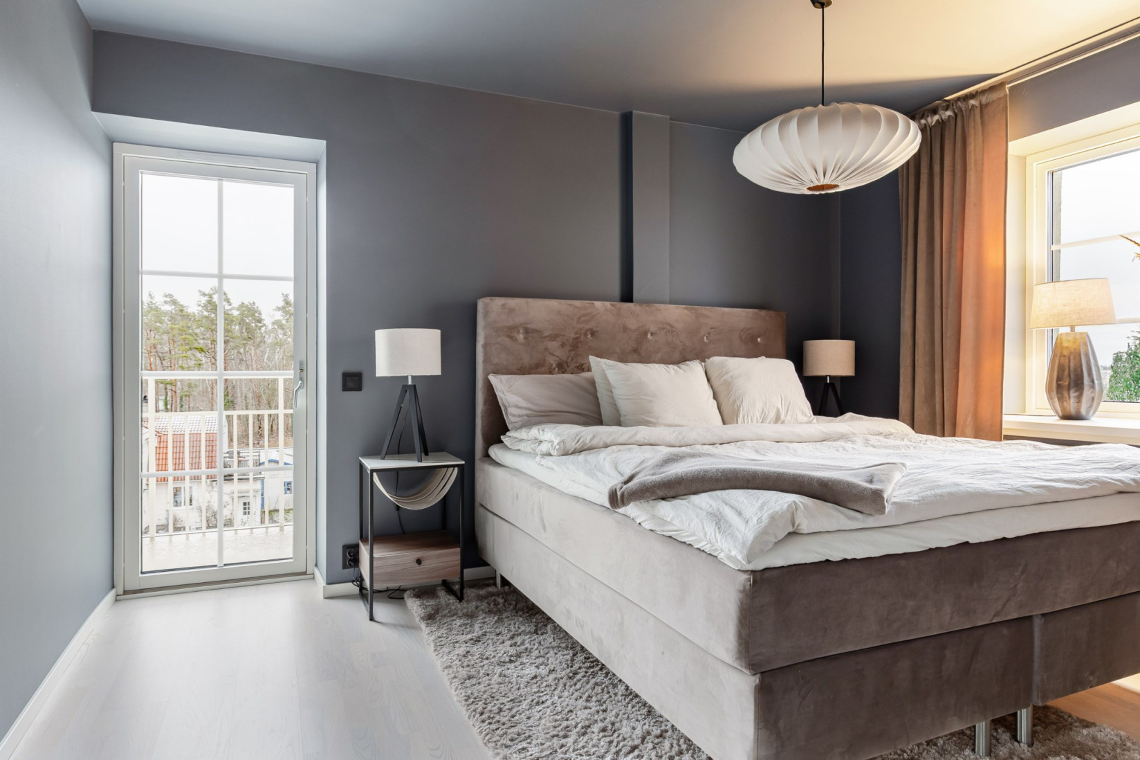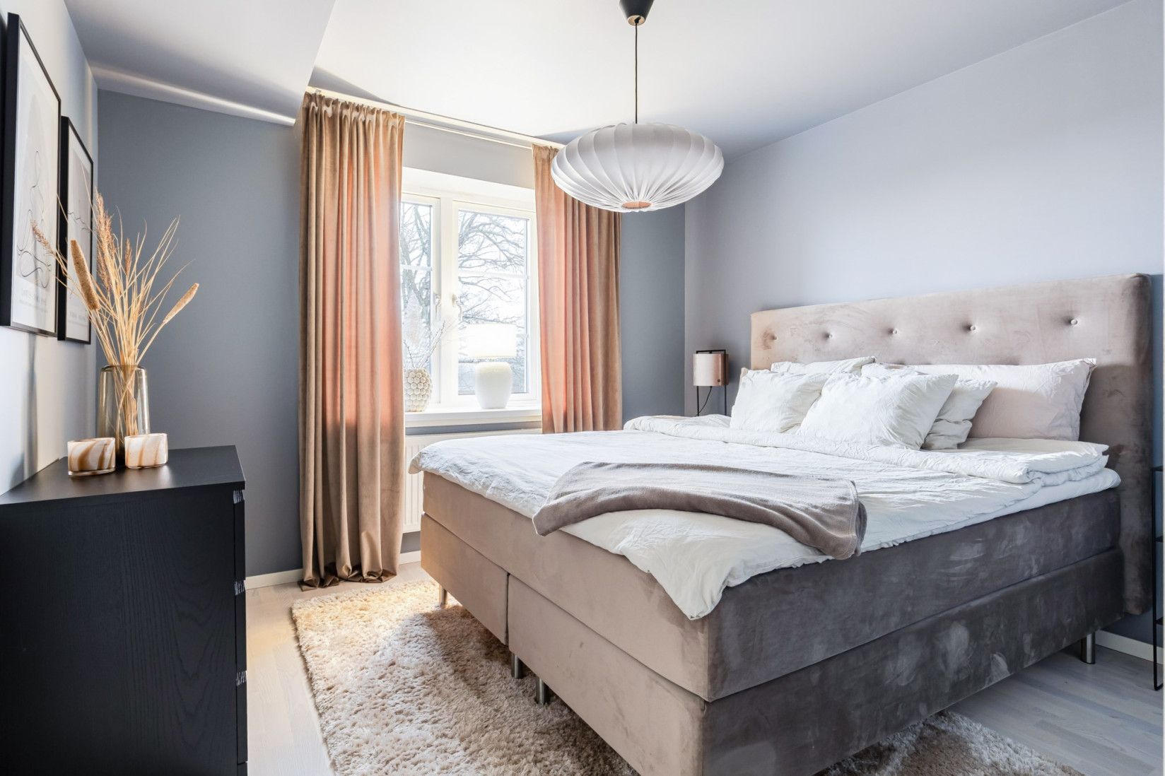 Hemmets båda sovrum är i bra storlek och har utrymme för stora bäddar. I det största sovrummet finns dessutom en anslutande klädkammare och balkongen som säljarna haft stor glädje utav.