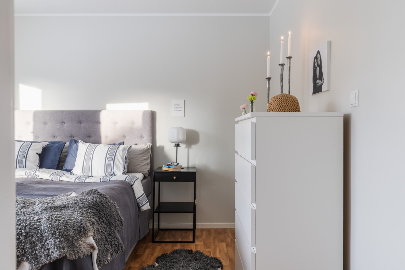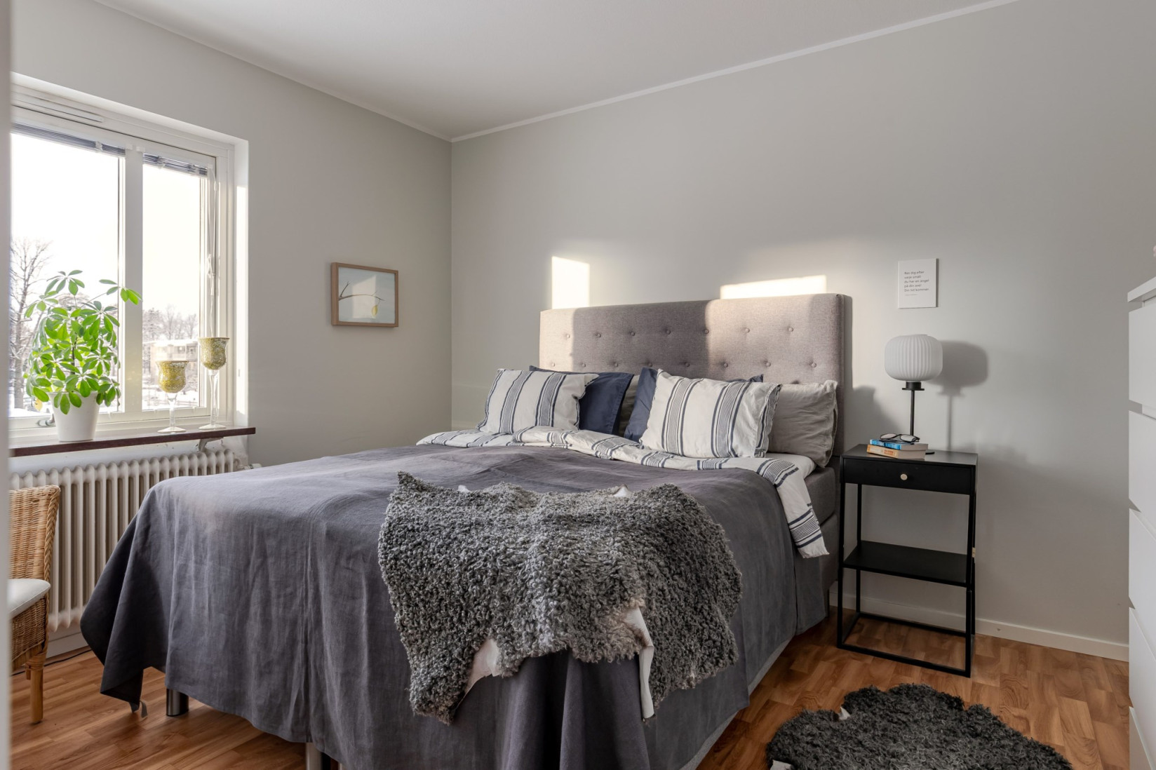 Bostaden erbjuder tre rymliga sovrum. Ett nås från köket med utgång till balkongen, ett från hallen och ett från vardagsrummet. Mellan sovrummen löper en passage med praktiska garderober som ger goda förvaringsmöjligheter. Samtliga sovrum är väl tilltagna och ger goda förutsättningar för flexibel användning.