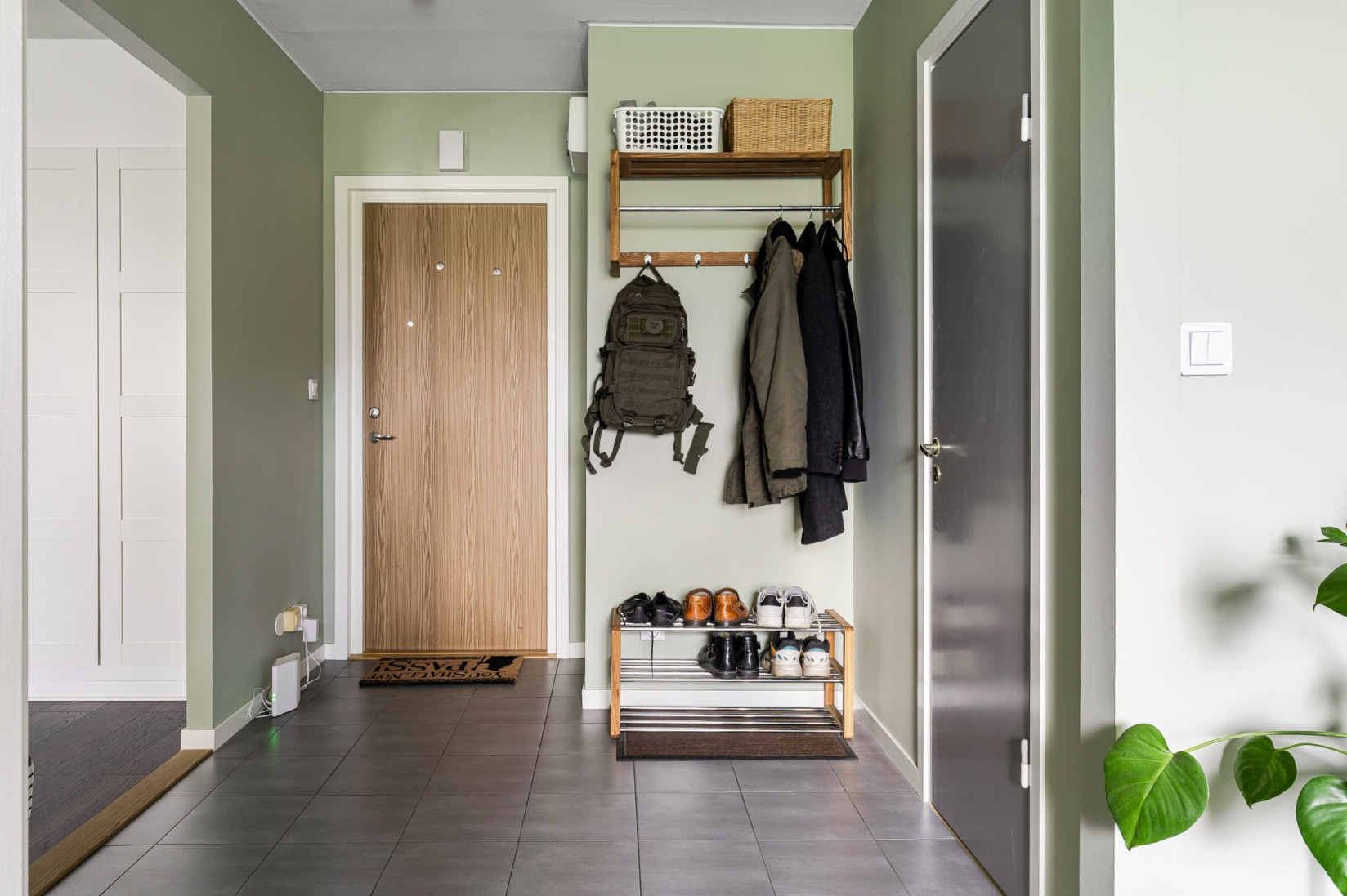 Välkommen in till denna välplanerade etta i Brf Rimsmeden! Hallen är rymlig och erbjuder avhägningsmöjligheter till höger om entrén. Gott om förvaring finns att tillgå i garderober.