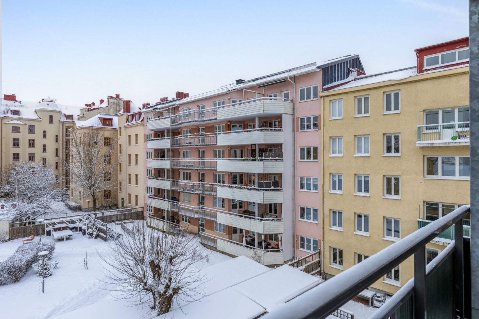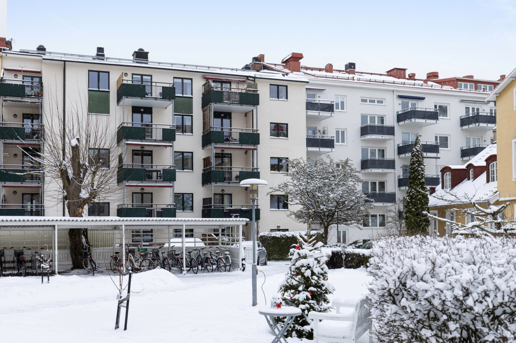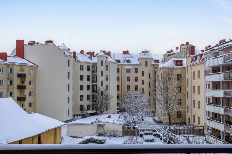 Den soliga balkongen i sydväst är väl värd att lyfta fram. Här njuter du av både eftermiddags- och kvällssol, med utsikt över grönska och omkringliggande vacker bebyggelse. Badrummet är helkaklat och utrustat med kombinerad tvätt/tork.