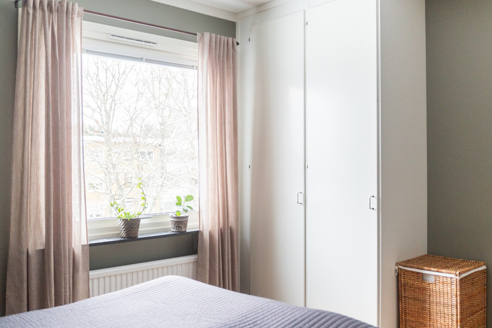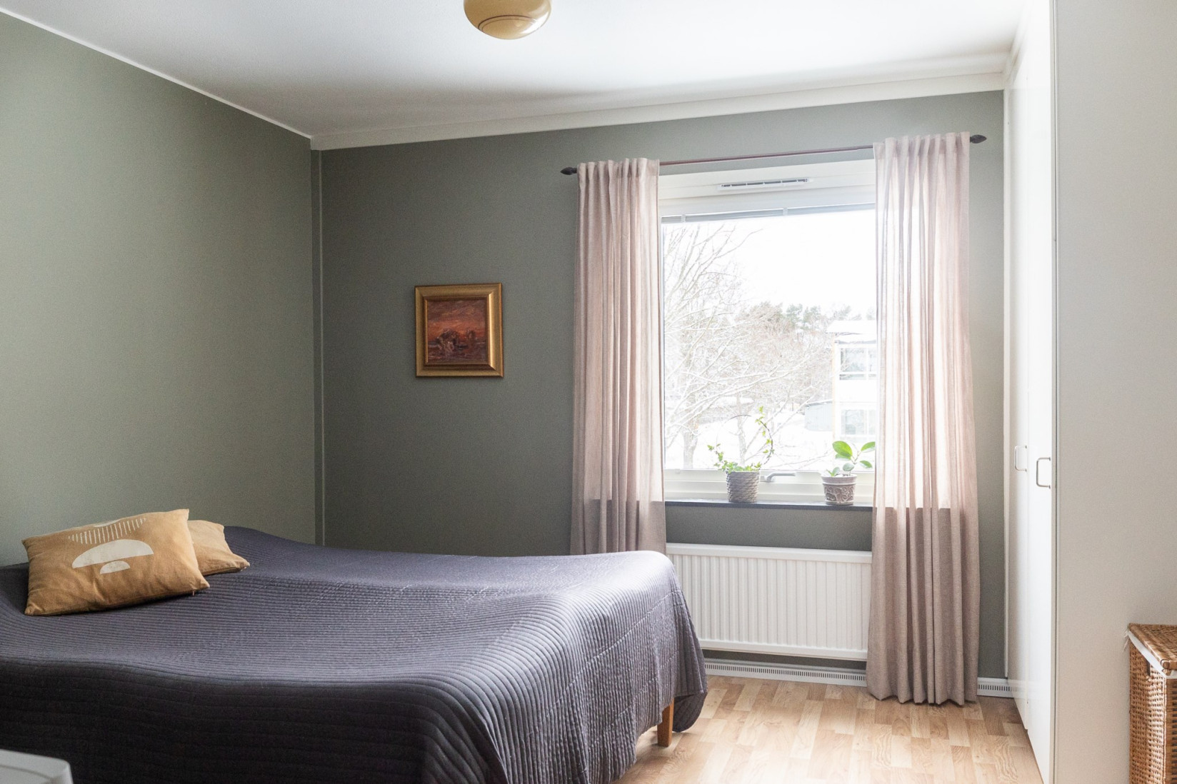 Sovrummet nås från vardagsrummet och erbjuder gott om utrymme för både säng och kompletterande möbler. Förvaringen är väl tillgodosedd med flera garderober, och rummet ger även möjlighet till exempelvis en arbetsplats eller ytterligare förvaring.