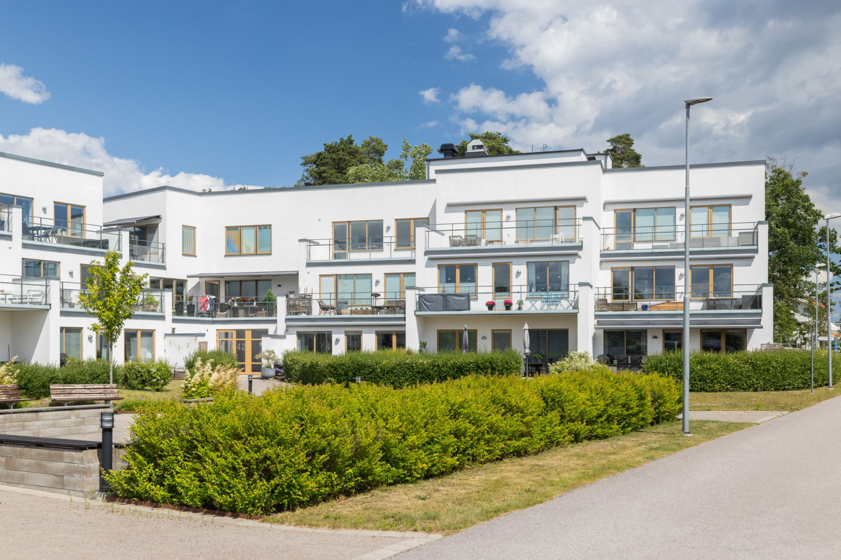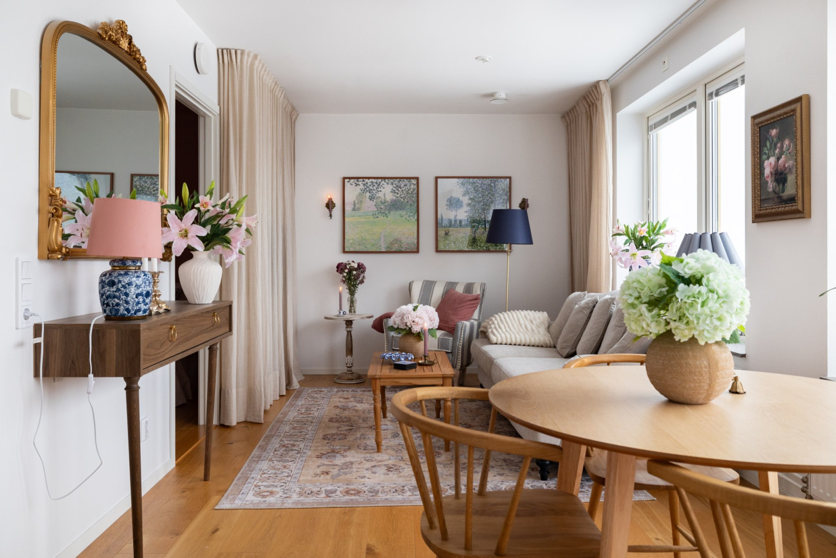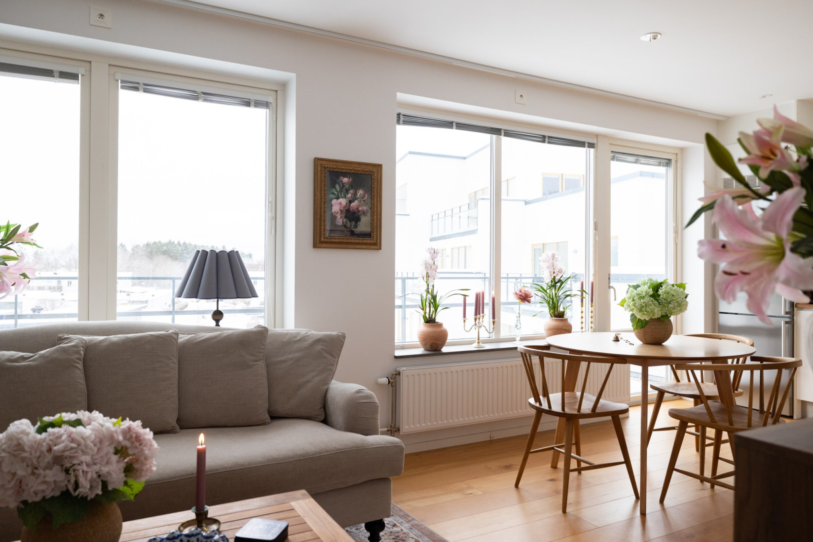 I vardagsrummet strömmar ljuset in genom flera fönster och härifrån når man lägenhetens underbara terrass. Rummet rymmer lätt middagsbord, tv och soffgrupp. Dessutom finns en förstärkt vägg för smidig upphängning av tv.