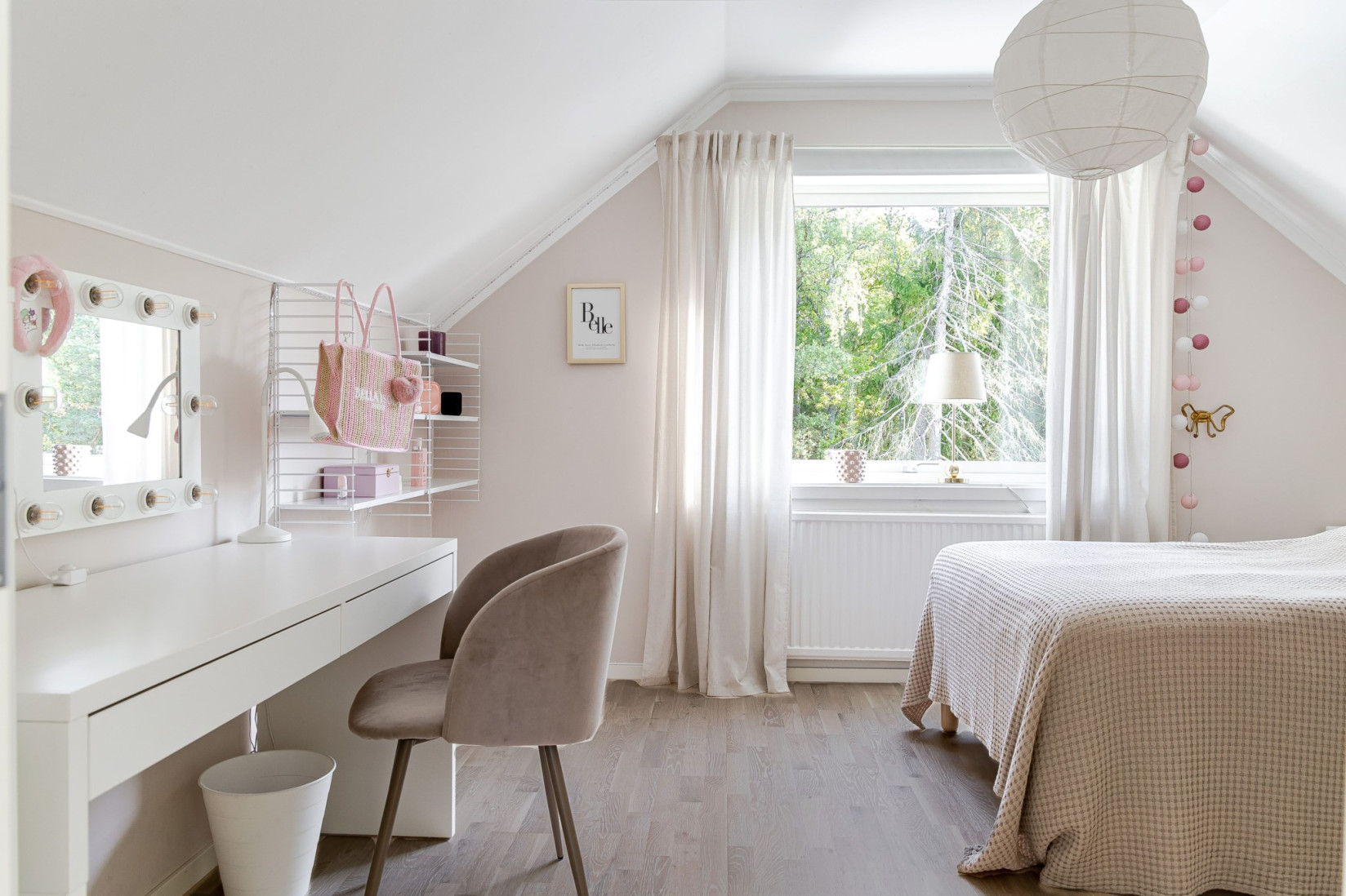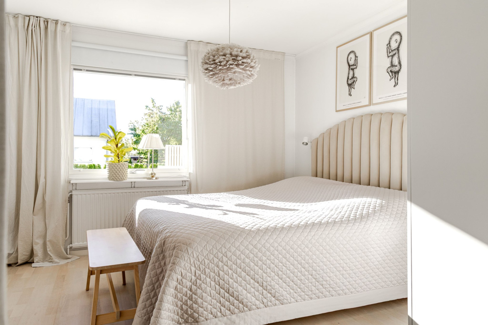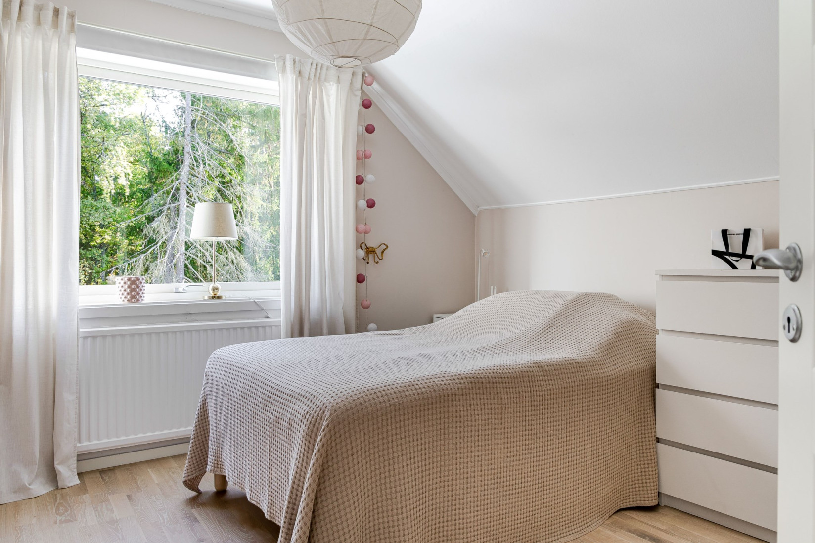 - SOVRUM med parkettgolv och garderobsförvaring.