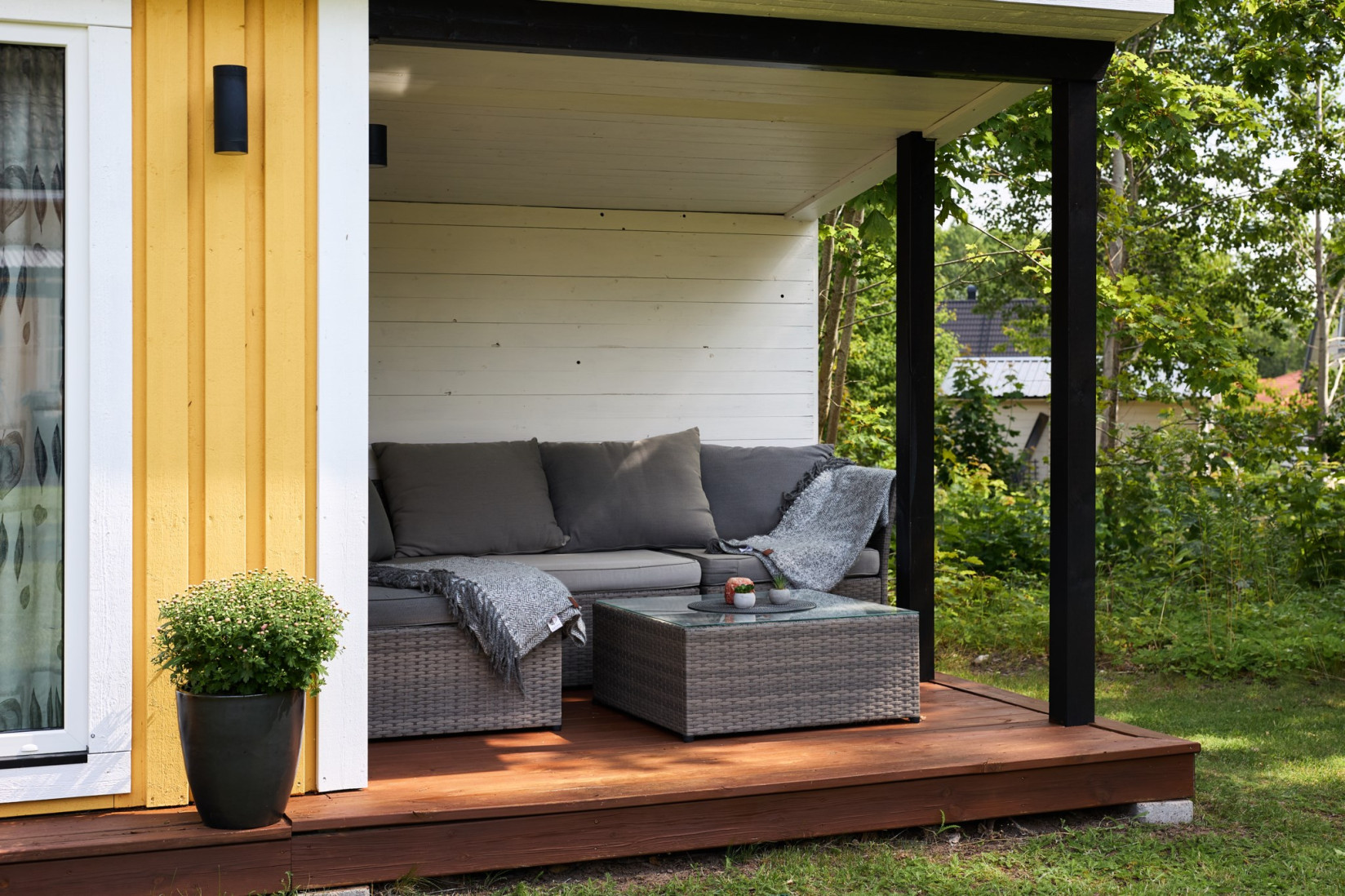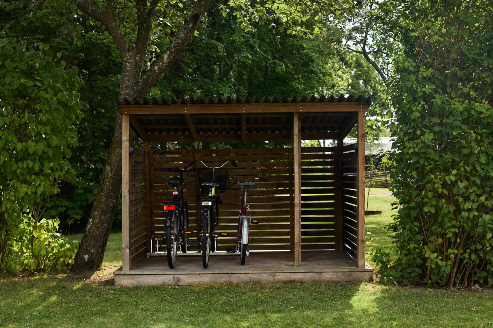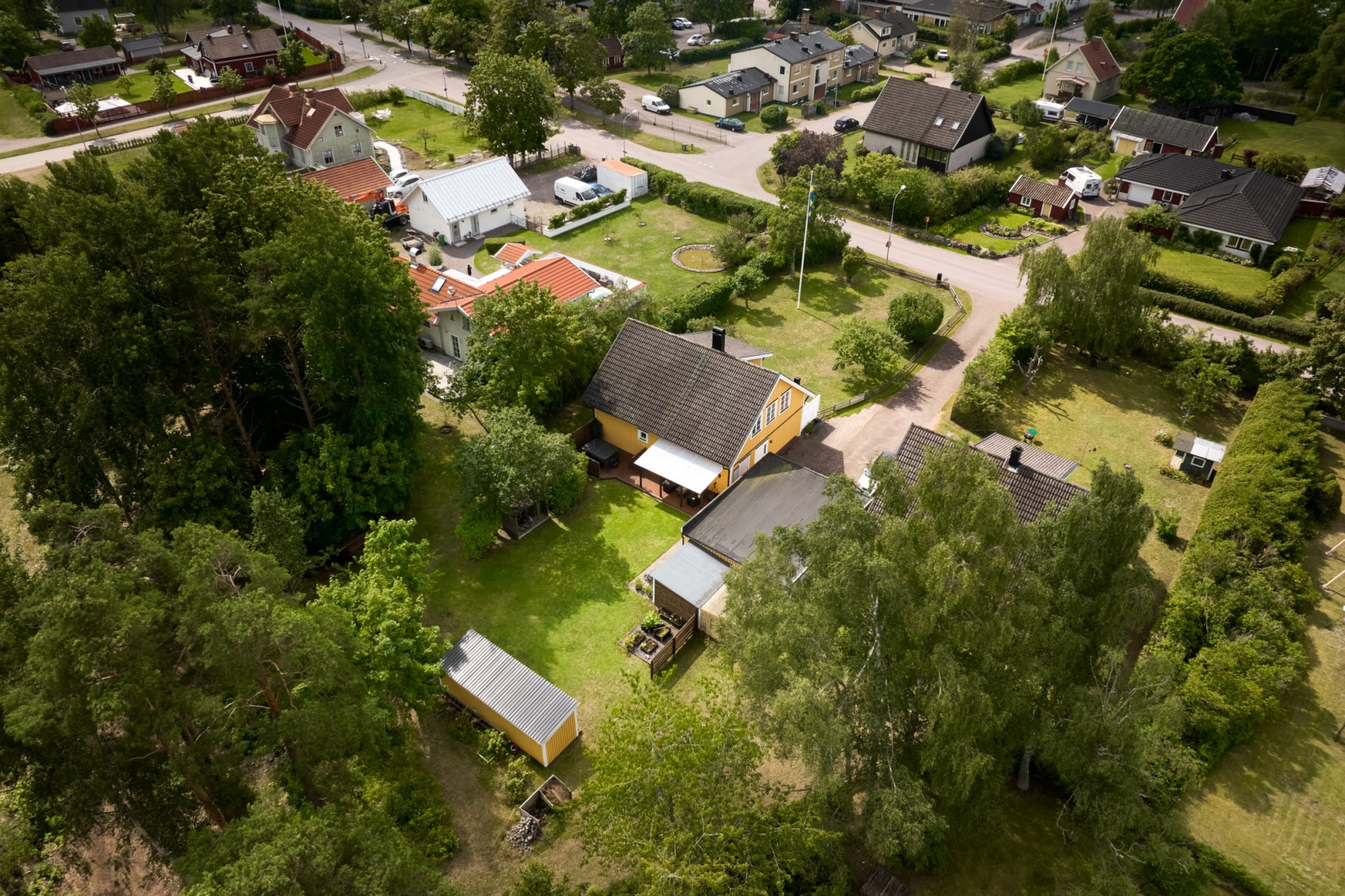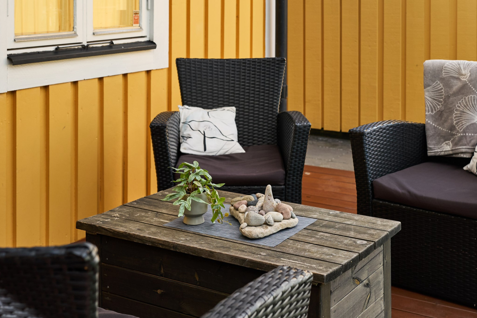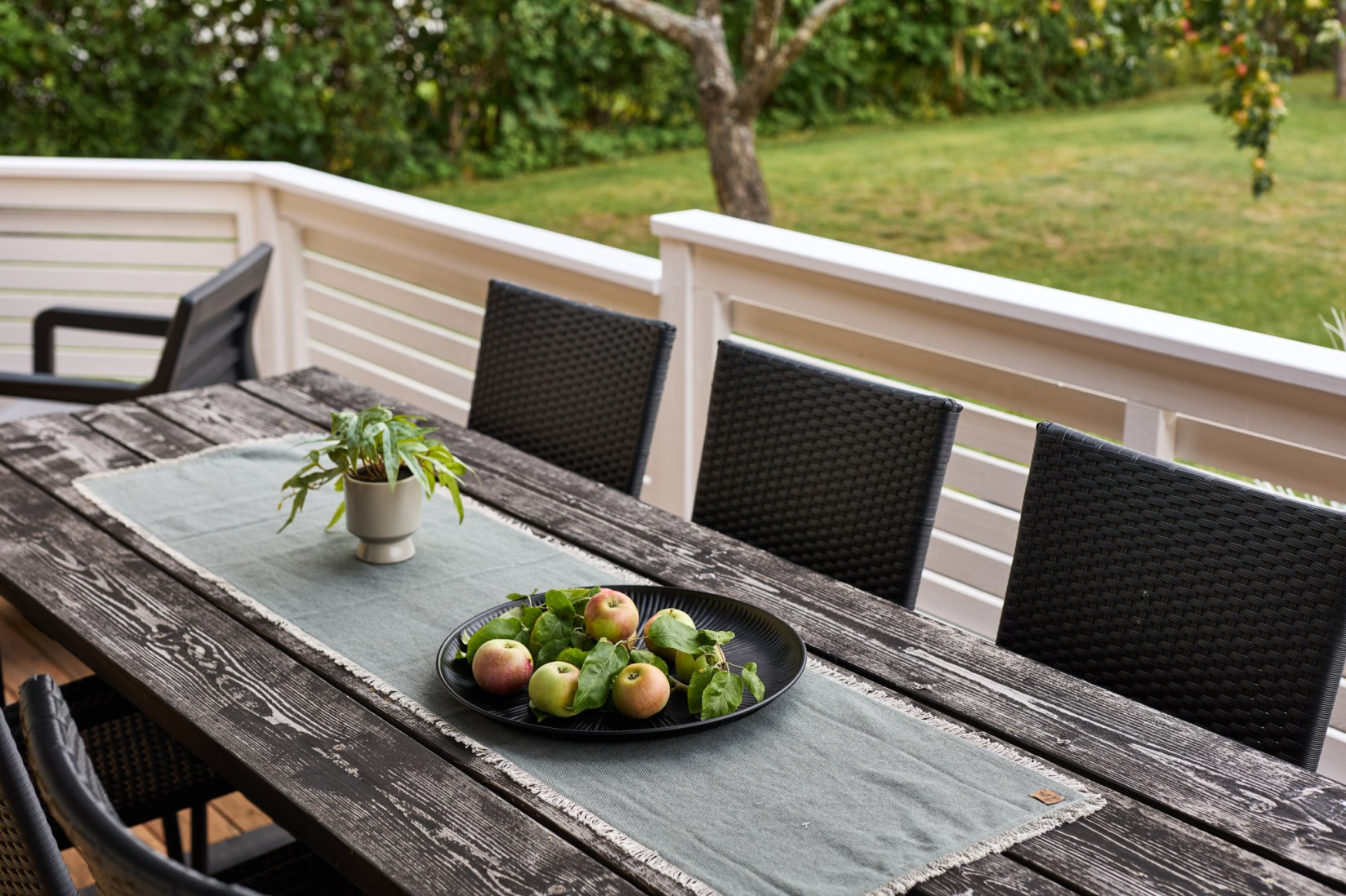 Och så baksidan, husets dolda skatt. Här öppnar sig en plats för både vila och lek: en altan med spabad för sensommarkvällar, ett charmigt gästhus med egen uteplats och en trädgård som tycks oändlig. Här kan barnen springa barfota i gräset, spela fotboll eller utmana varandra i kubb, medan kvällen långsamt sänker sig och syrsorna tar över ljudbilden.