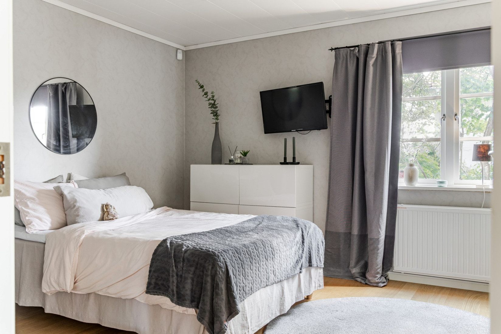 Intill väntar ett första sovrum, generöst med gott om förvaring – en stilla vrå för vila när dagen når sitt slut.