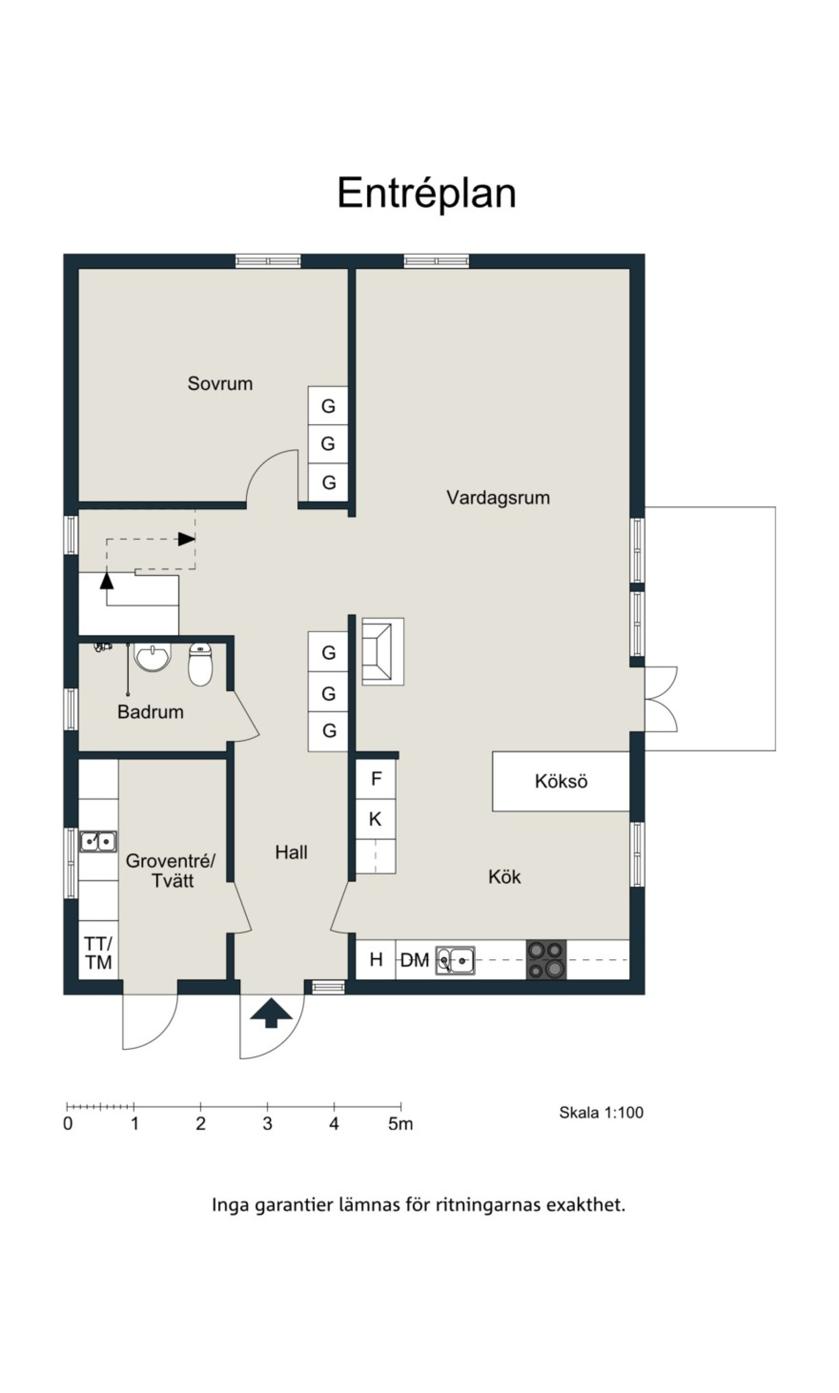 På entréplanet finns också ett nyrenoverat badrum, fräscht och funktionellt, samt en tvättstuga med groventré, där vardagens sysslor får sin naturliga plats.