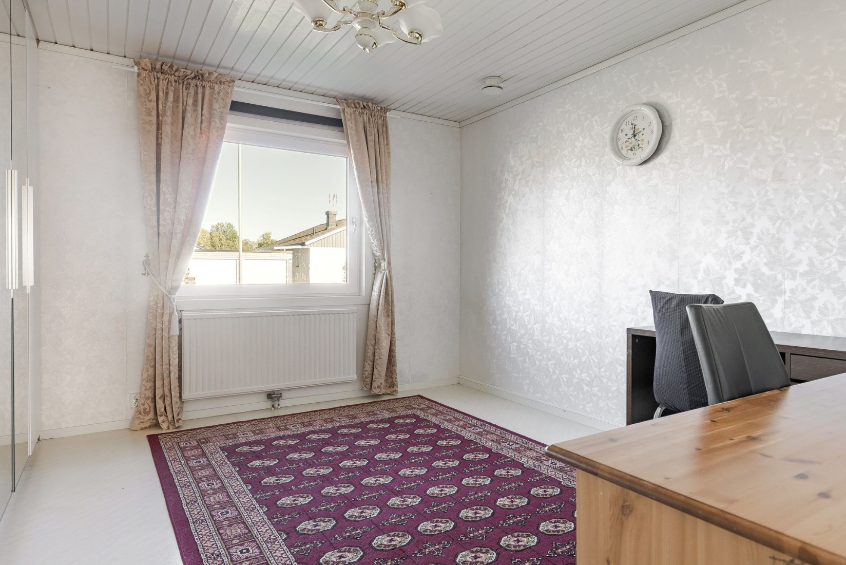 Det andra sovrummet har ljusa tapeter och plastmatta. Ett lugnt och trivsamt rum som passar perfekt för både vuxna och barn.