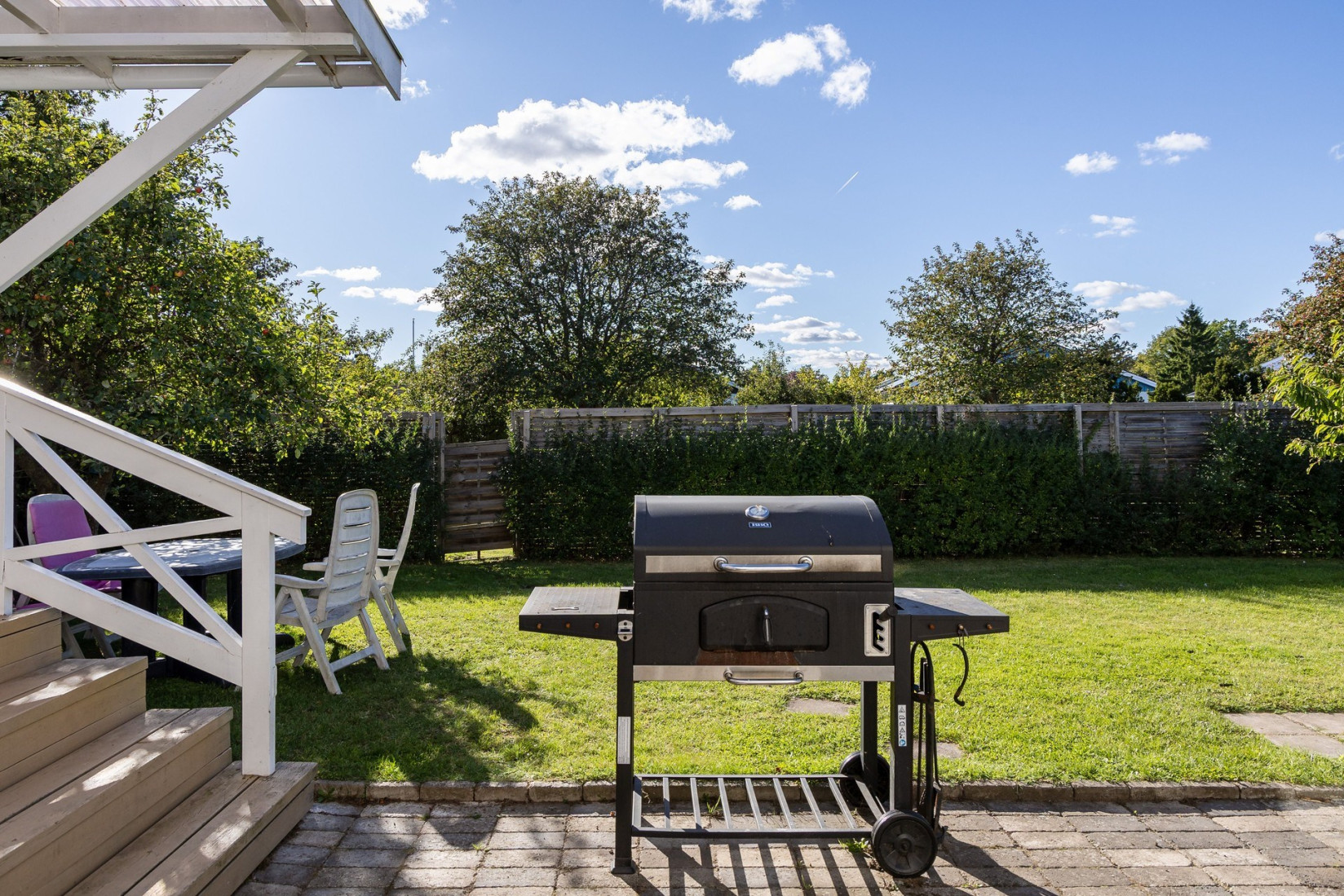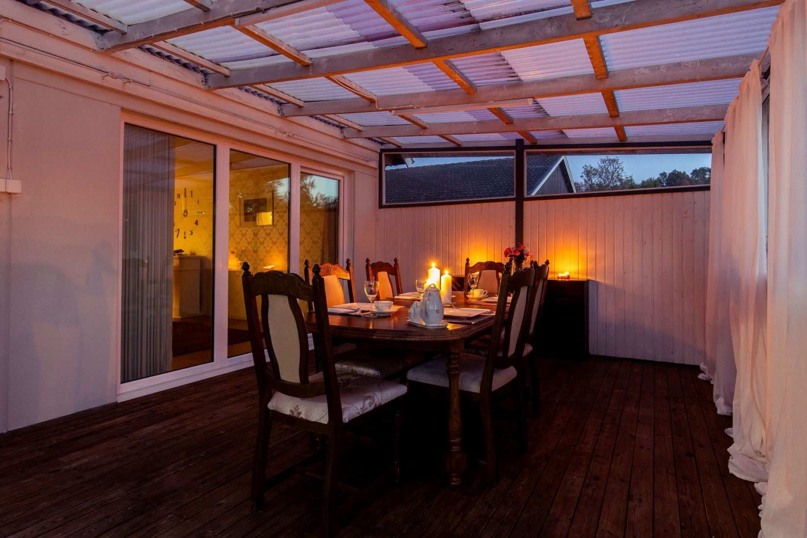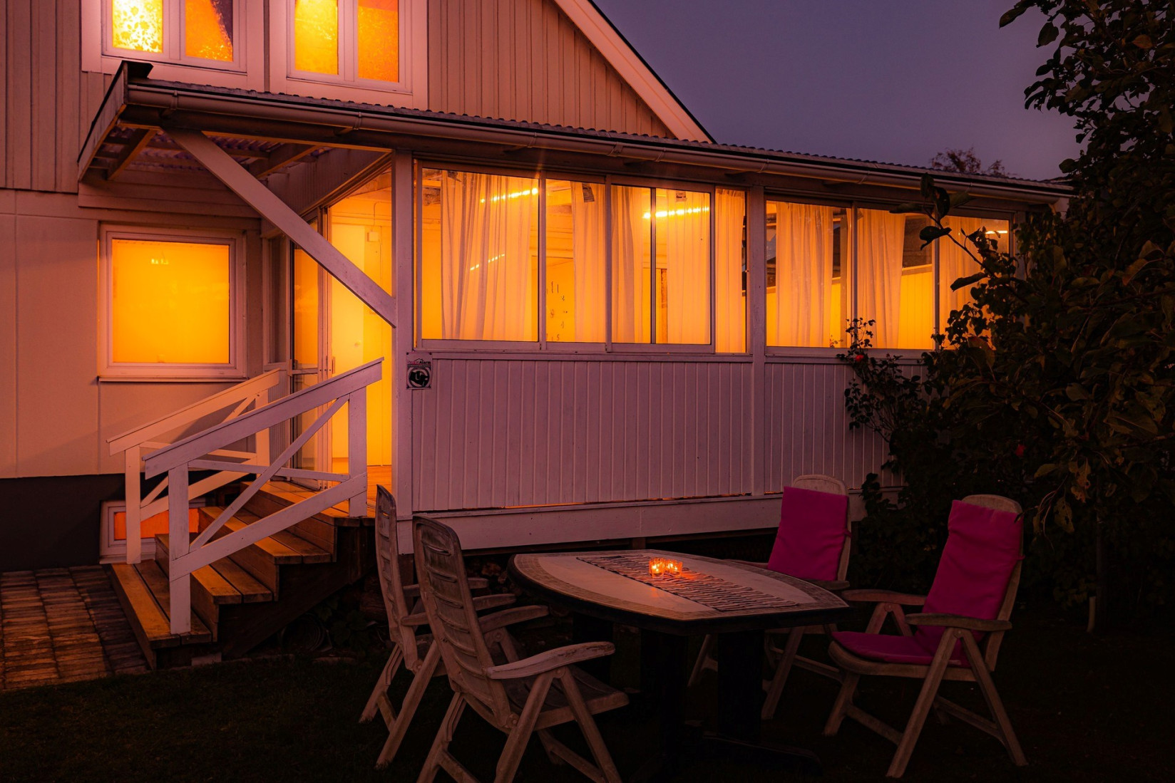 Den inglasade altanen har skjutpartier både som glaspartier och dörrpartier. Här kan du njuta av eftermiddagssolen och en härlig utsikt, oavsett väder. En perfekt plats för både lugna stunder och sociala sammankomster.
