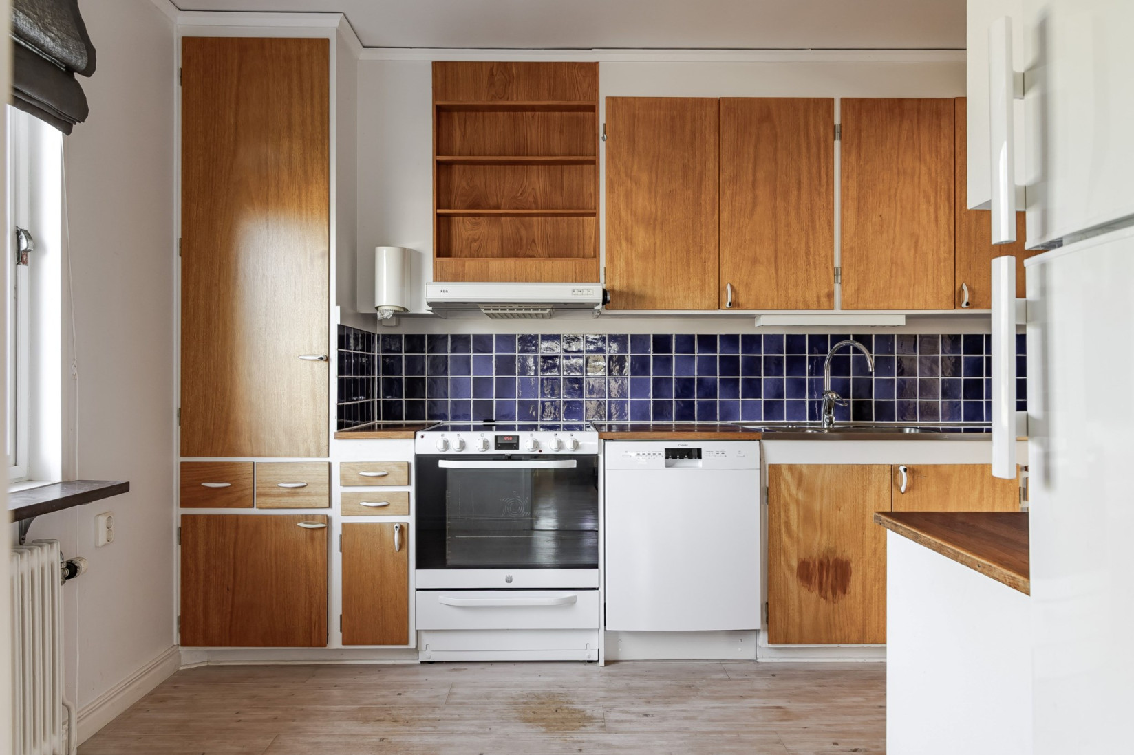 - Äldre KÖK med parkettgolv, gott om skåpsförvaring samt en maskinell utrustning bestående av kyl/frys, spis, köksfläkt samt diskmaskin.