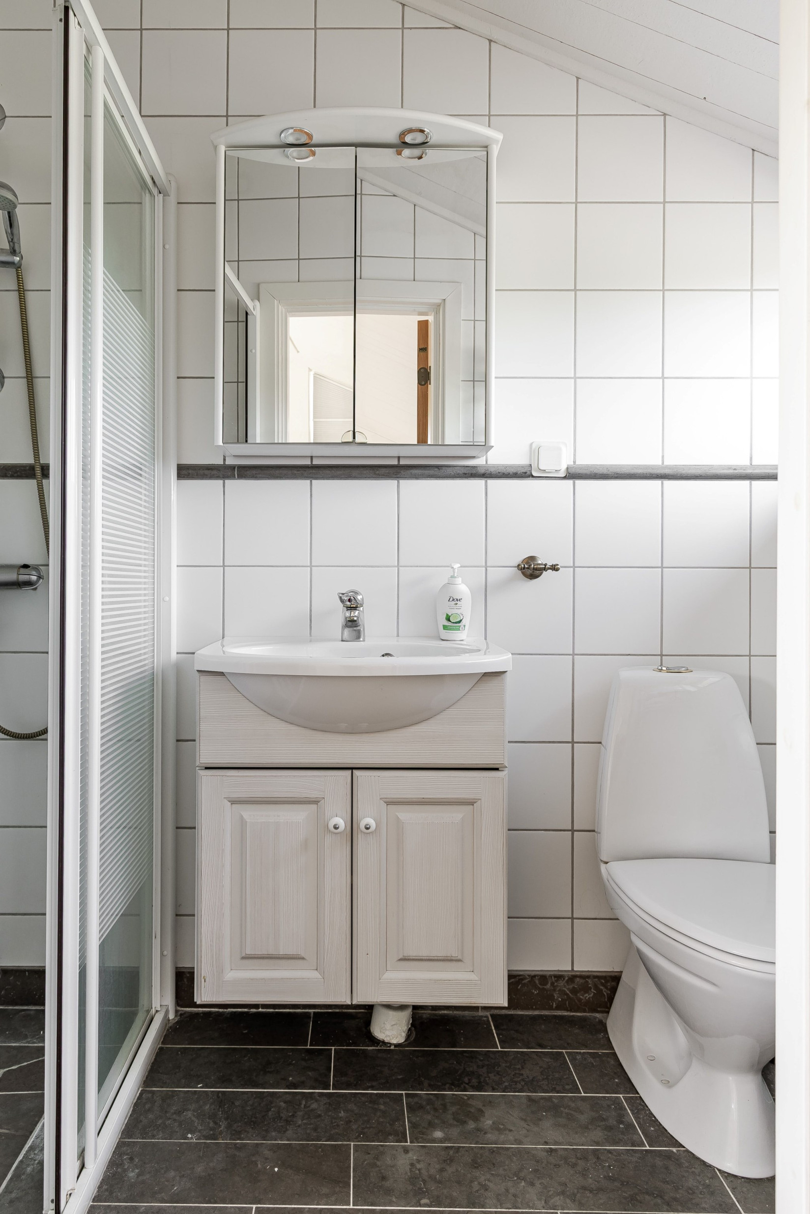 - Fräscht DUSCHRUM med klinkergolv, kaklade väggar, WC, handfat samt duschhörna.
