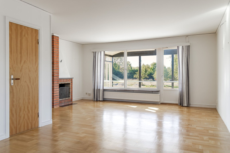 - Luftigt och ljust VARDAGSRUM, i vinkel, med parkettgolv, öppen spis samt utgång till inglasat uterum.