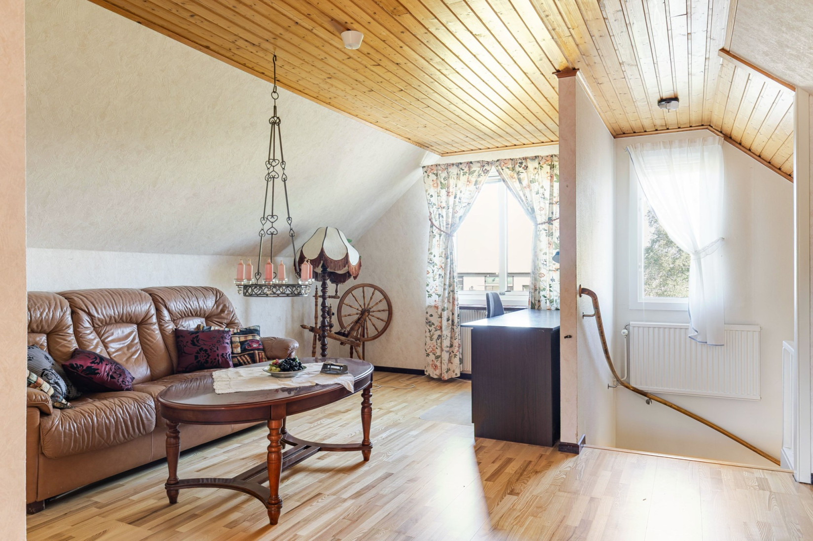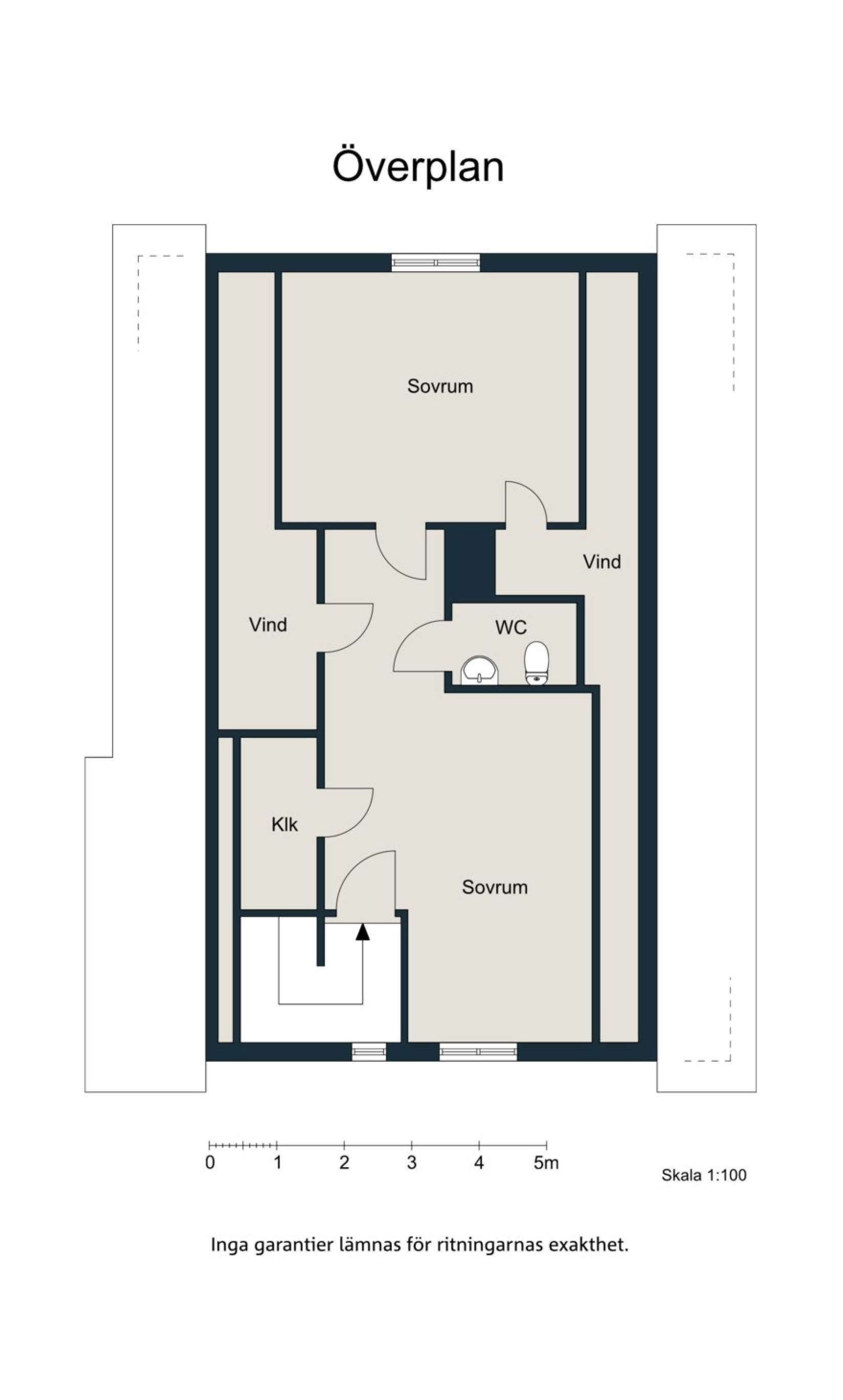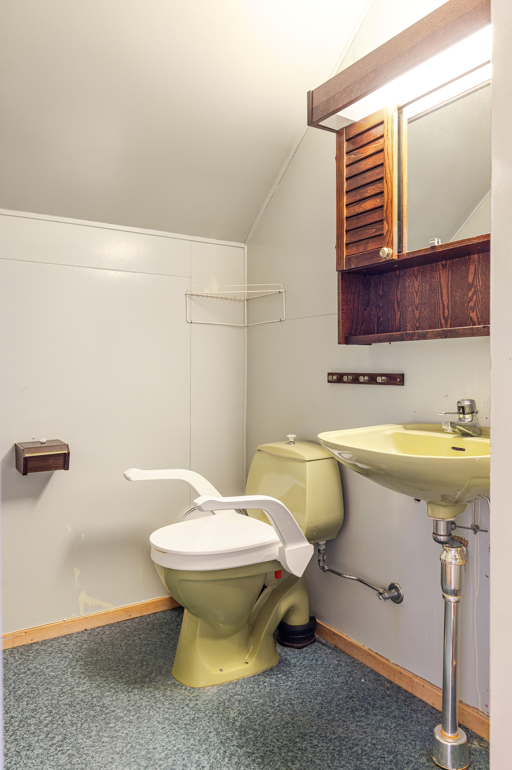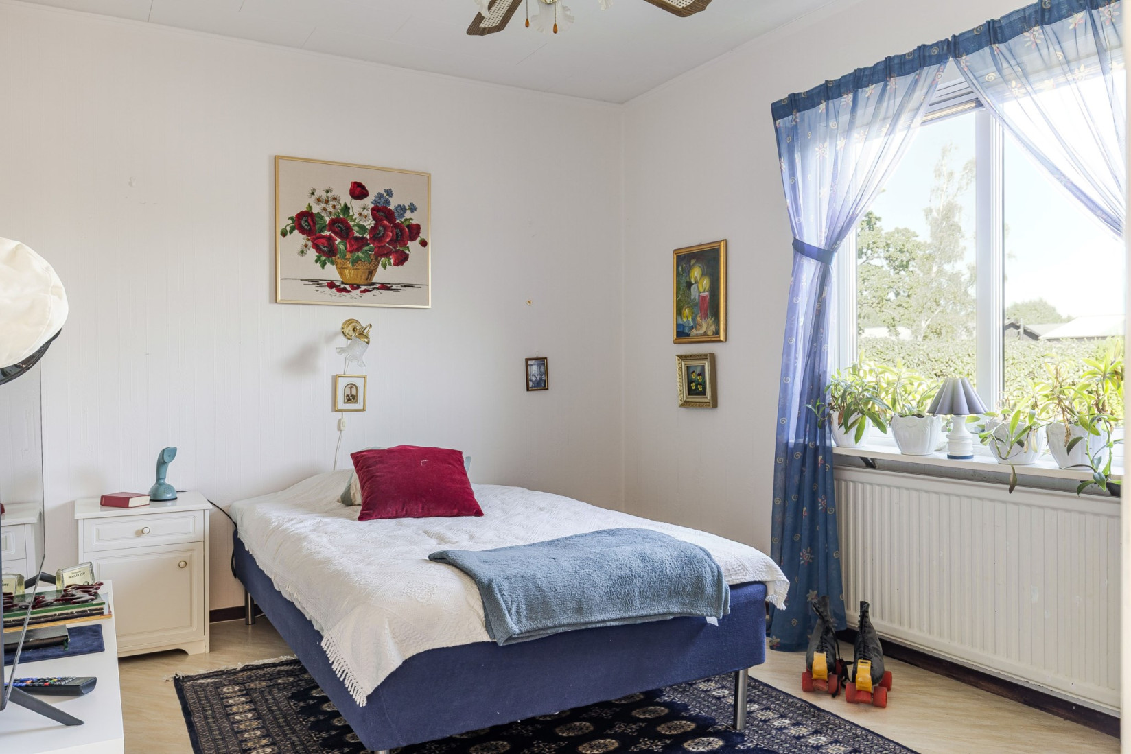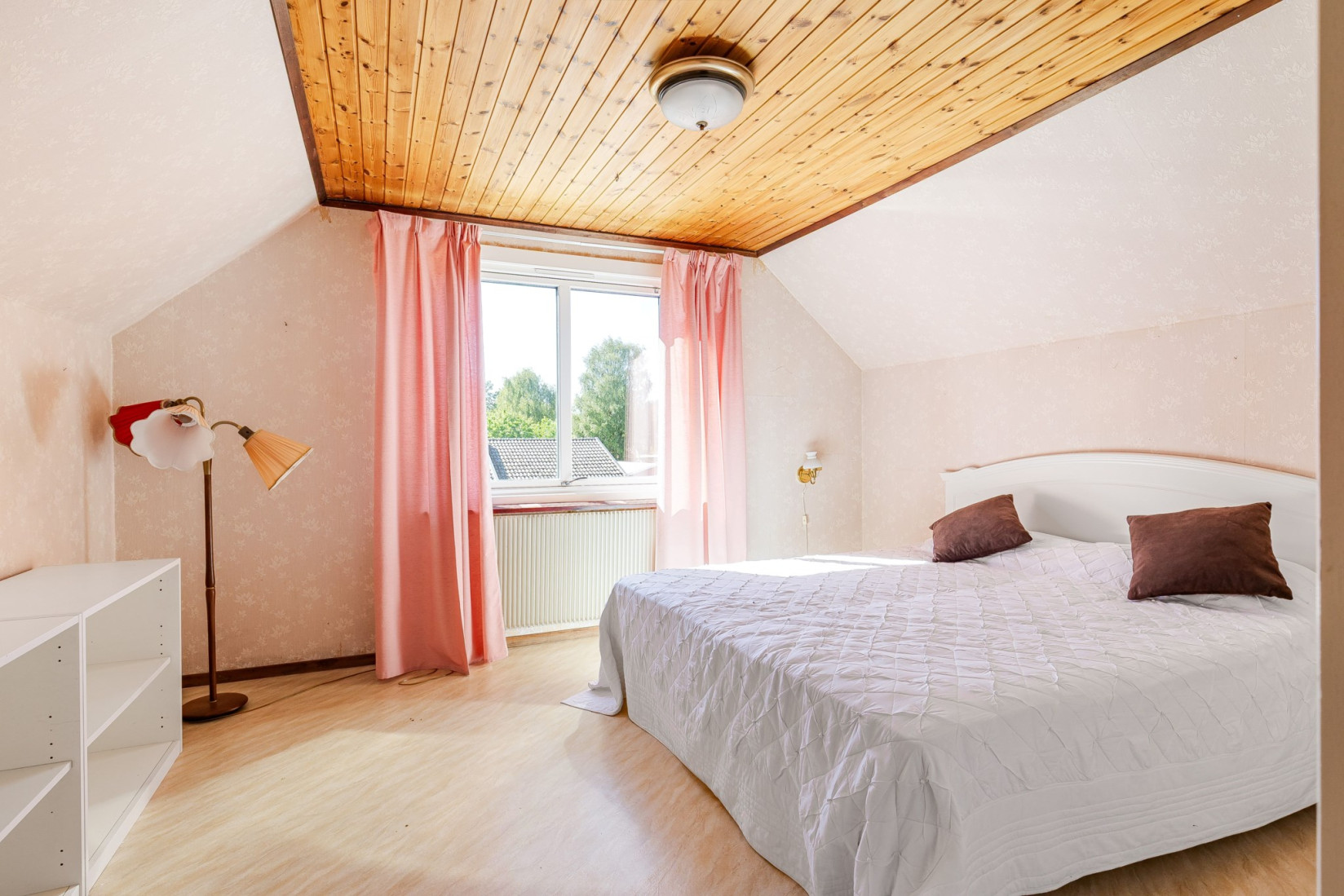 Här finns dessutom ett generöst sovrum med gott om plats för dubbelsäng, sängbord och andra möbler. På våningsplanet finns också en praktisk toalett som gör vardagen lite smidigare.