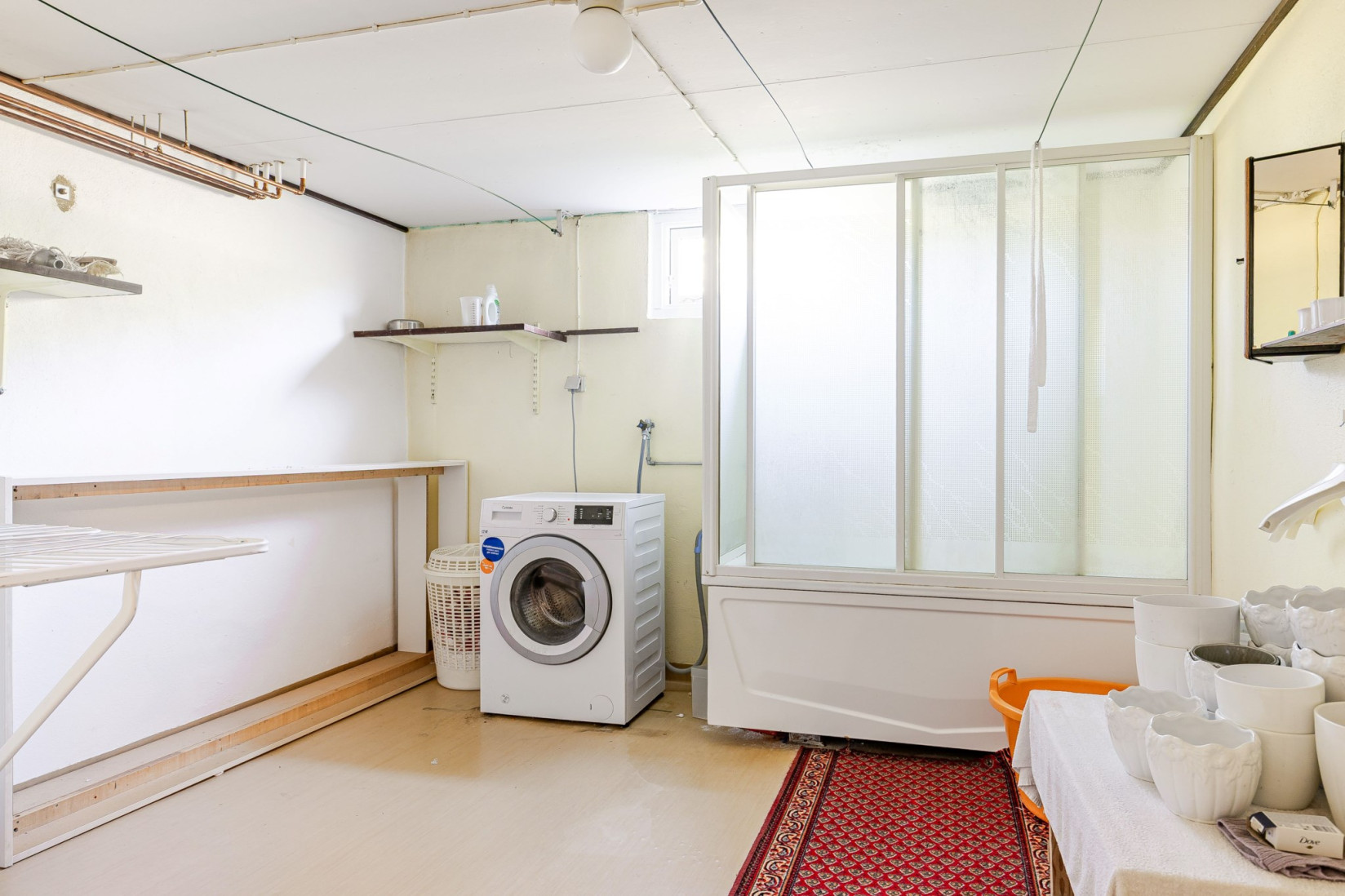 Källarplanet överraskar med både utrymme och funktion. Här finns en trivsam gillestuga som passar perfekt som tonårsrum, lekrum eller kanske en mysig hemmabio. Utöver det finns en praktisk tvättstuga, en extra toalett samt gott om förvaringsutrymmen som gör vardagen både enklare och mer organiserad.