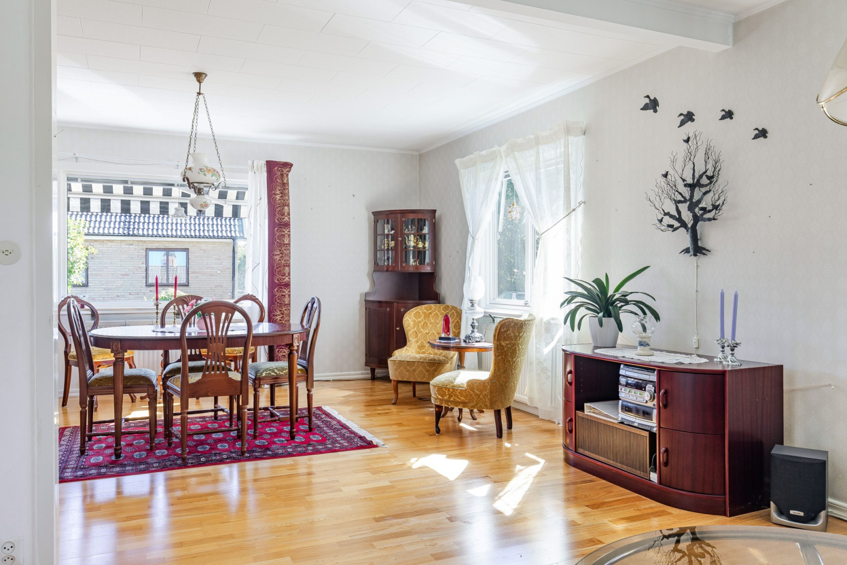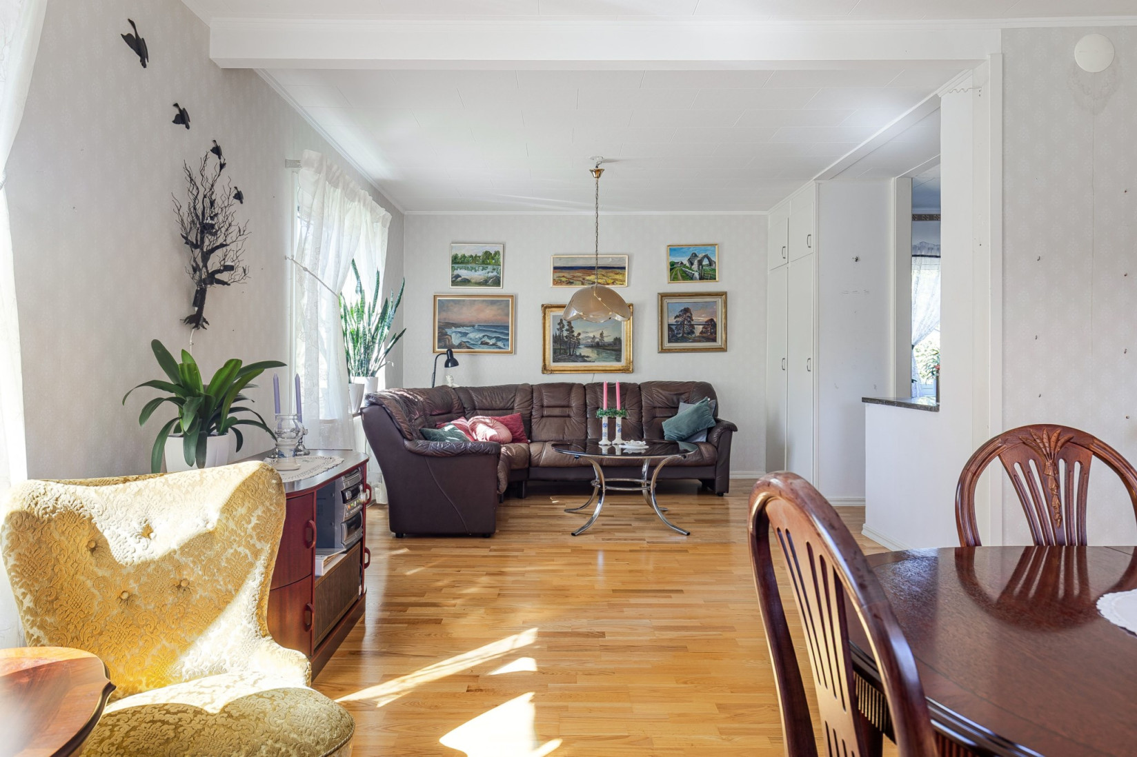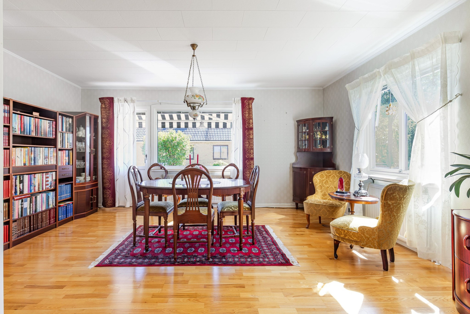 Sällskapsrummet är stort och ljust, med gott om plats för både soffgrupp, tv-möbel, ett rejält matbord och ytterligare möbler om du önskar. Härifrån når du dessutom uteplatsen, som blir en naturlig förlängning av vardagsrummet under sommarhalvåret.
