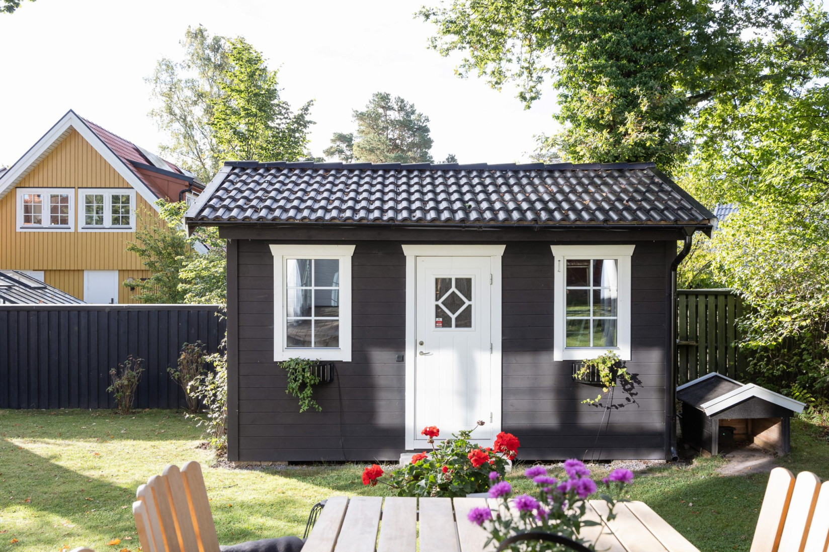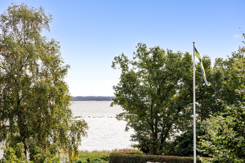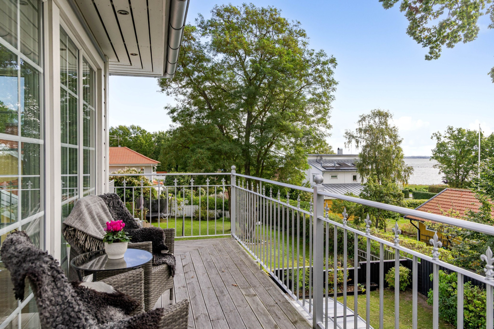 En mindre trappa leder till husets tornrum. Här omges man av fönster från golv till tak som öppnar blicken mot trädgården och havet. Från balkongen sträcker sig utsikten över Kalmarsund och vidare mot Ölandsbron. Morgonsolen sprider sitt sken över landskapet och platsen blir ett rum för stilla stunder med kaffekoppen i handen. Det kan också med lätthet bli platsen där man slår sig till ro med en bok eller för nära samtal tillsammans.