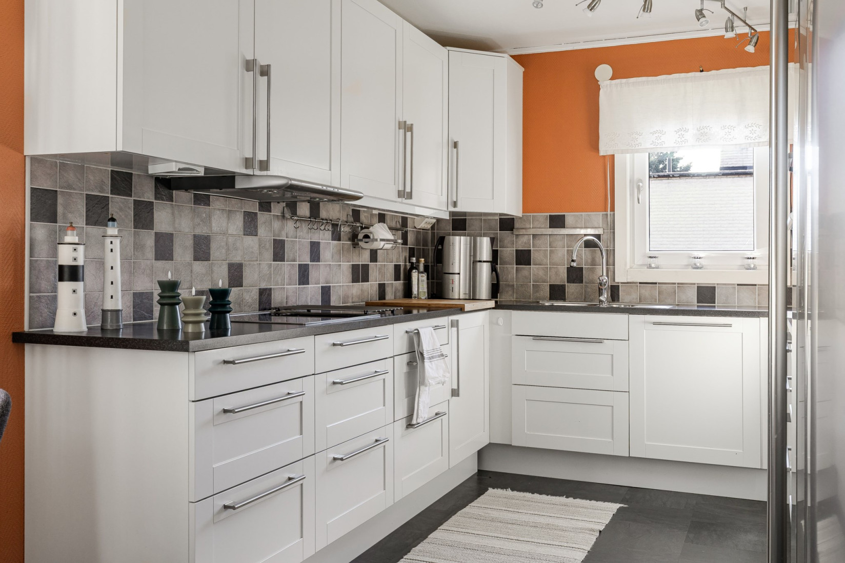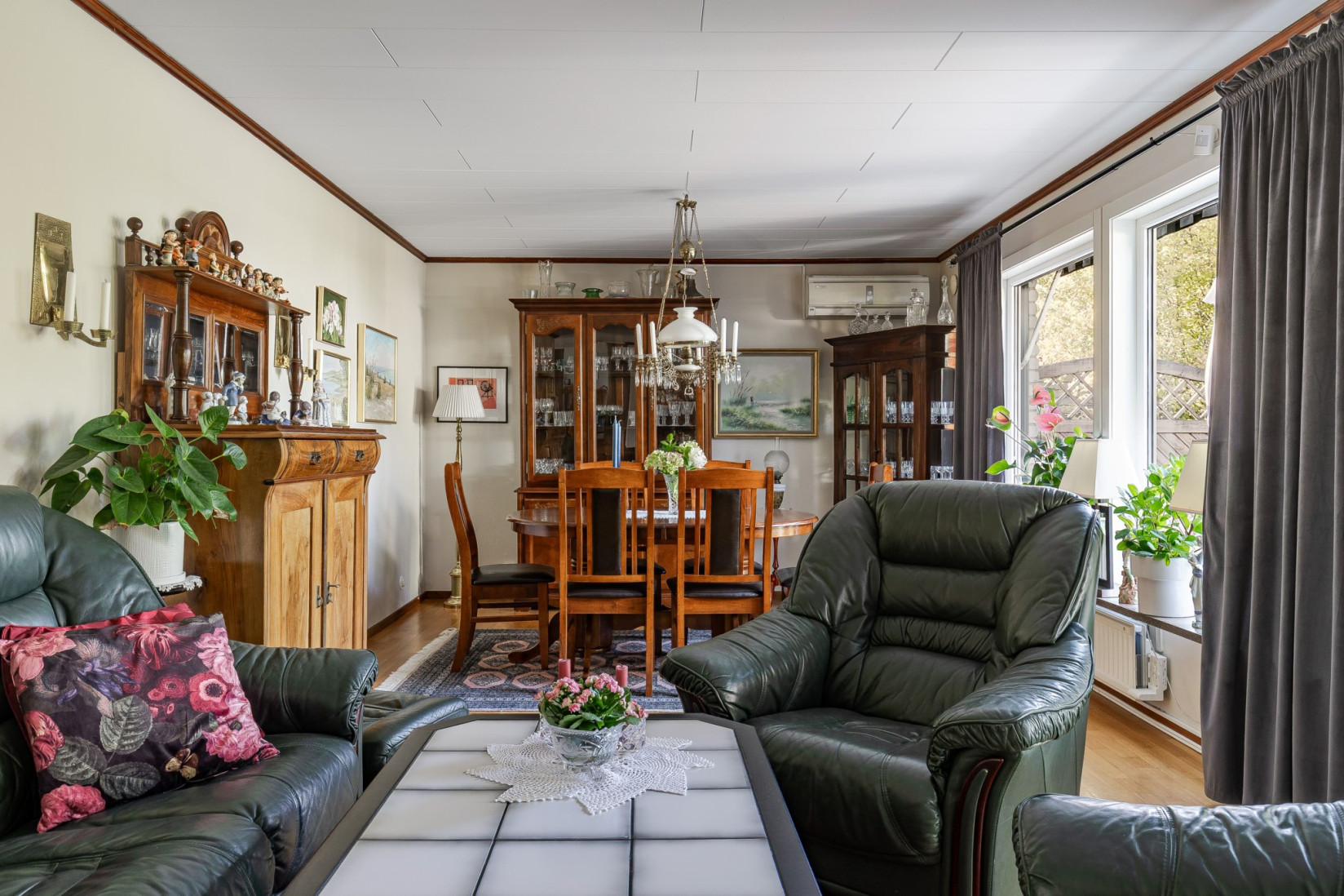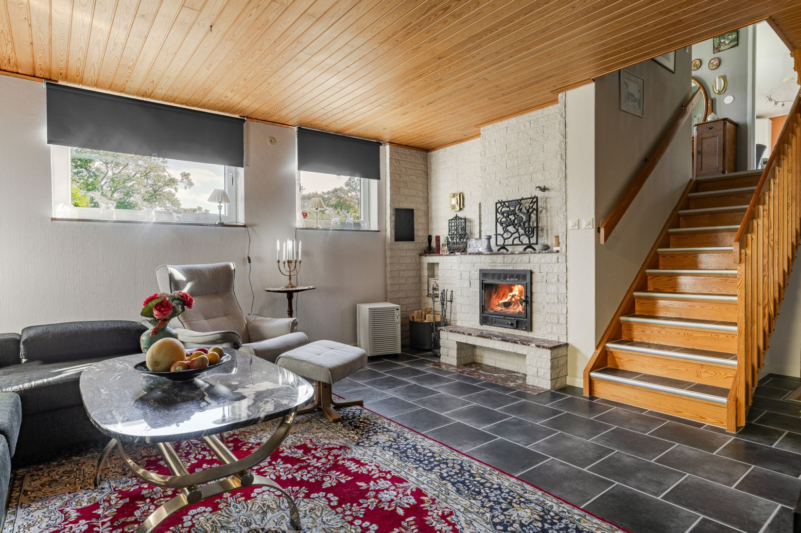 Man kliver in genom en välkomnande hall som direkt öppnar sig mot de sociala ytorna. Härifrån ser man hur huset vecklar ut sig. Köket med sin naturliga mittpunkt, vardagsrummet där ljuset ligger mjukt om eftermiddagen, och trappstegen som leder upp mot den mer privata delen.