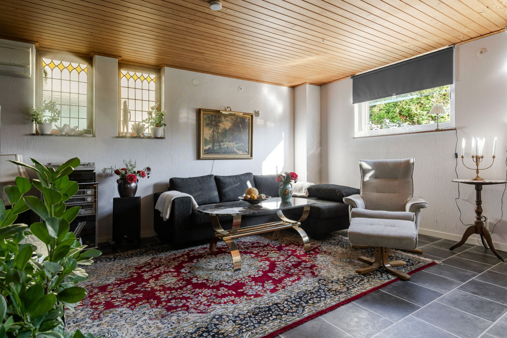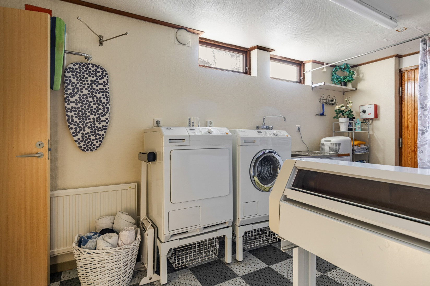 Neråt, i etagen mot källarplanet, förändras känslan. Här blir akustiken mjukare, luften svalare. Gillestugan bjuder in till filmkvällar, musik, och stillhet. Intill ligger hemmets praktiska ytor med tvättstuga, förråd och förvaring. Ytor som håller vardagen samman.