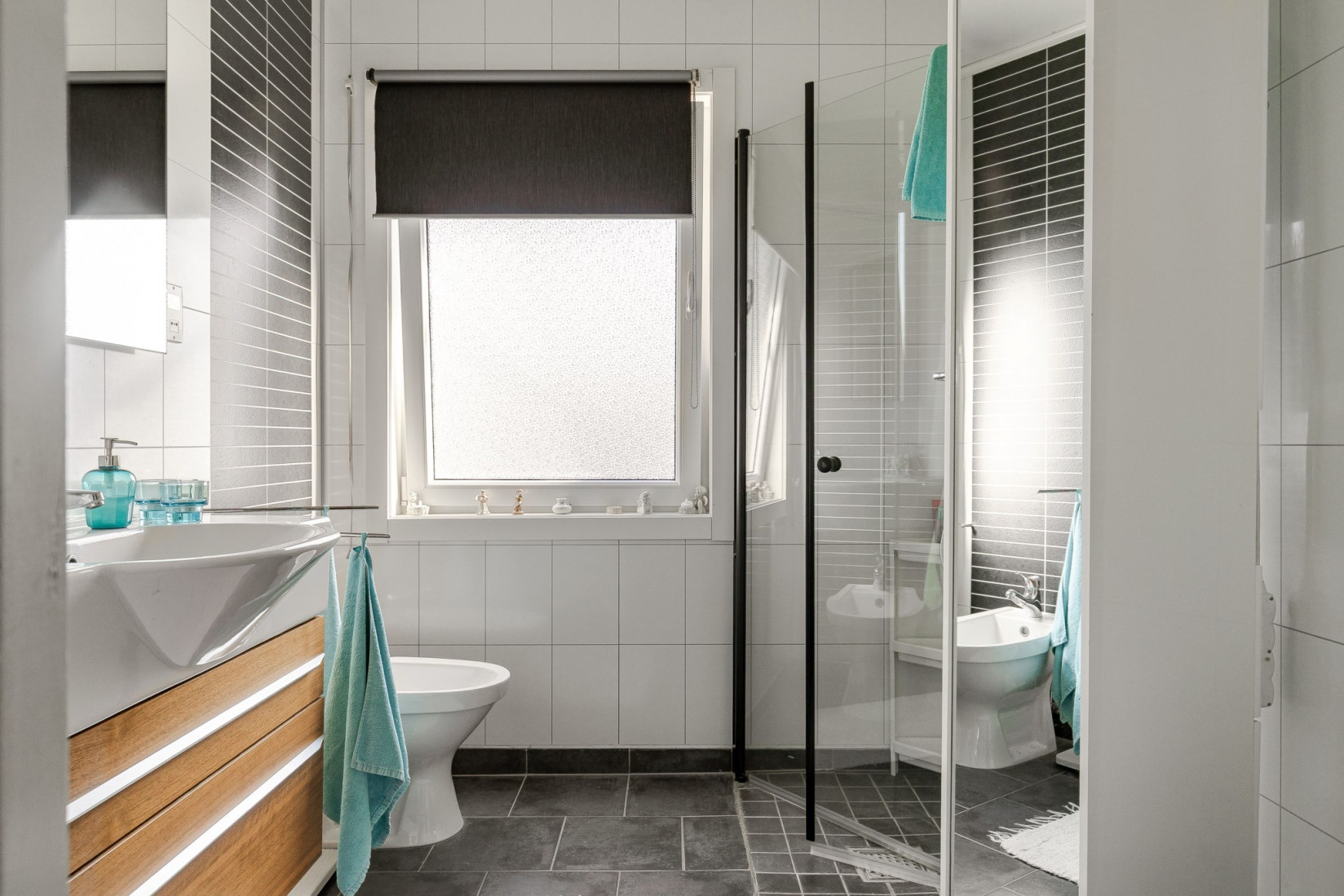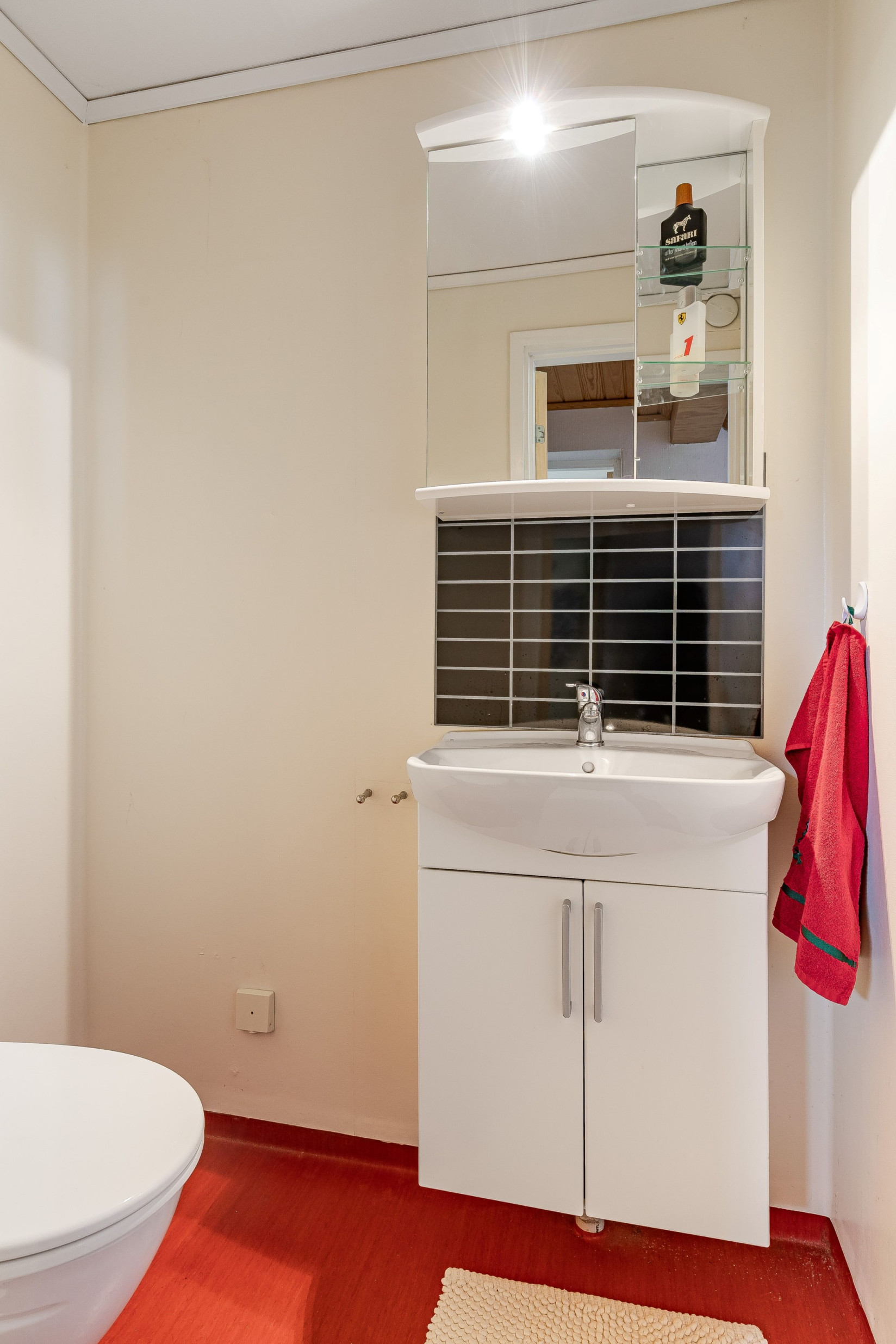 Sovrummen ligger några steg upp, tre till antalet, samlade kring badrummet som får dagsljus från ett välplacerat fönster. Det är en tyst del av huset, byggd för vila. På morgonen sprider sig doften av kaffe hit från köket nedanför, och när kvällen kommer är det här man drar sig undan.
