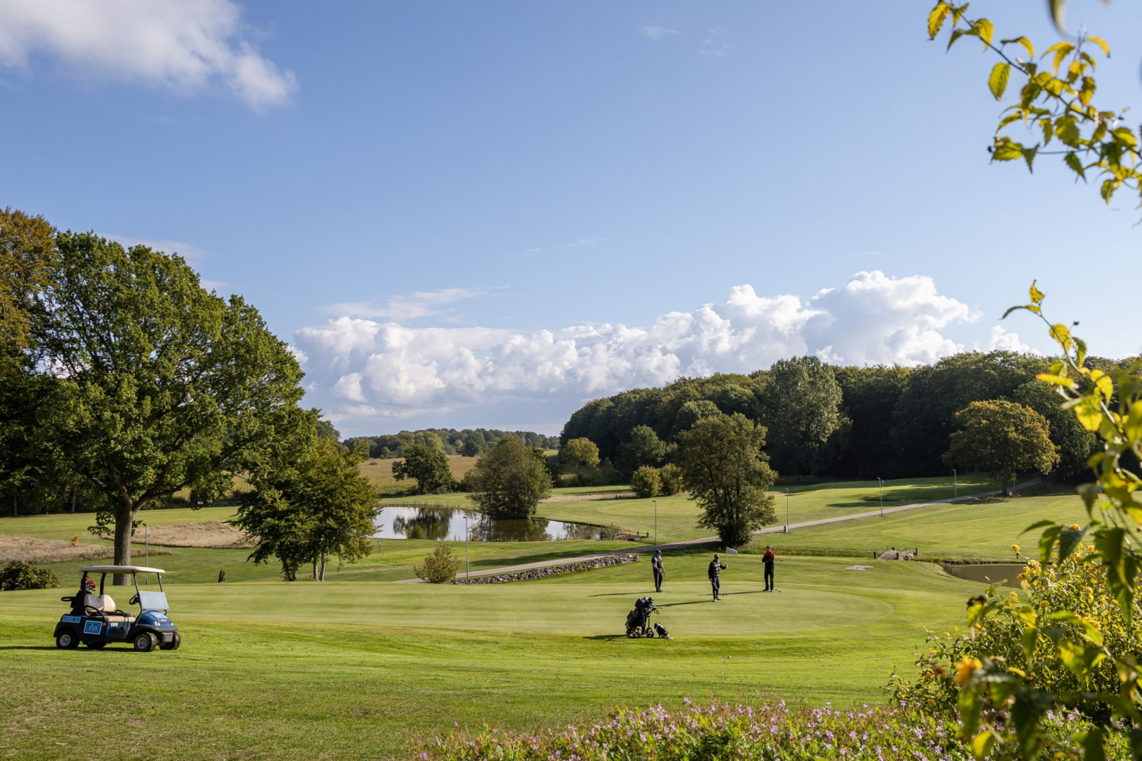 Ett garage står diskret vid sidan som en självklar del av helheten, men aldrig i vägen.