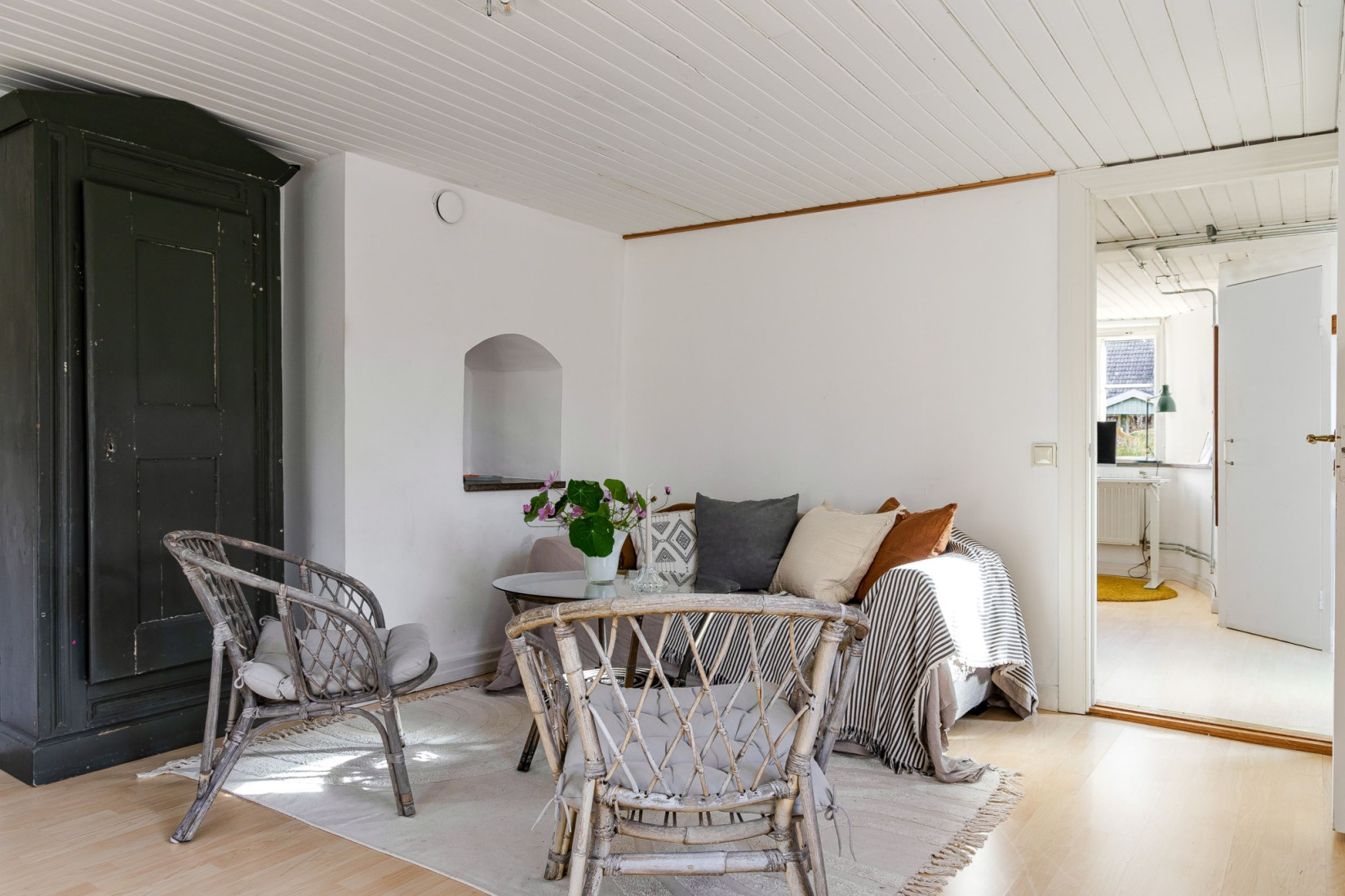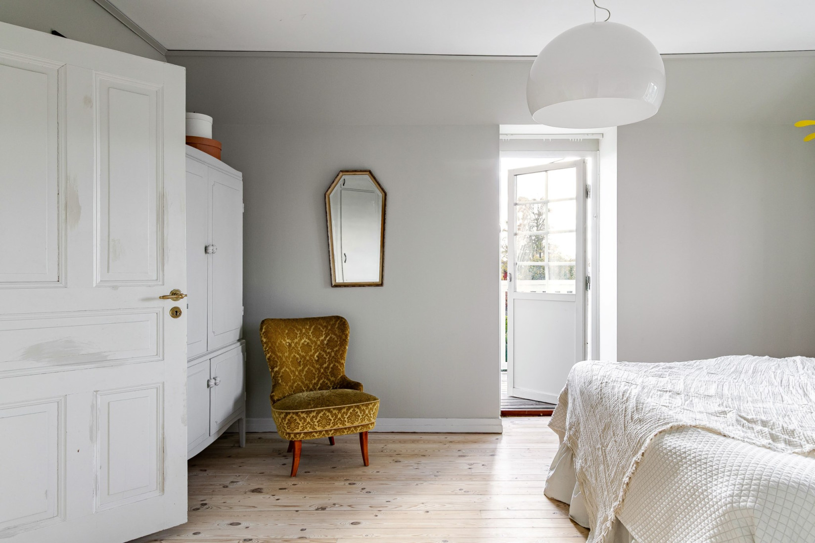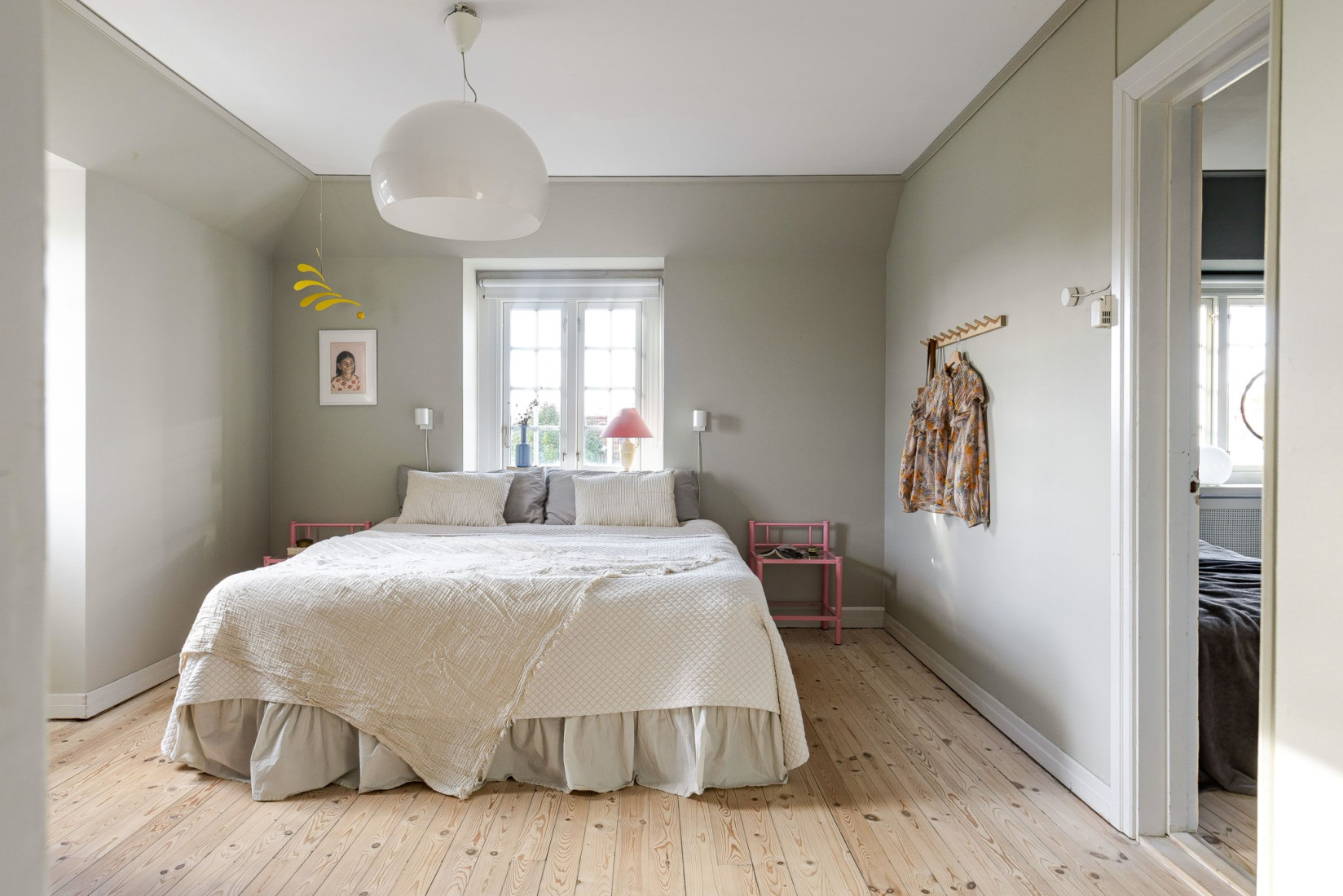 Via den vackra trätrappan, där flera fönster släpper in generöst med ljus längs vägen, når du det övre planet. Här finns tre rymliga och rogivande sovrum, samtliga med ljus från två väderstreck, vackra plankgolv och en härlig atmosfär. Varje rum bär sin egen karaktär med fina detaljer och ljusinsläpp som påminner om husets historia. På detta plan finns även ett helkaklat badrum med badkar, handfat med kommod, spegelskåp samt öppningsbara fönster.