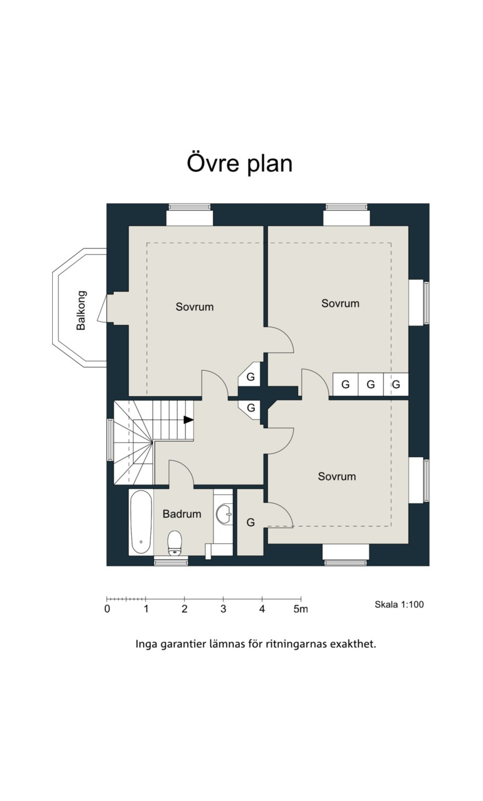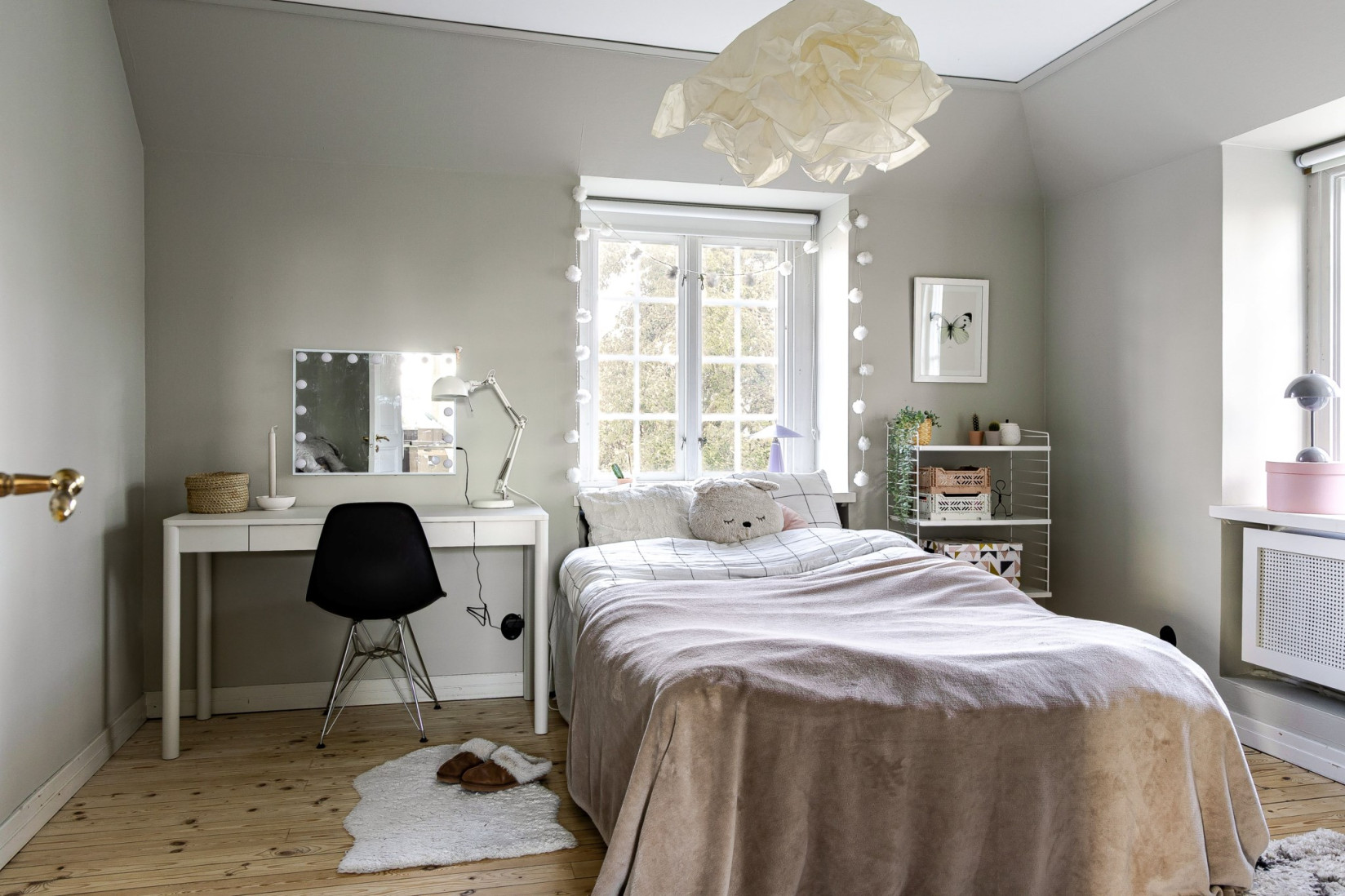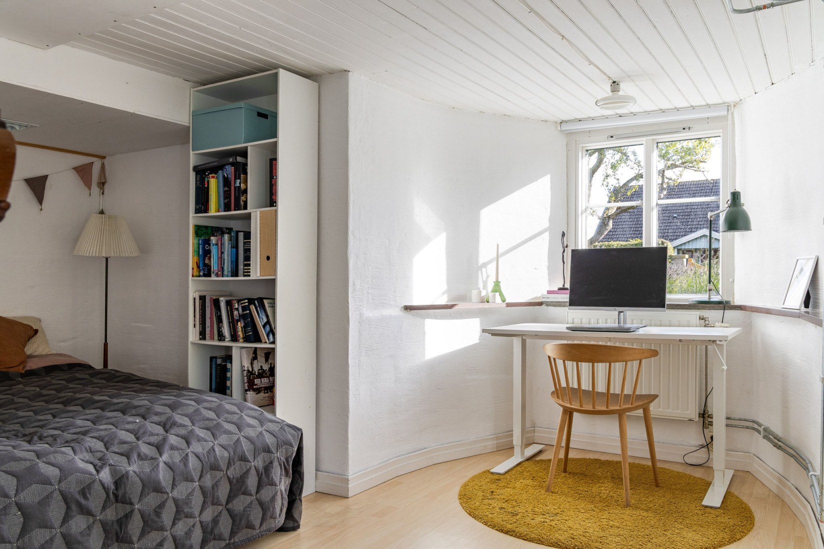 Via den vackra trätrappan, där flera fönster släpper in generöst med ljus längs vägen, når du det övre planet. Här finns tre rymliga och rogivande sovrum, samtliga med ljus från två väderstreck, vackra plankgolv och en härlig atmosfär. Varje rum bär sin egen karaktär med fina detaljer och ljusinsläpp som påminner om husets historia. På detta plan finns även ett helkaklat badrum med badkar, handfat med kommod, spegelskåp samt öppningsbara fönster.