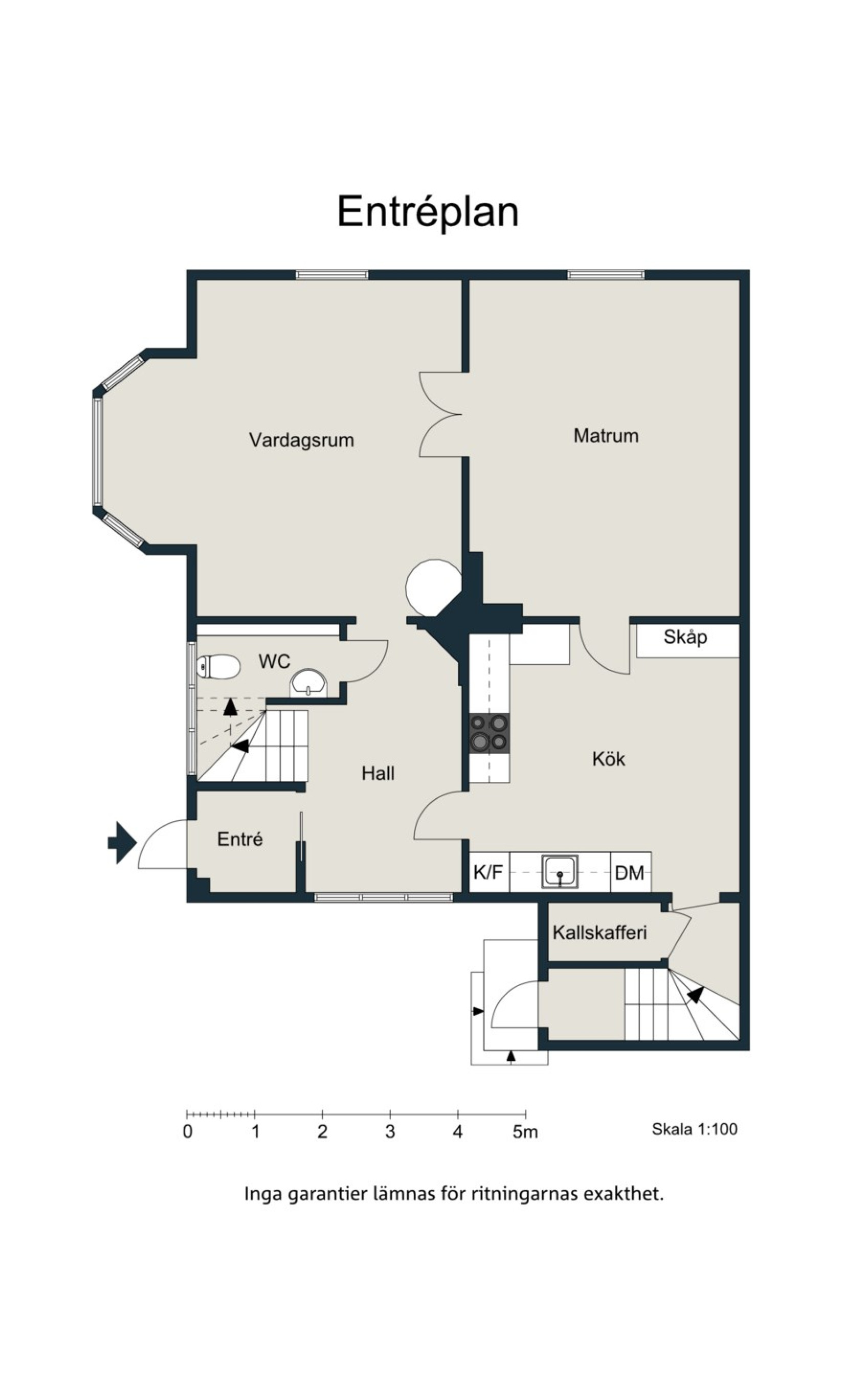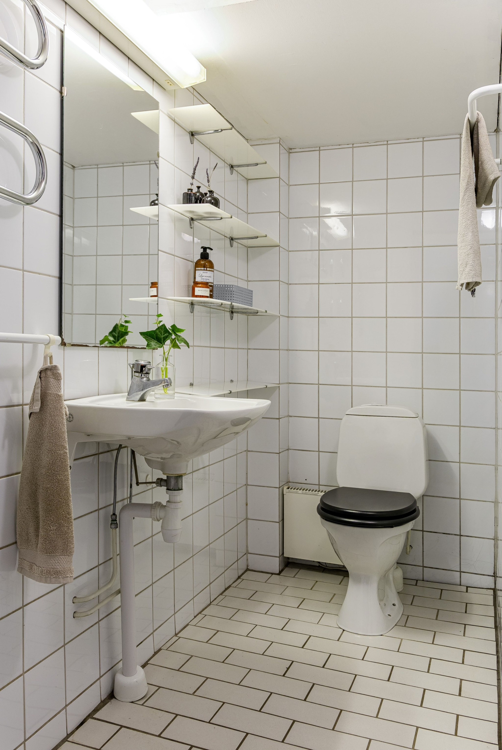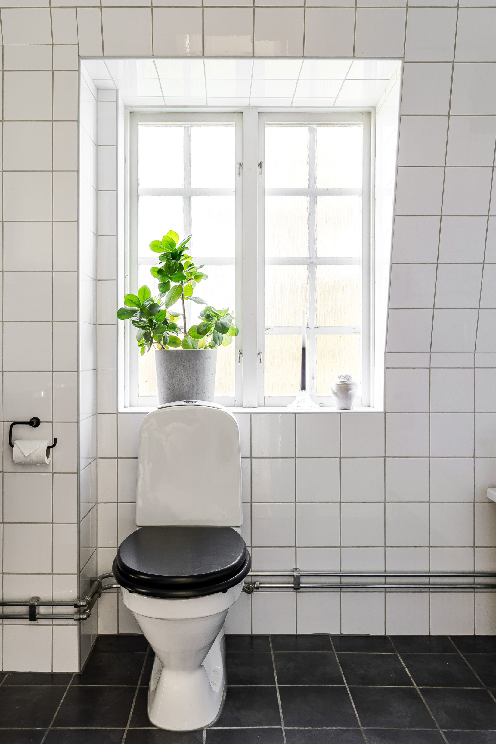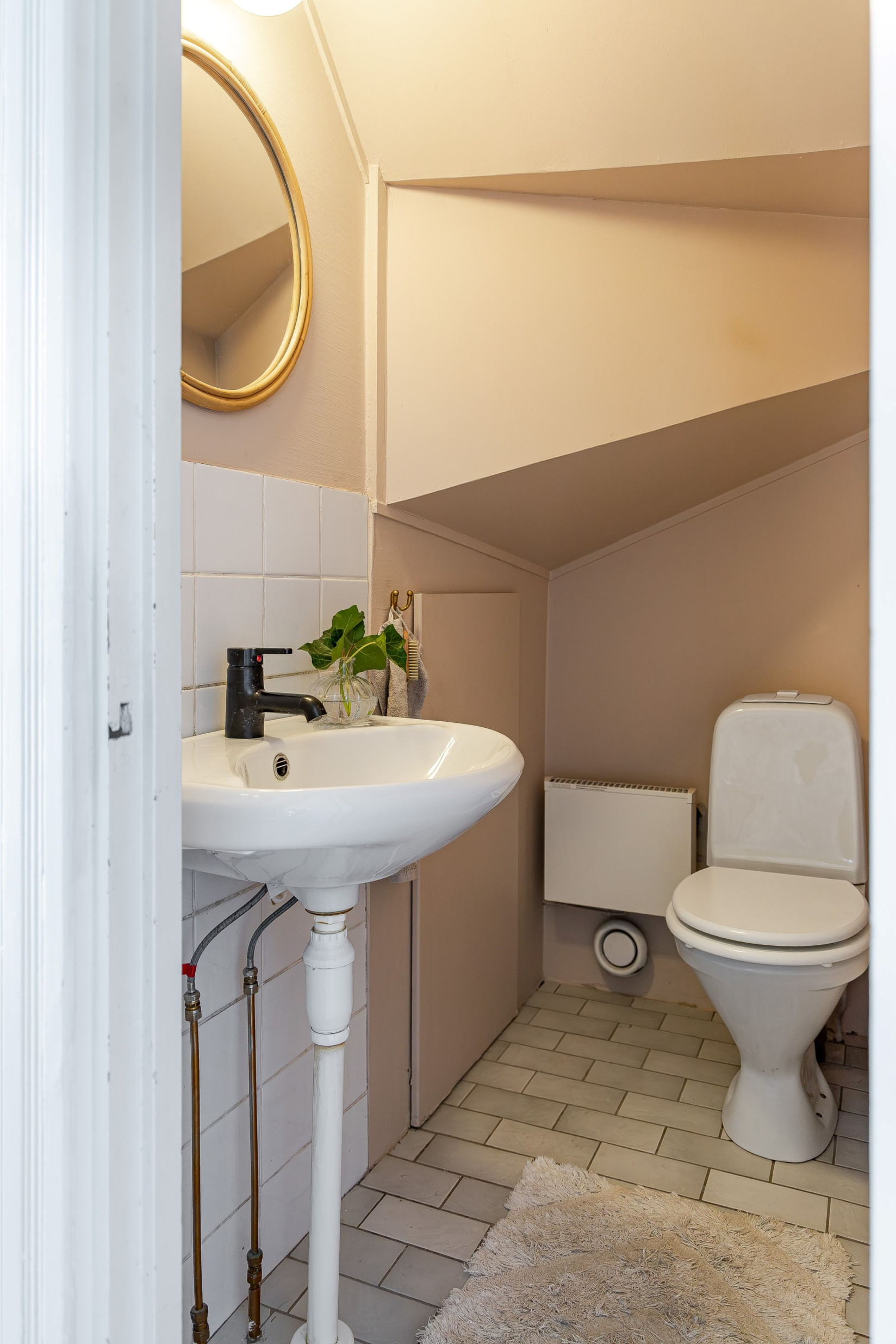 På entréplanet finns även en praktisk gästtoalett utrustad med wc och handfat.